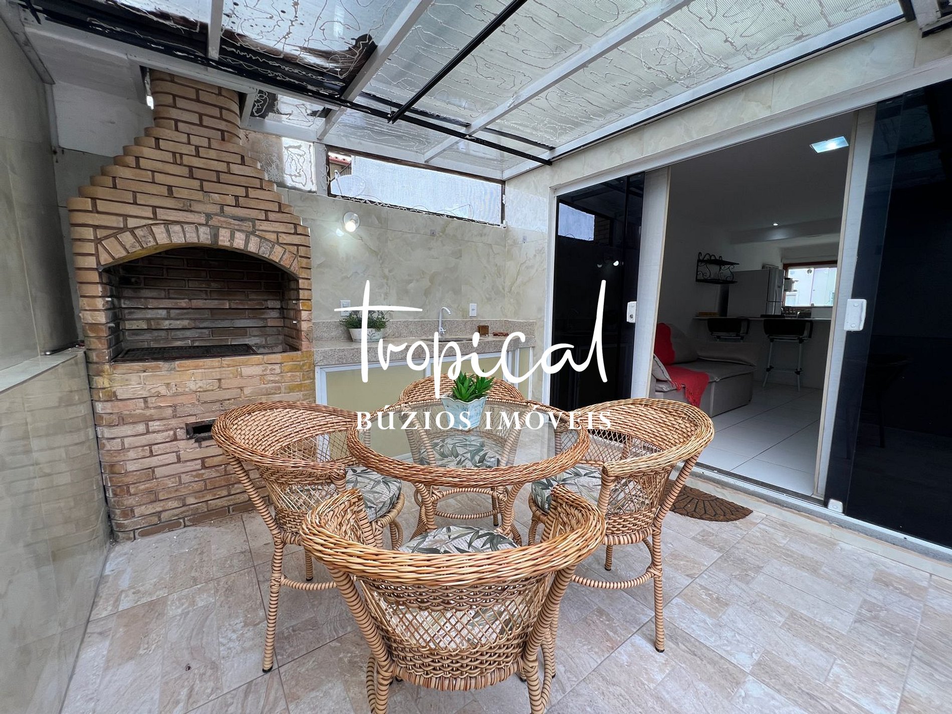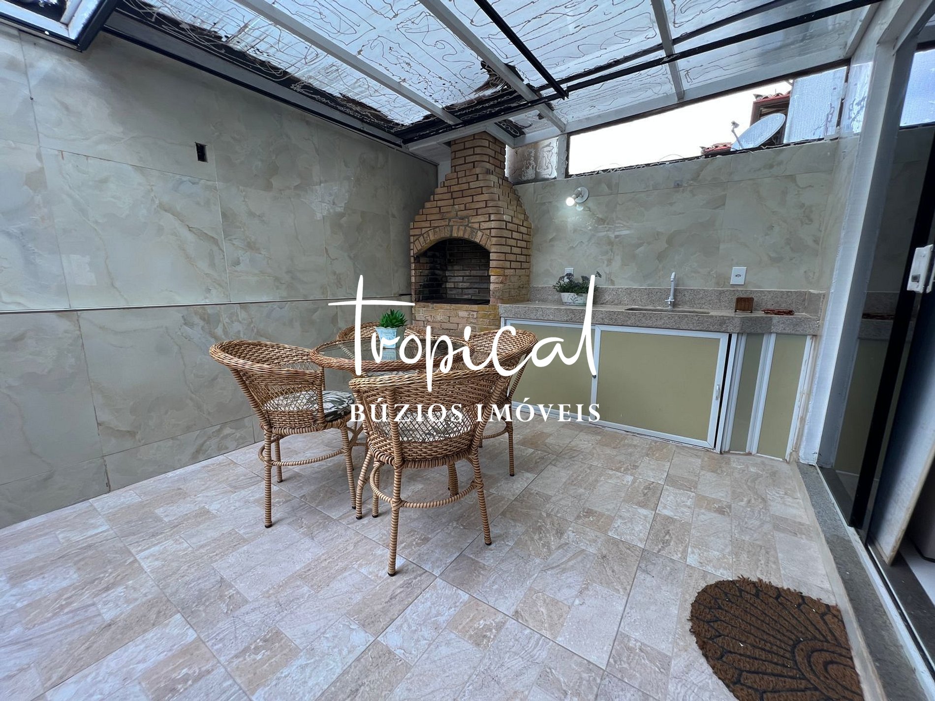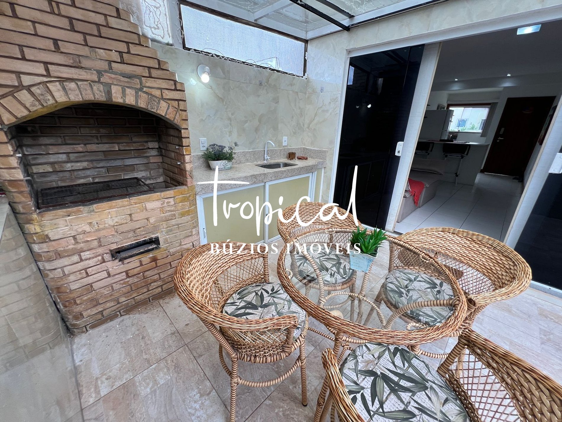 Espaço externo com churrasqueira para momentos de lazer