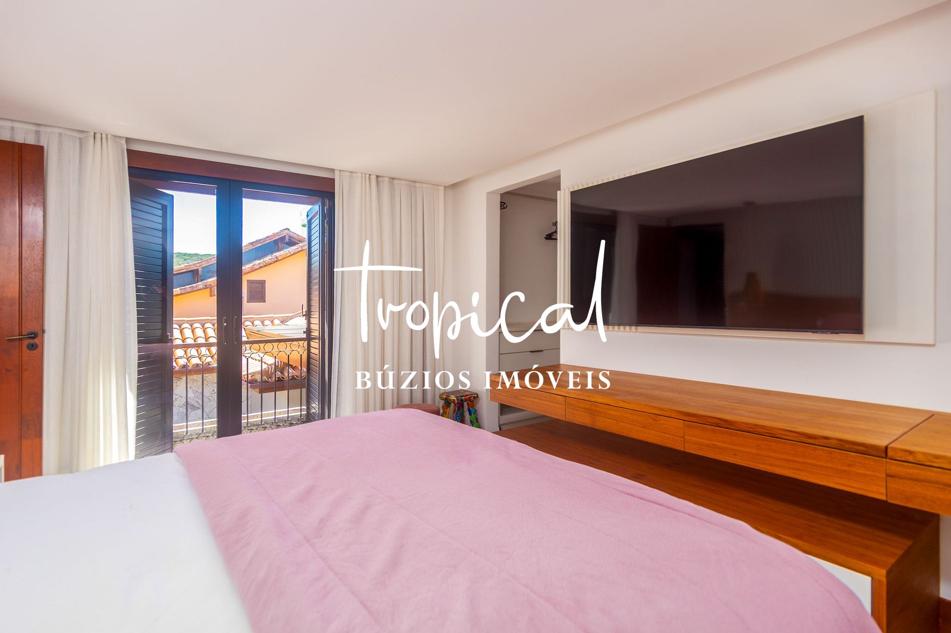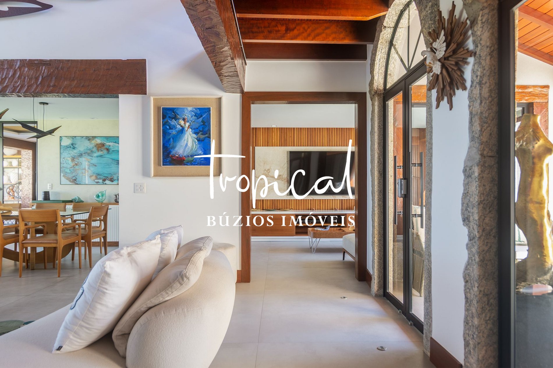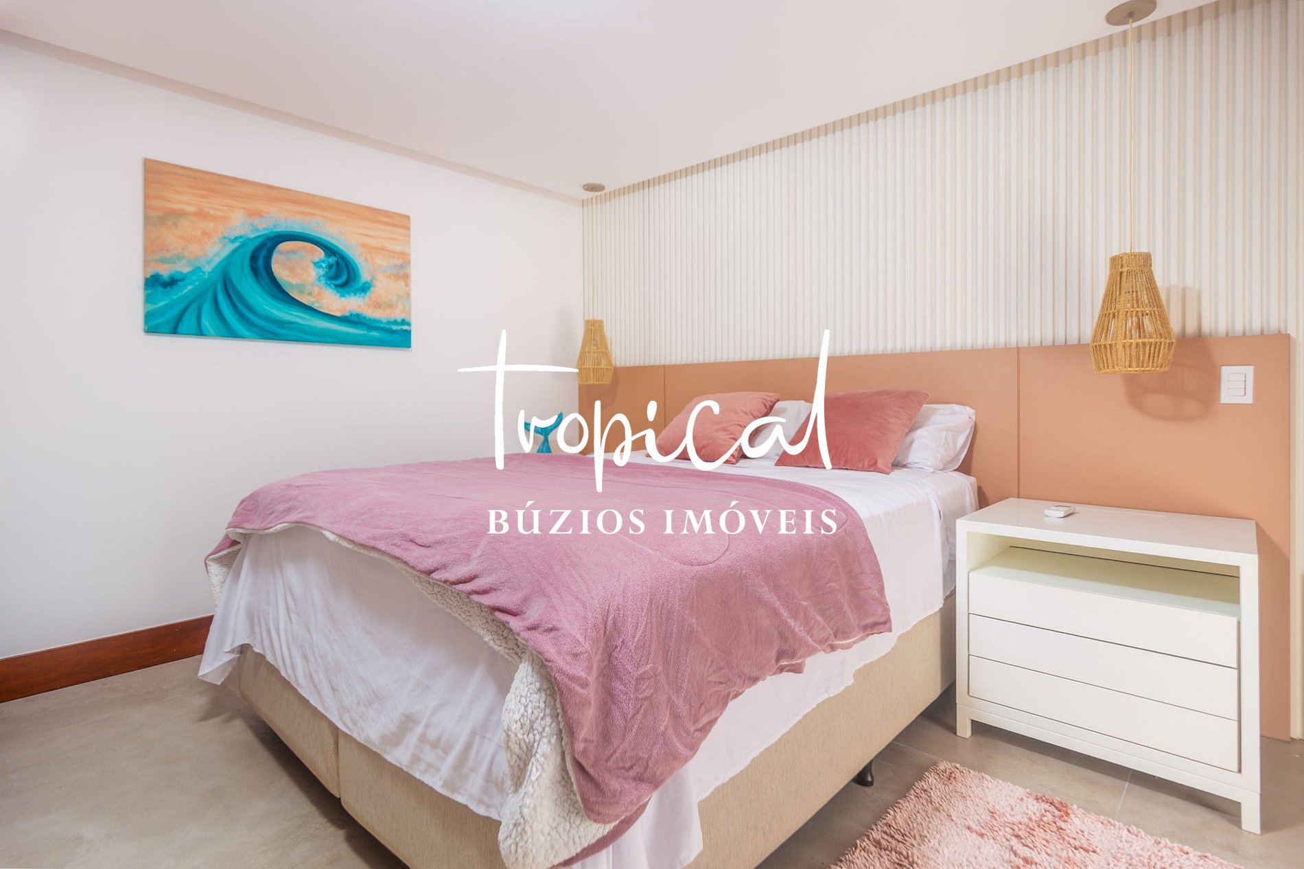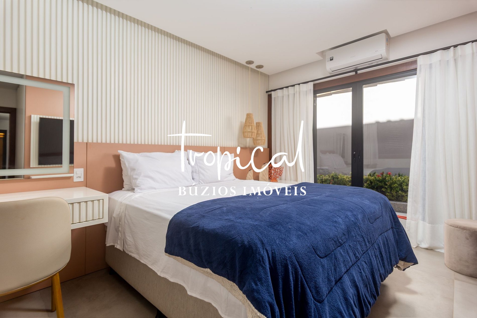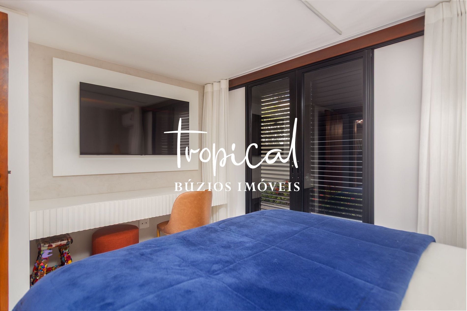 Diferenciais: todas as suítes com ar-condicionado split e banheiros privativos; suíte master com cama king, closet, equipamento de academia e vista direta para o mar da Ferradura; quartos externos de apoio, ideais para convidados que desejam mais privacidade ou para staff; TVs em praticamente todos os quartos, garantindo conforto e entretenimento individual.