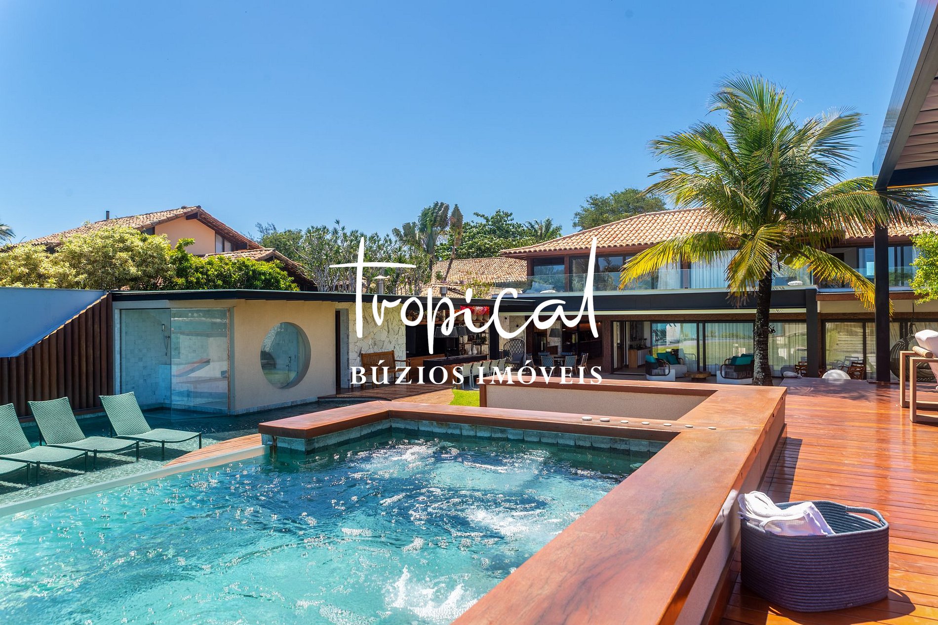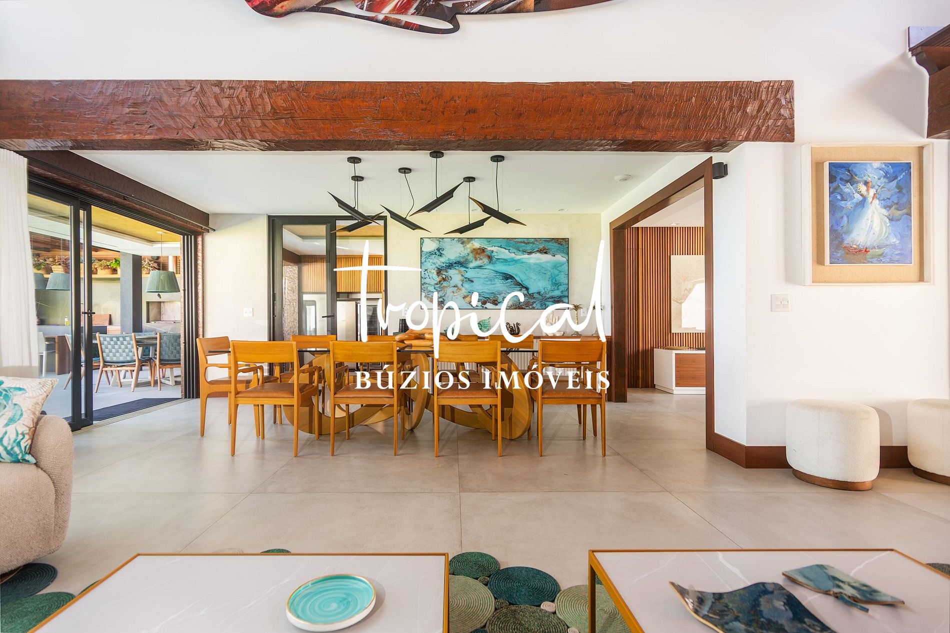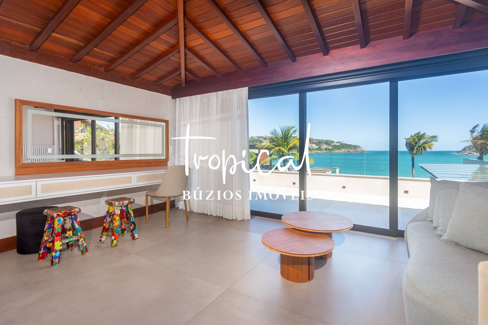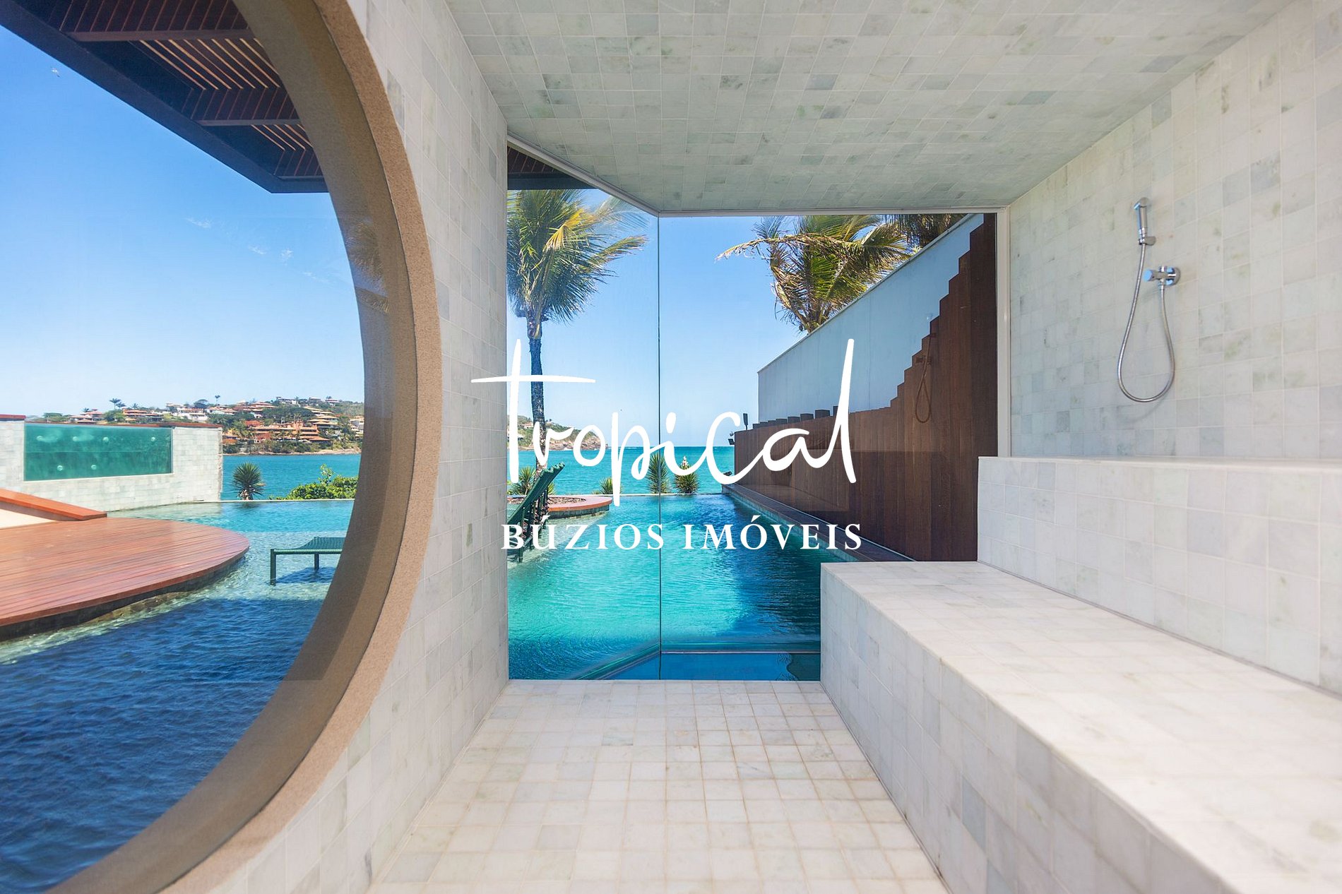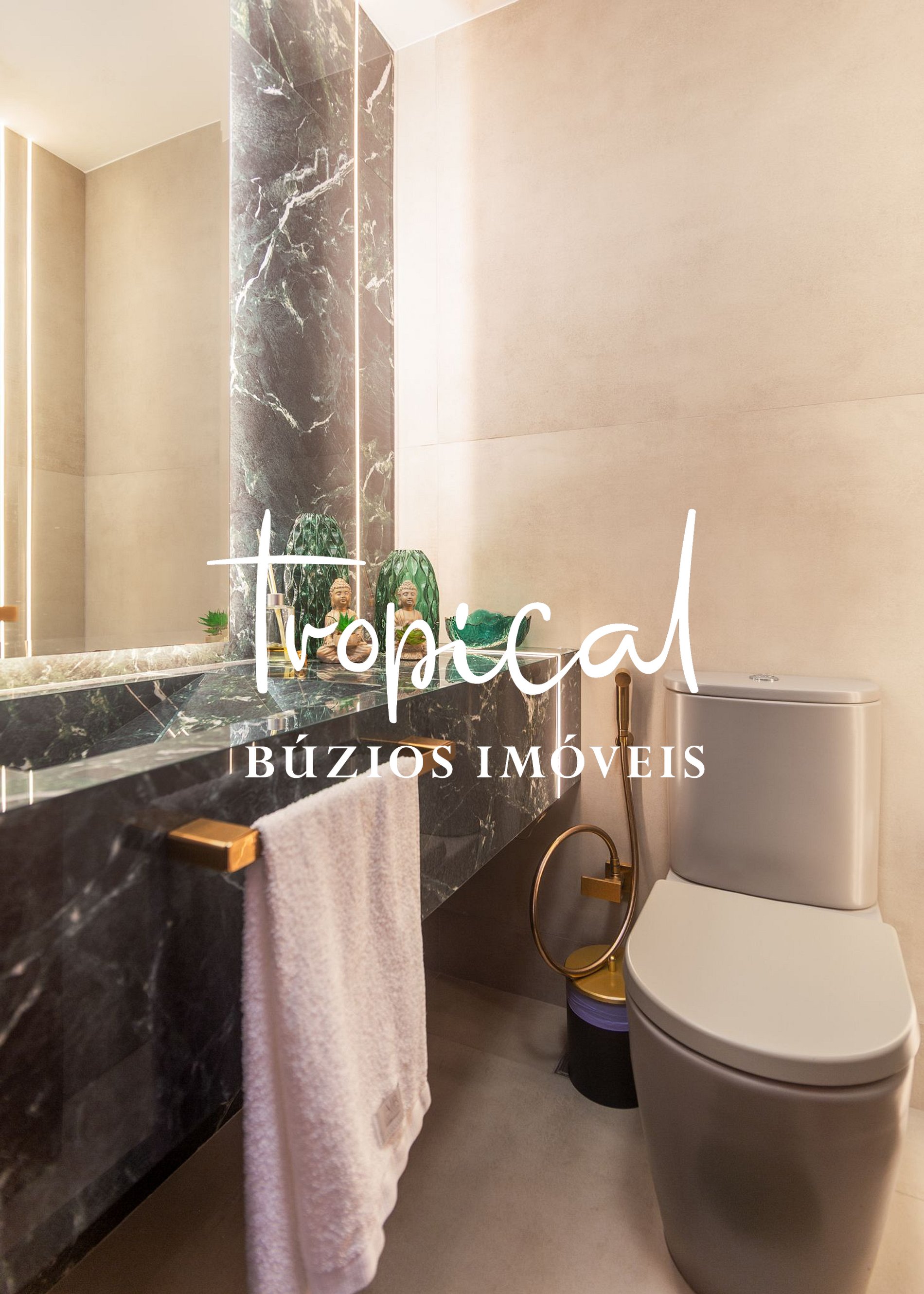 Diferenciais: todas as suítes com ar-condicionado split e banheiros privativos; suíte master com cama king, closet, equipamento de academia e vista direta para o mar da Ferradura; quartos externos de apoio, ideais para convidados que desejam mais privacidade ou para staff; TVs em praticamente todos os quartos, garantindo conforto e entretenimento individual.