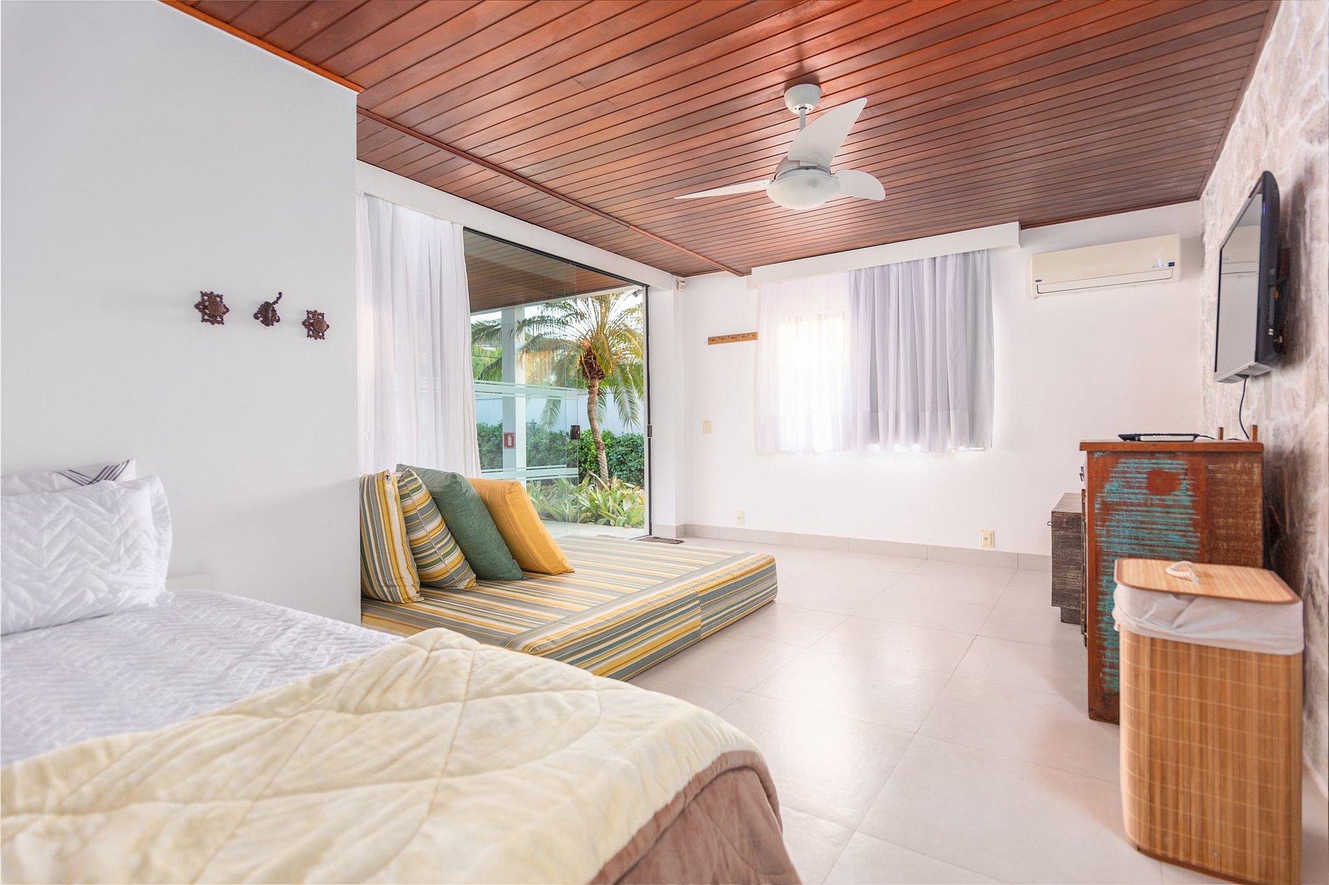 Quarto 2: Uma camas de casal, ar-condicionado e banheiro privativo