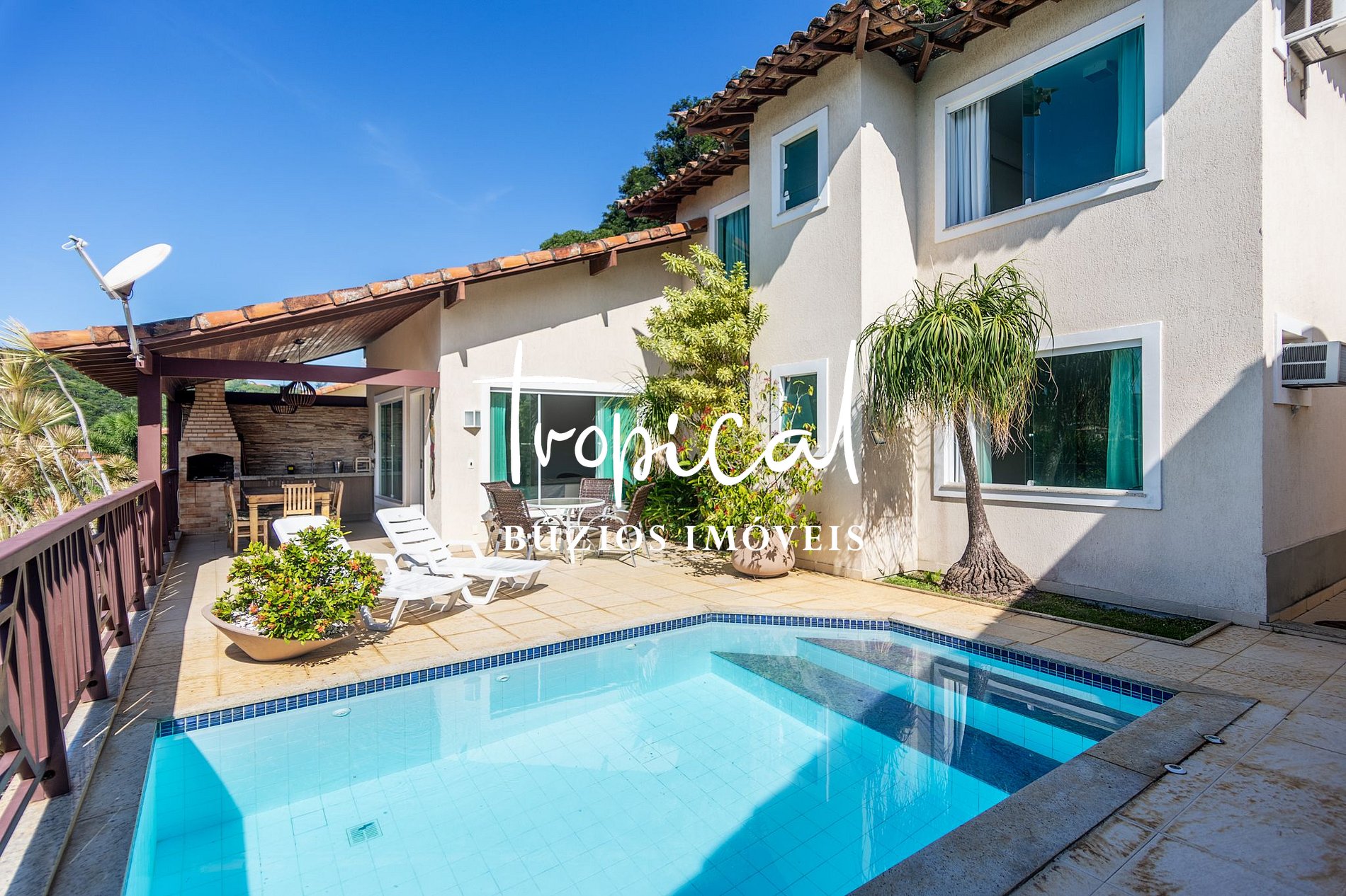Imóvel à venda em Geribá com 4 suítes, sala ampla, cozinha americana, área gourmet, área de serviço e piscina privativa. Conta ainda com vaga para 4 ou mais veículos. O imóvel oferece boa distribuição dos ambientes. As suítes são bem ventiladas e iluminadas e a sala comporta dois ambientes integrados.