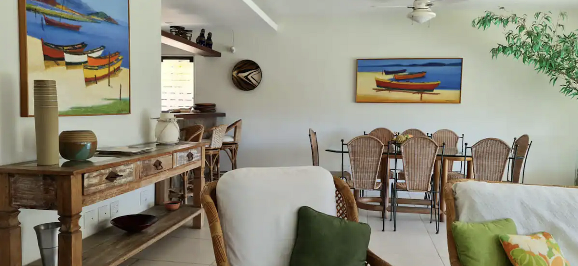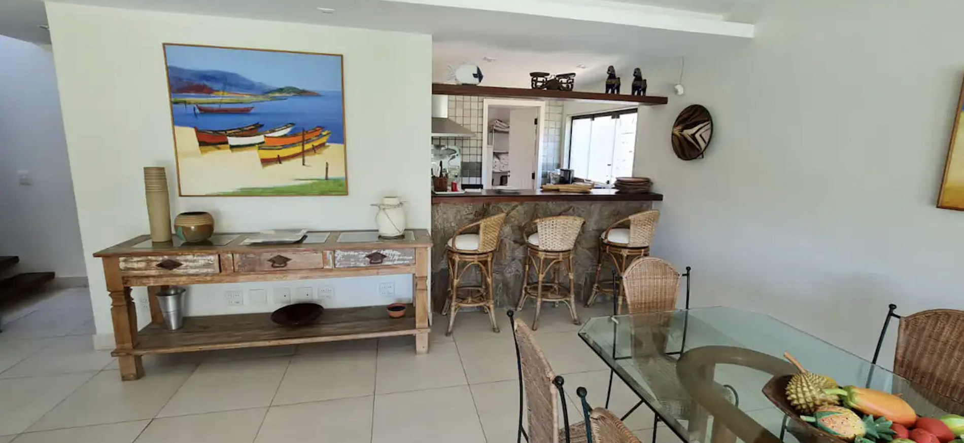 A praia de Geribá fica a duas quadras de distância! Você pode aproveitar o agito da praia mais procurada de Búzios e relaxar o resto da tarde na espetacular piscina do condomínio, fazendo um churrasco, e aproveitando uma sauna ao anoitecer.