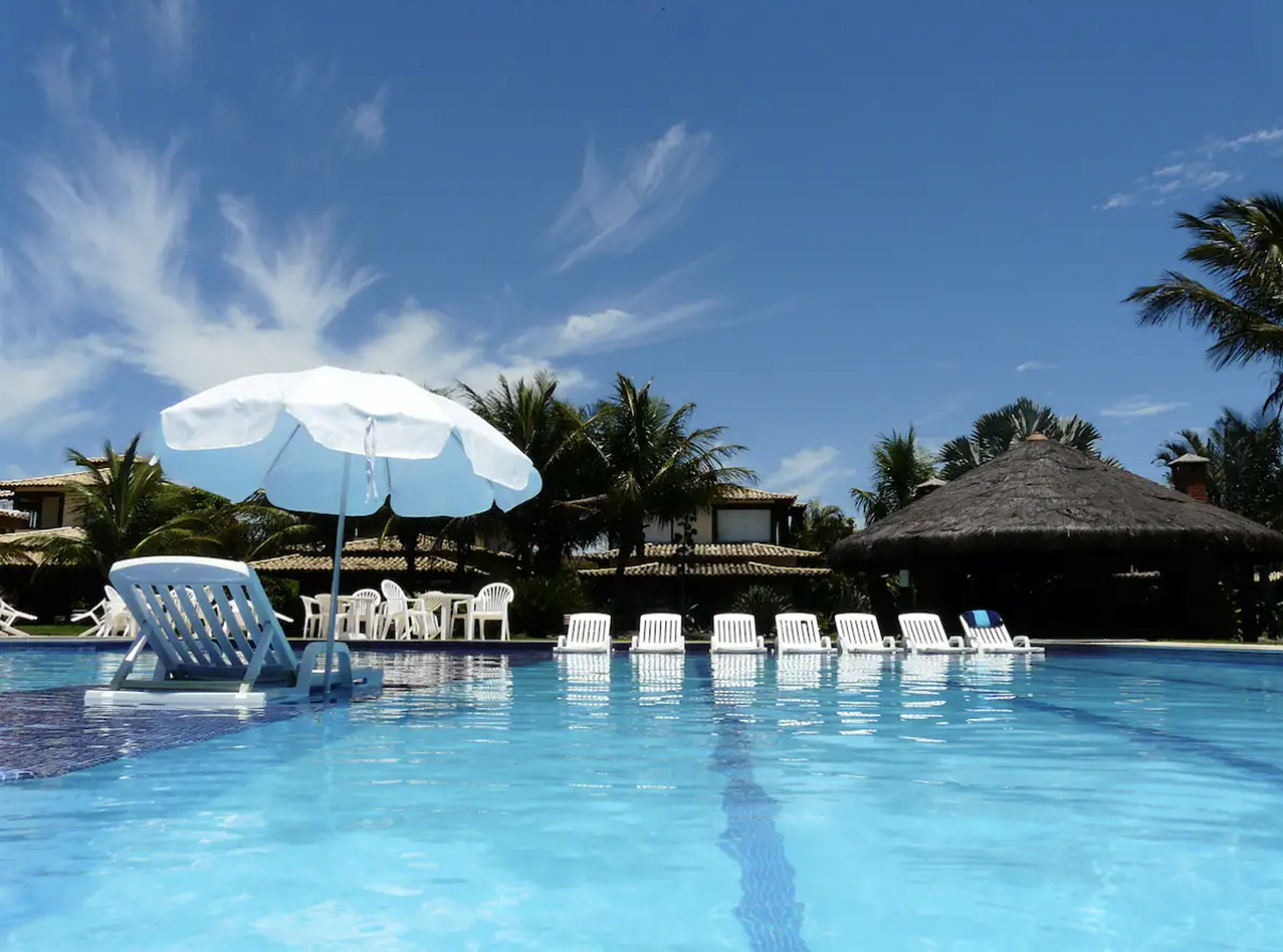 A piscina do condomínio é gigante – a maior de Geribá – e chega a chamar a atenção em fotos aéreas ou mapas com imagens de satélite. Tem bordas molhadas com espreguiçadeiras, raias, área de recreação, jatos de hidromassagem e piscina infantil.