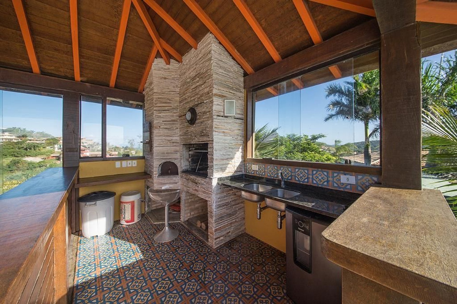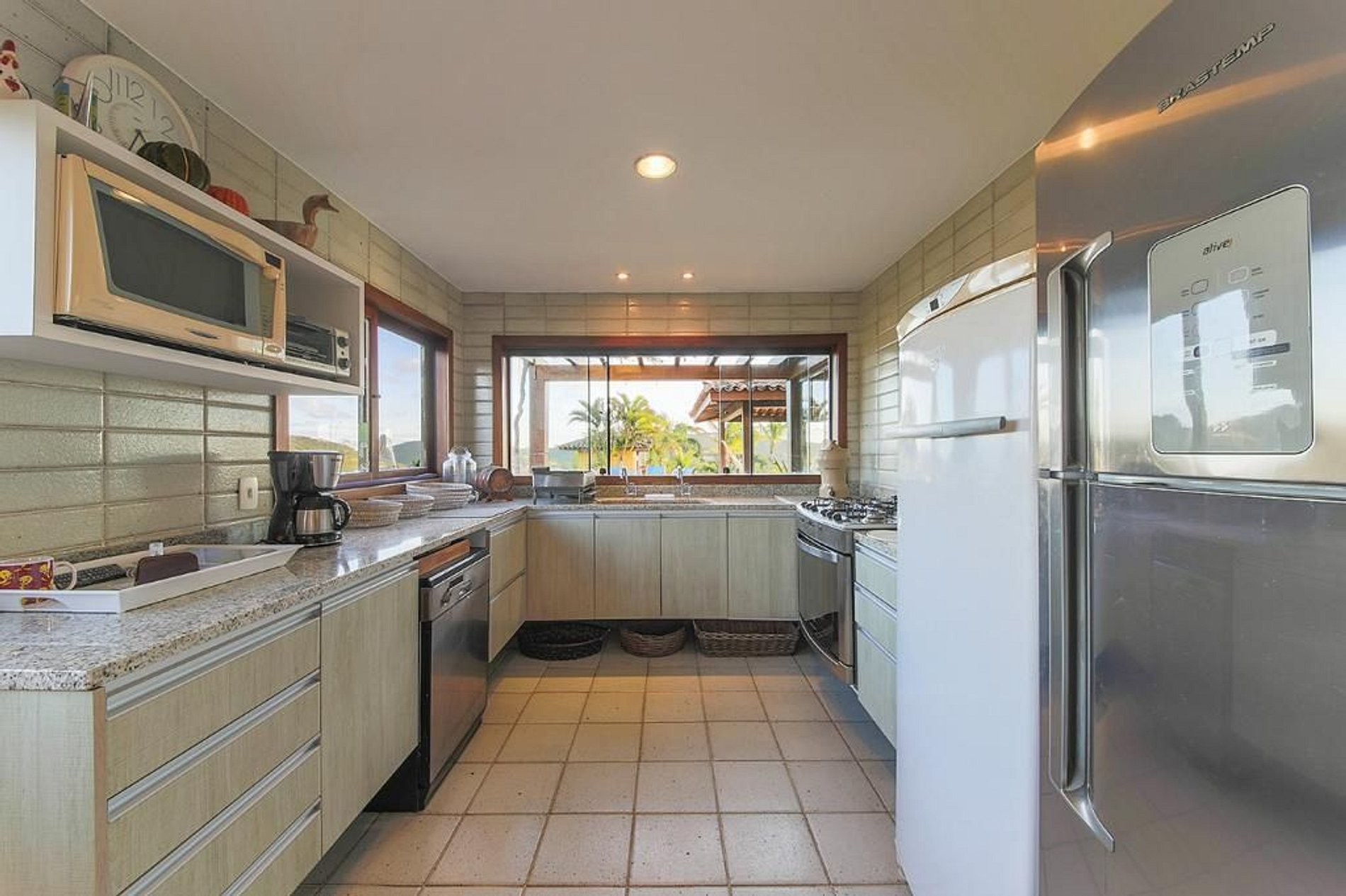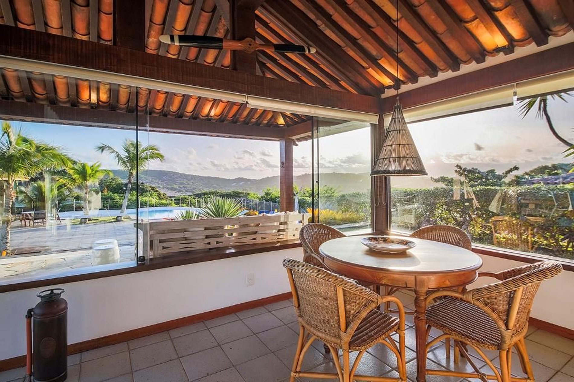 A casa aluga com os dois funcionários, caseiro e empregada/cozinheira, que ajudaram manter a casa limpa e arrumada durante sua estadia, e também preparar refeições.