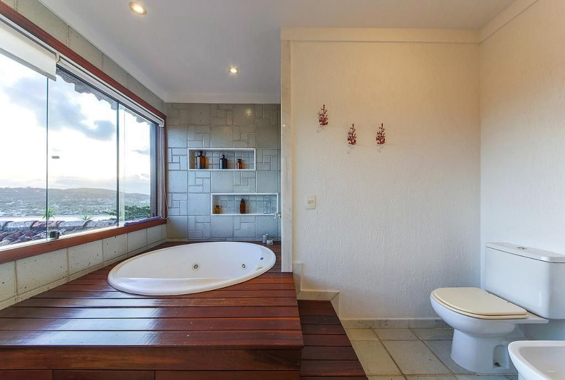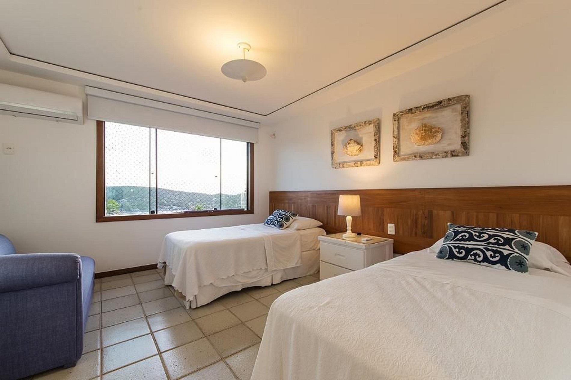 No segundo piso se encontra três suítes, todas com vista para o mar. A primeira suíte é a master com cama de casal, banheiro independente com banheira com hidro-massagem. A segunda suíte são duas bi-camas com quatro camas de solteiro, e banheiro independente. A terceira suíte tem um cama de casal, e banheiro independente.