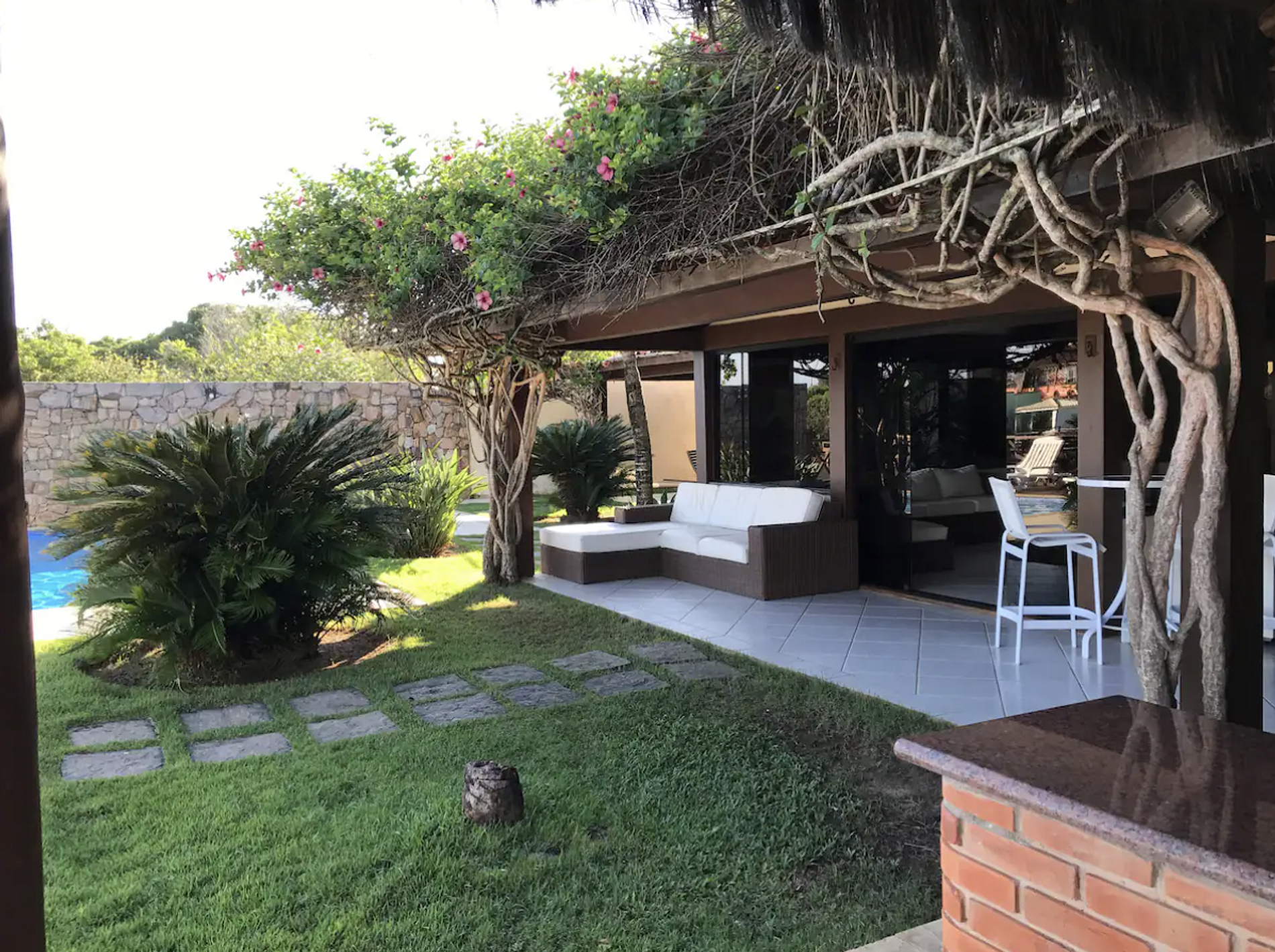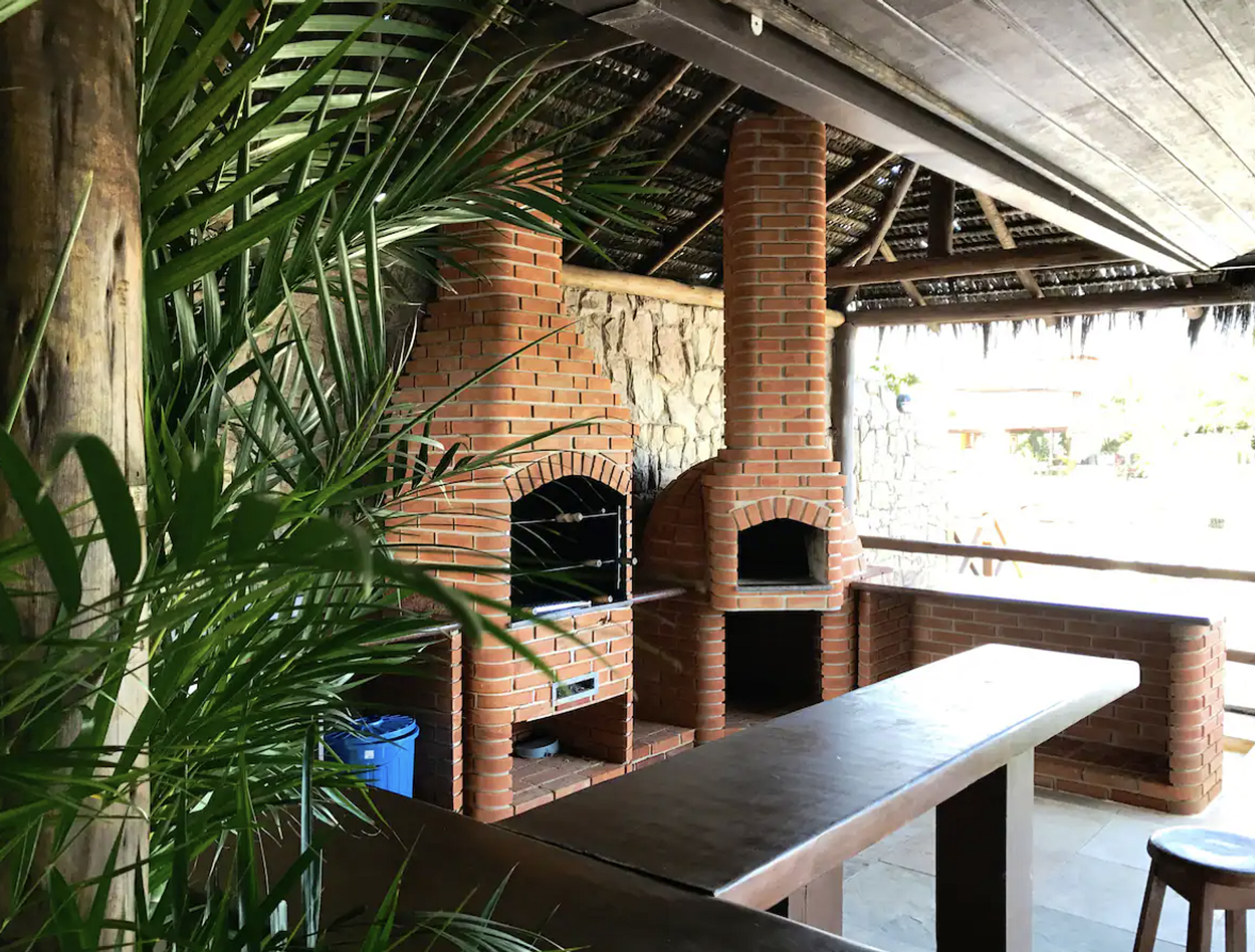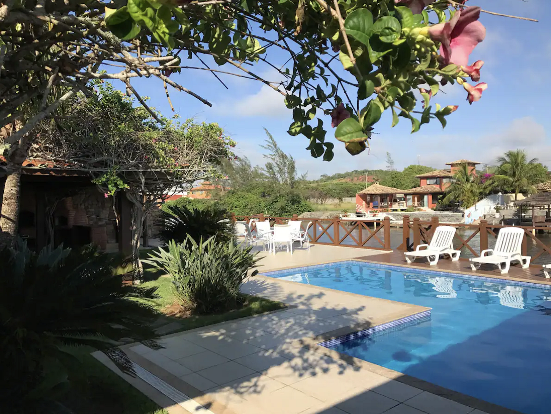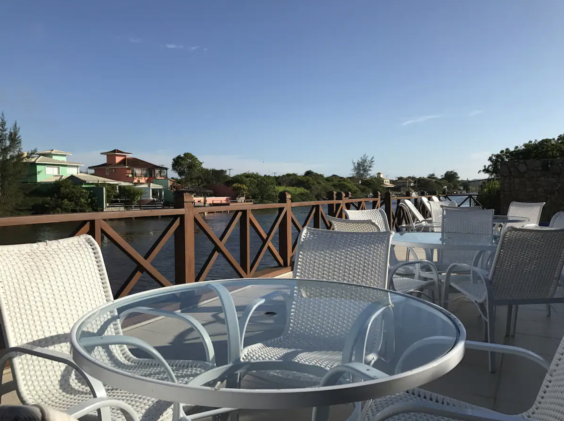 A área externa é encantadora e agradável, com jardim, piscina e o deck em frente ao canal. A churrasqueira e o forno à lenha inspiram reunir amigos, durante o dia ou a noite!