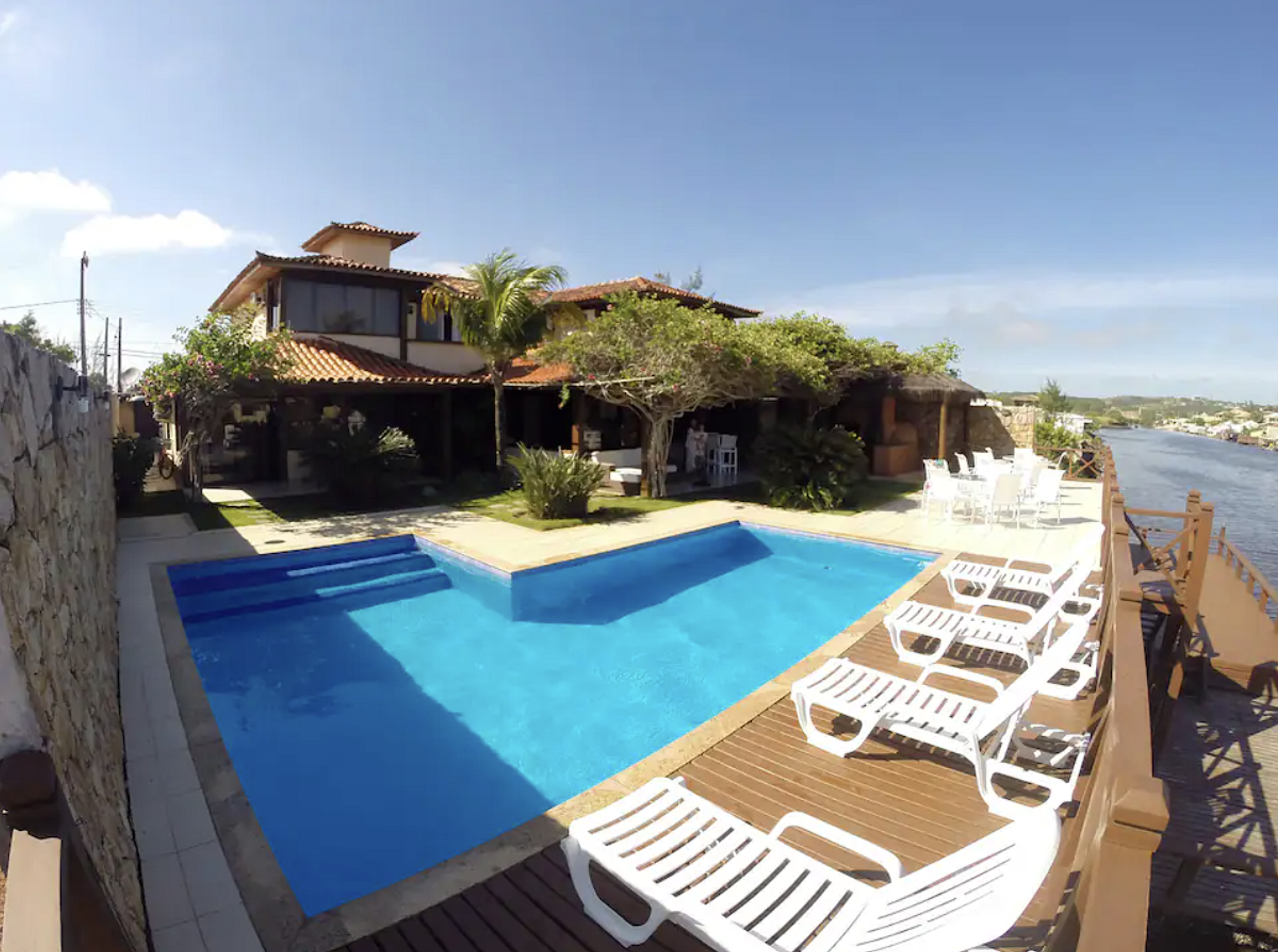 Esta é uma casa única, reservada e ampla, situada de frente para o canal da Marina, com deck para lancha e jet ski, permitindo chegar nas praias de Búzios pelo mar!