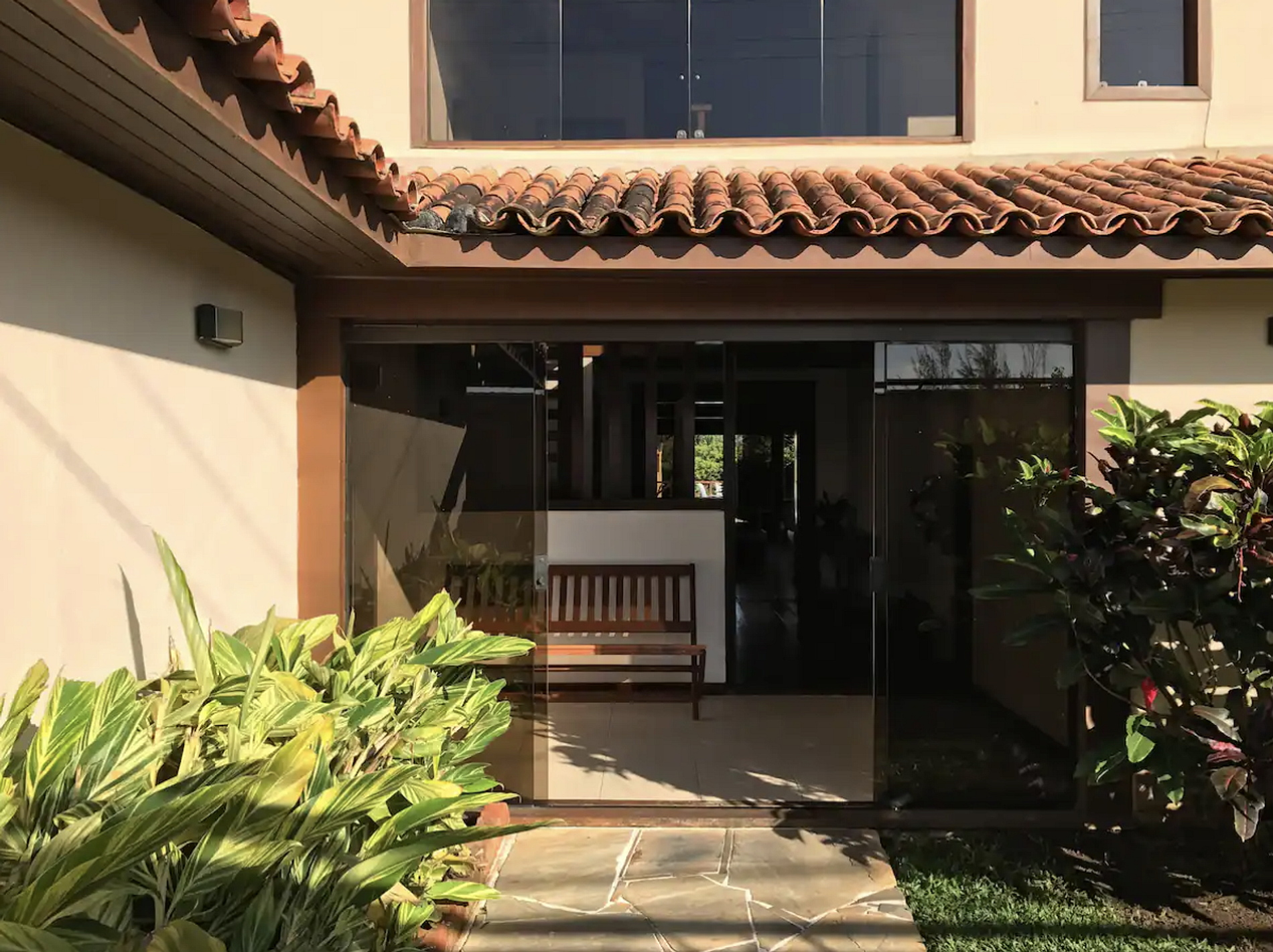 A área externa é encantadora e agradável, com jardim, piscina e o deck em frente ao canal. A churrasqueira e o forno à lenha inspiram reunir amigos, durante o dia ou a noite!
