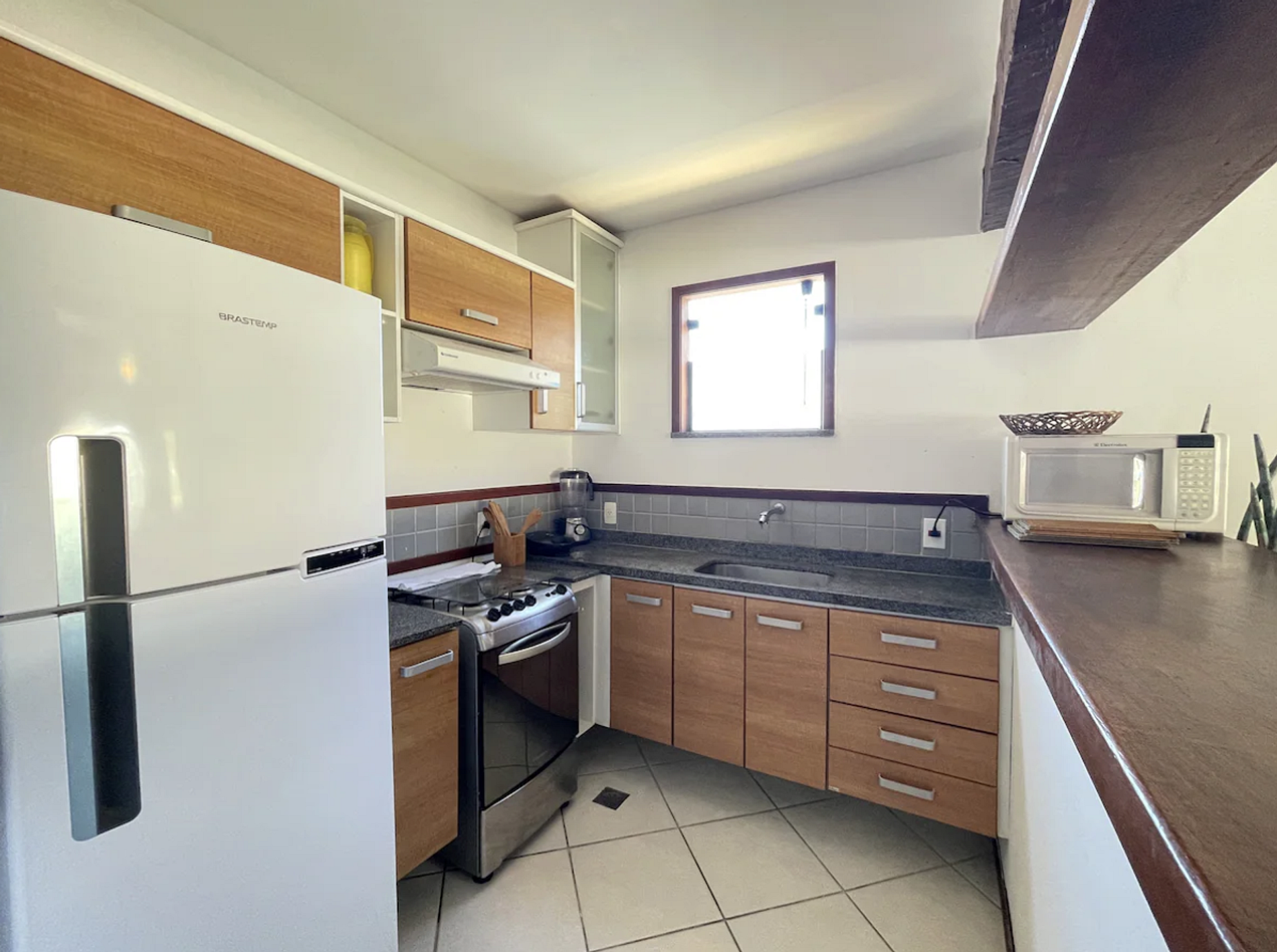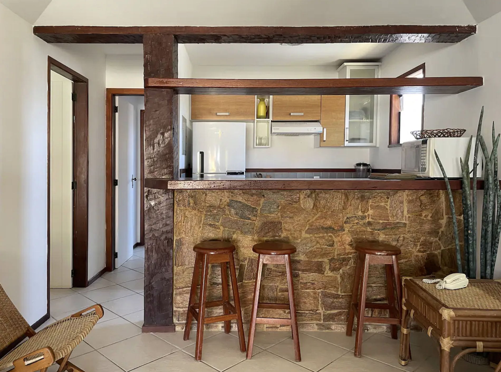Localizado à 5 minutos da praia de Geribá, em condomínio seguro, este apartamento conta com varanda e churrasqueira privativa. Ideal para famílias ou casais de amigos.