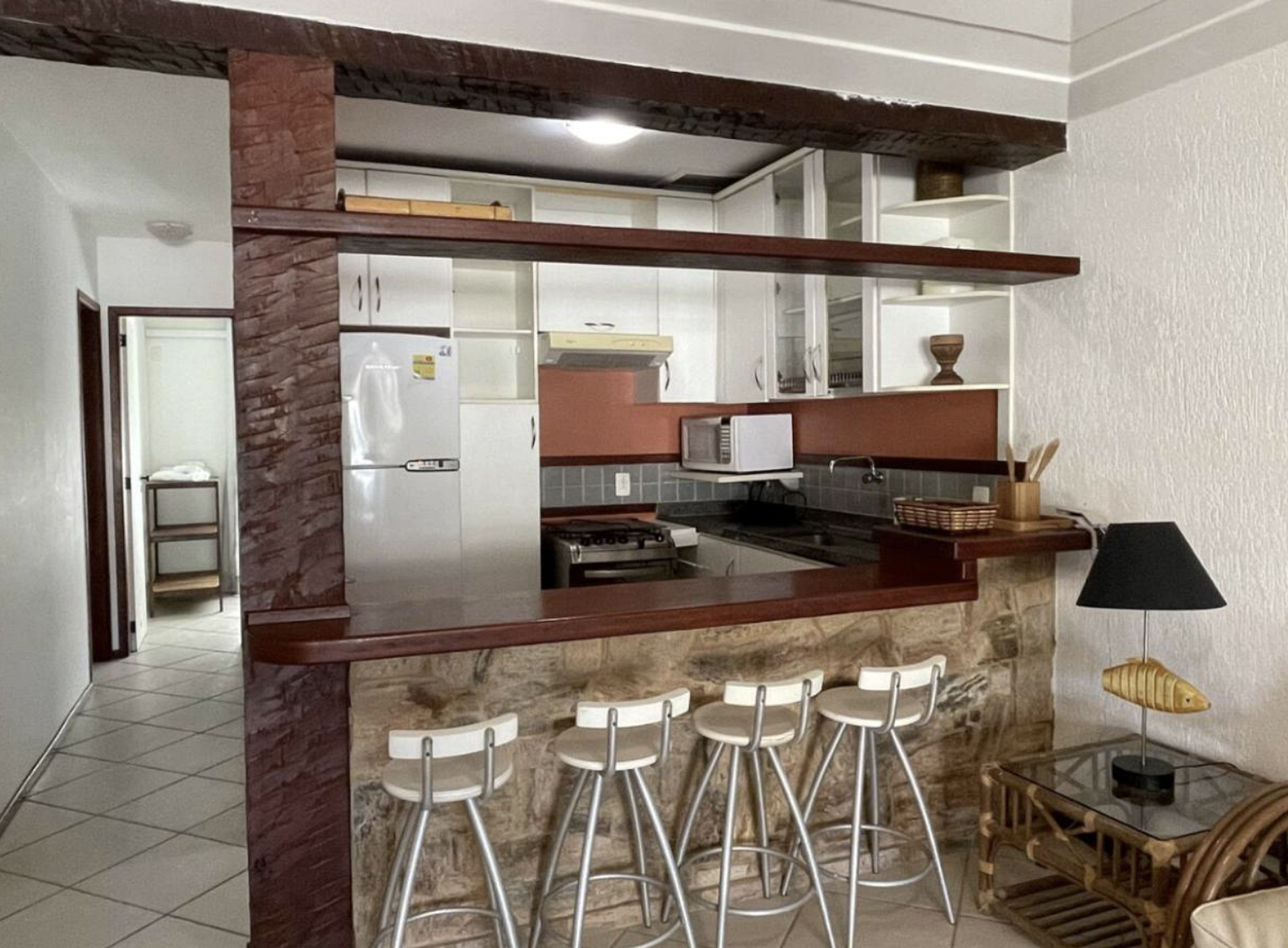 Localizado à 5 minutos da praia de Geribá, em condomínio seguro, este apartamento conta com varanda e churrasqueira privativa. Ideal para famílias ou casais de amigos.