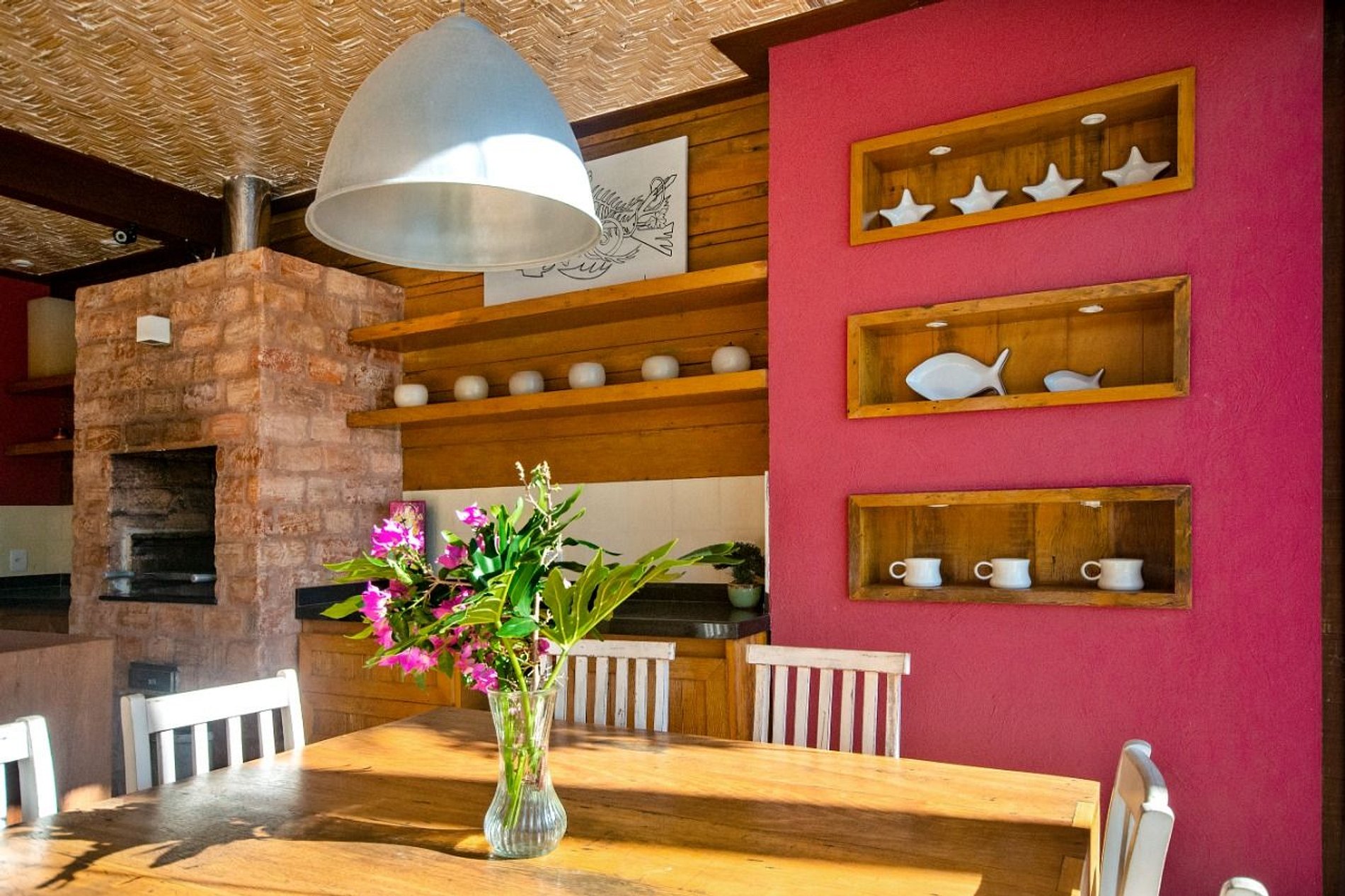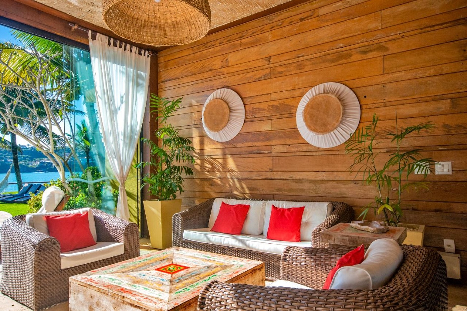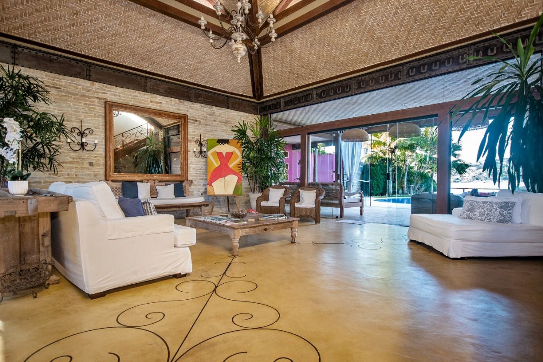 O interior da casa é adornado com um forro de palhas, adicionando um toque autêntico e sofisticado. Cada detalhe foi meticulosamente planejado para criar um ambiente harmonioso e convidativo.