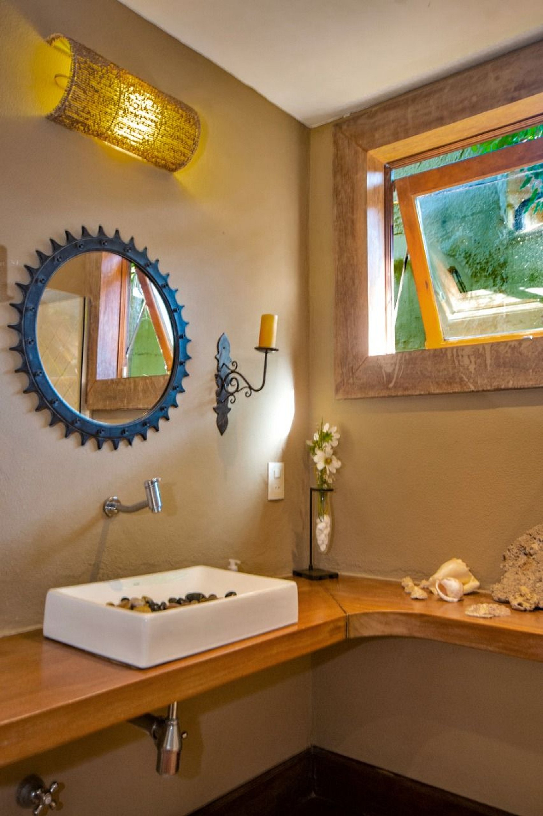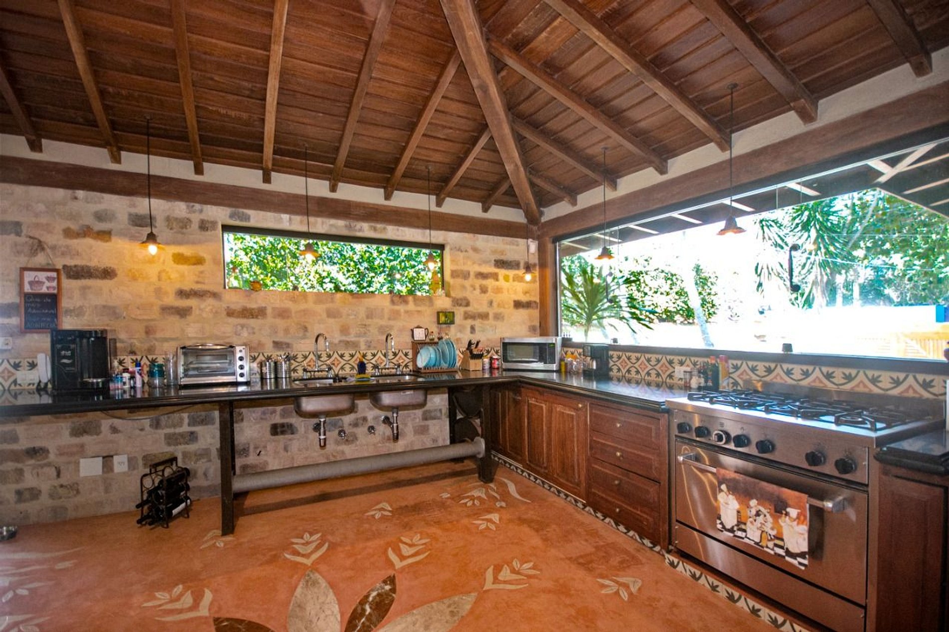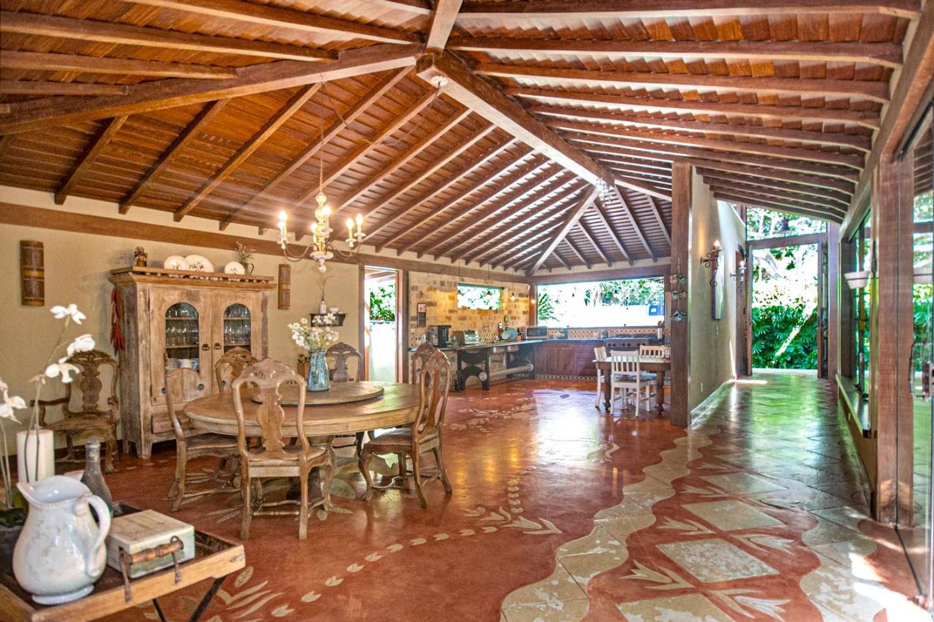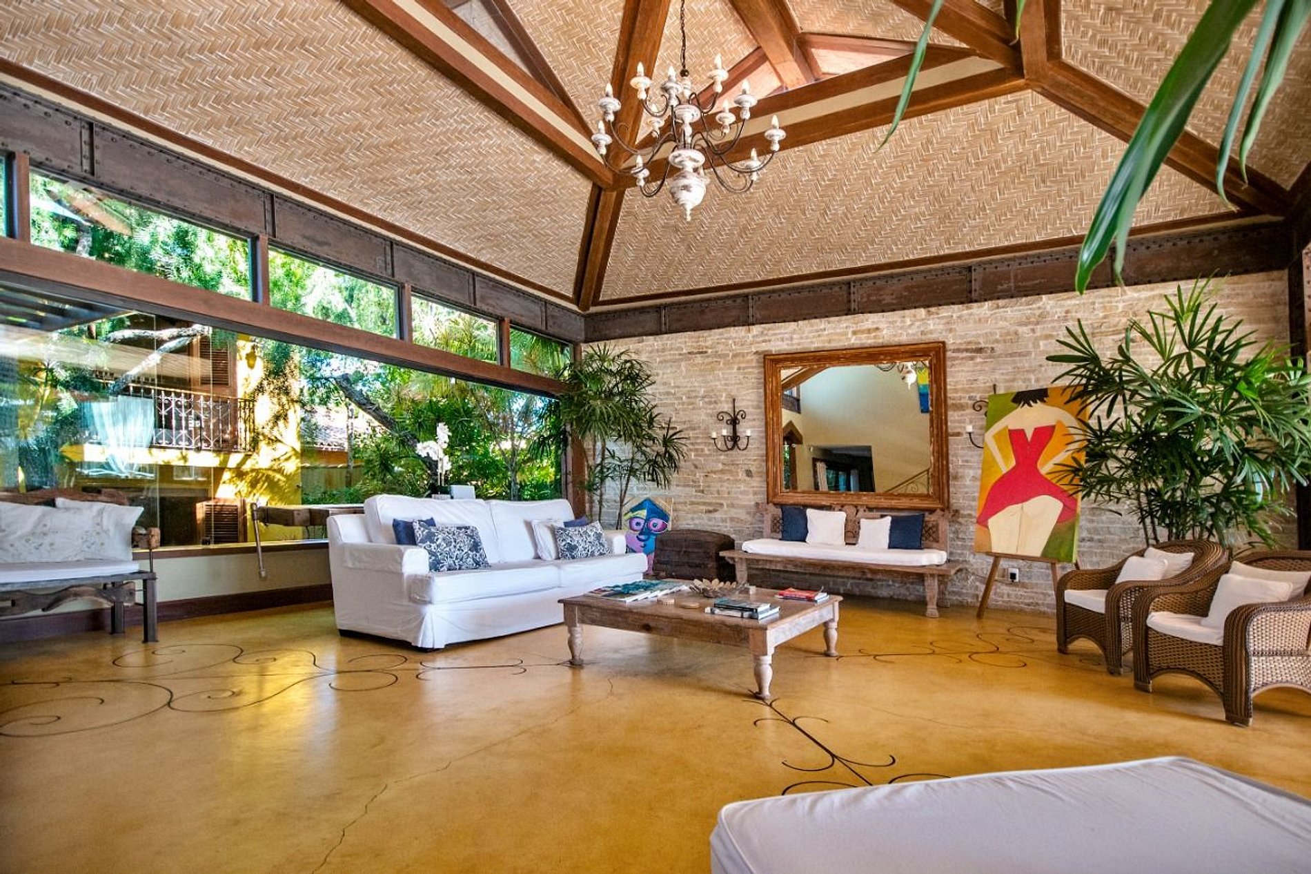 O interior da casa é adornado com um forro de palhas, adicionando um toque autêntico e sofisticado. Cada detalhe foi meticulosamente planejado para criar um ambiente harmonioso e convidativo.