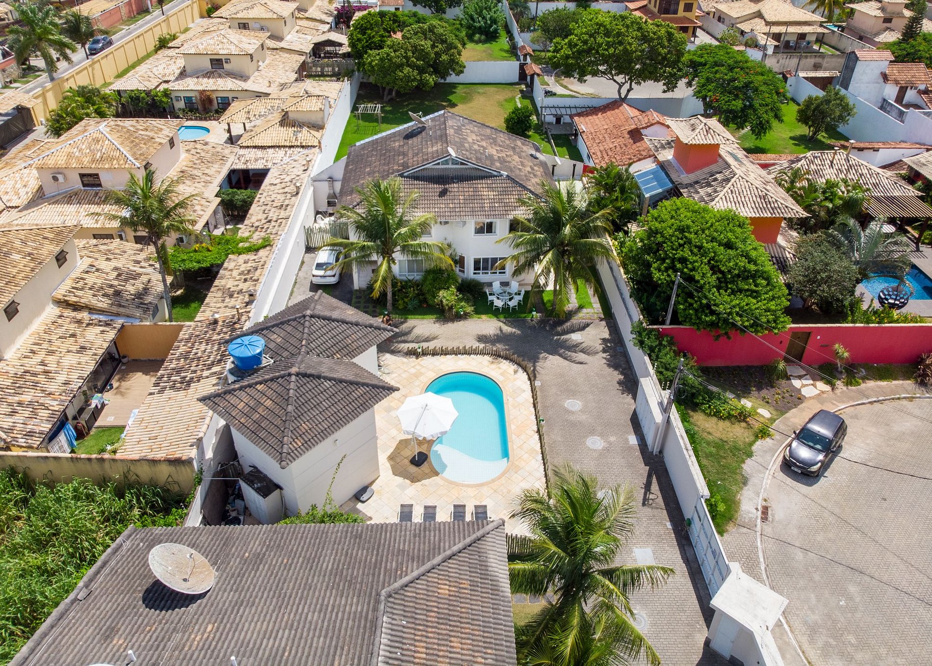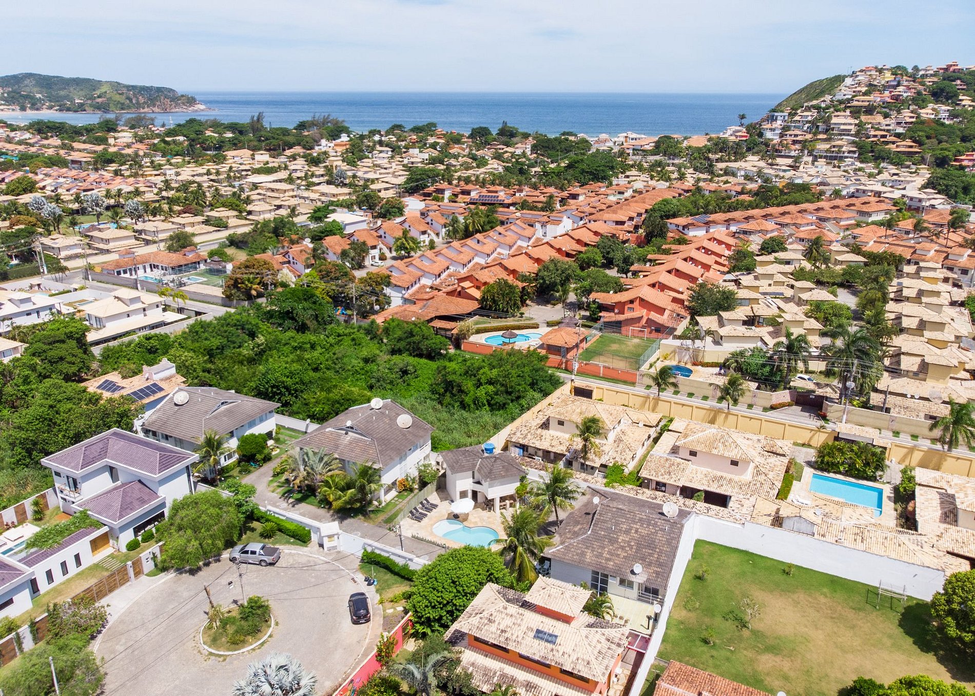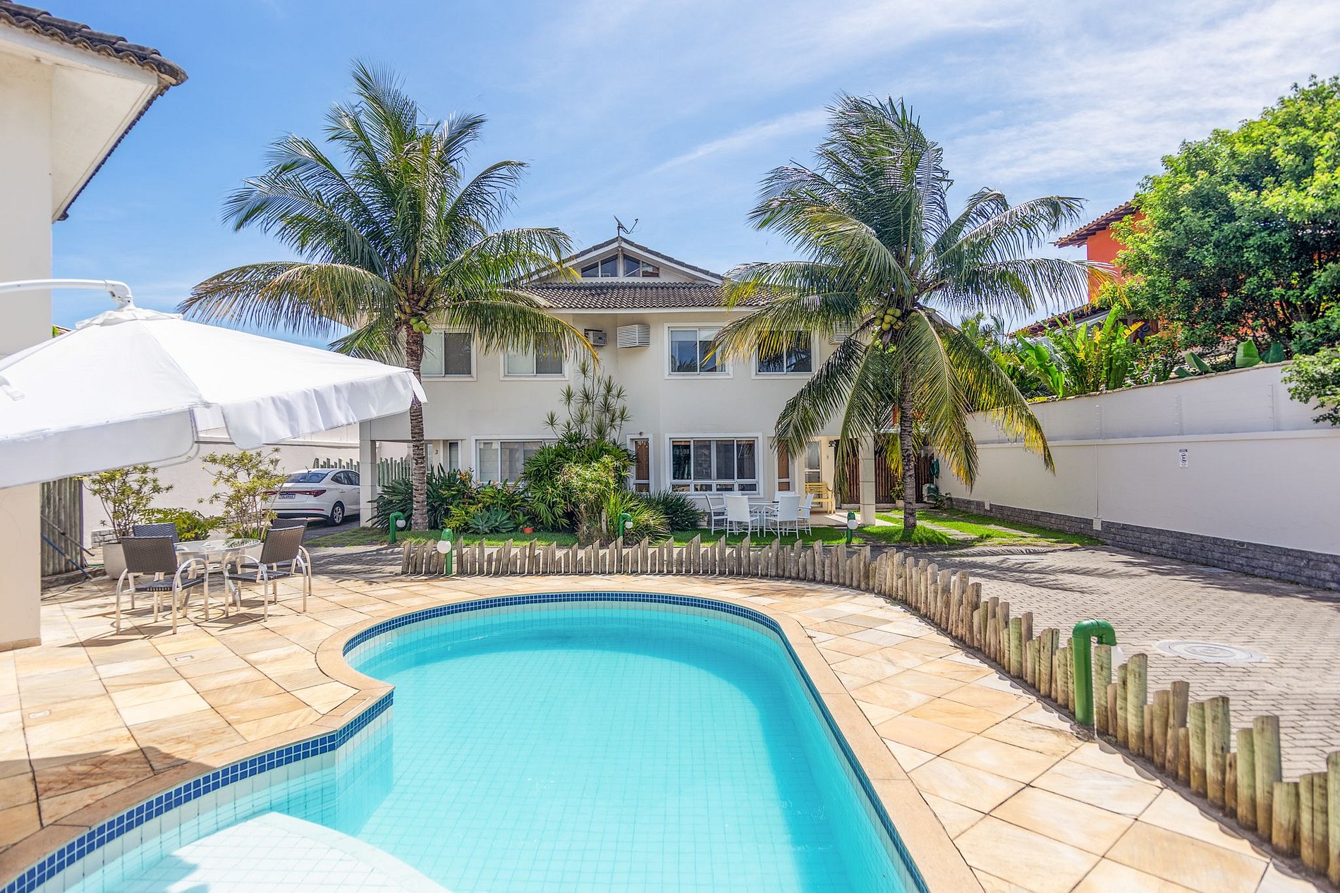 A casa está situada em uma localização privilegiada, a poucos metros da avenida principal de Búzios, onde se encontram padaria, mercado e outros comércios. Ao mesmo tempo, está a apenas 900 metros da Praia de Geribá.