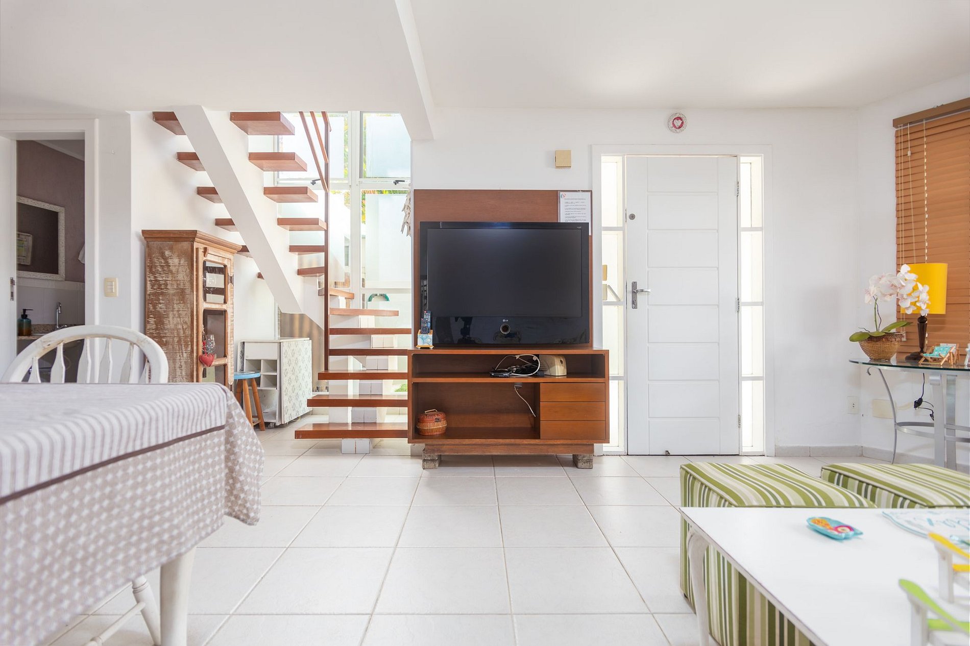 - Sala: mobiliada com televisão;