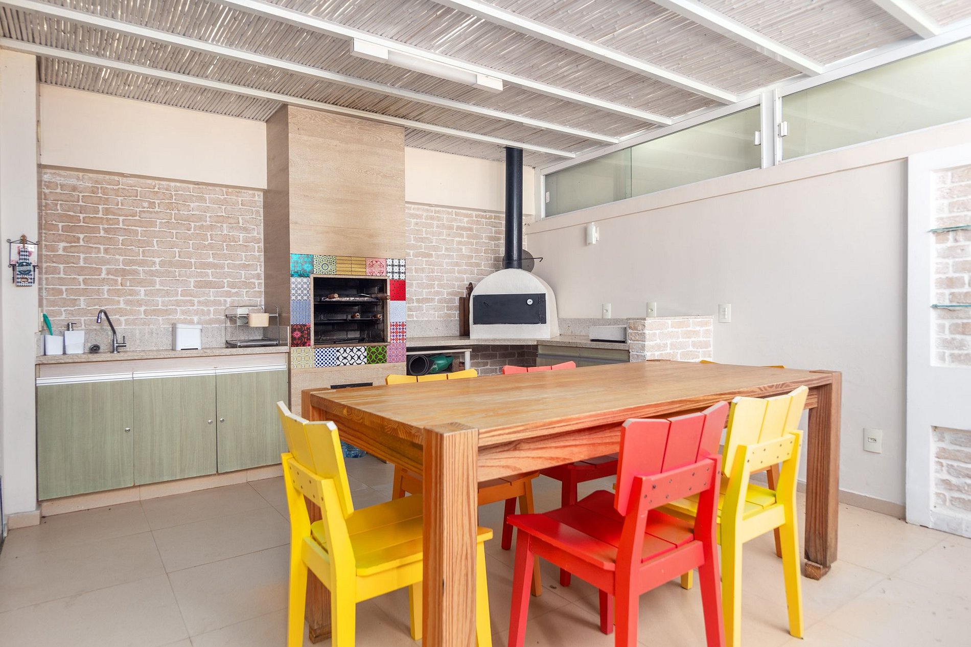 - Área gourmet: com churrasqueira e forno a lenha;