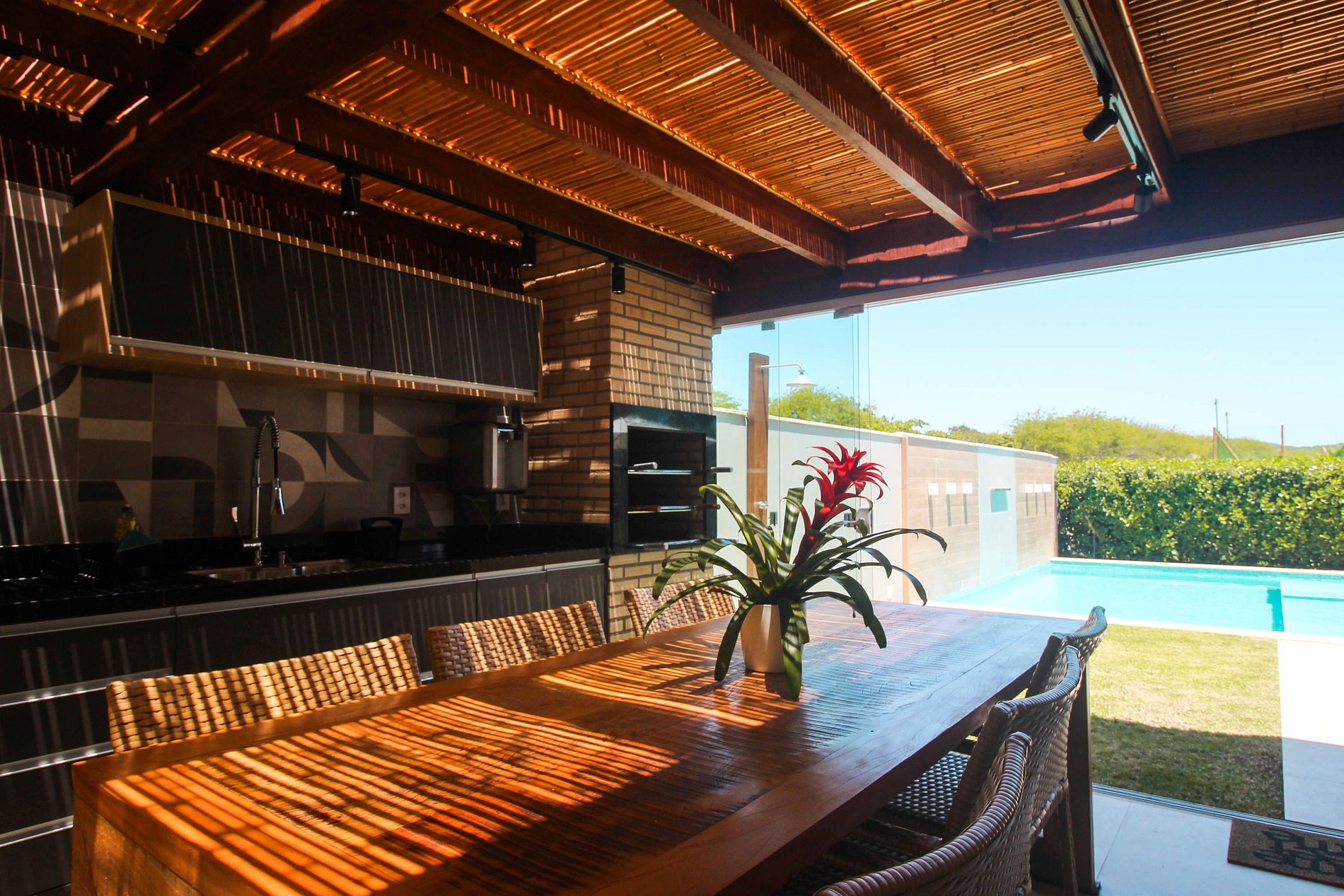 A casa é um imóvel extremamente confortável, ideal para grupos de até 8 pessoas. Ela é composta por sala, cozinha, 4 suítes, área gourmet e piscina privativa.