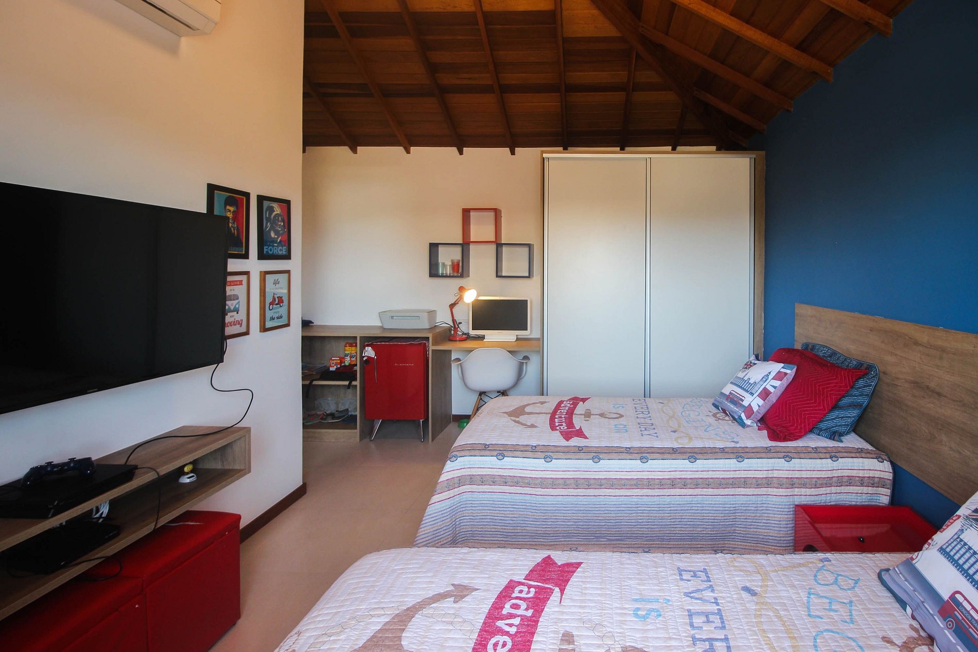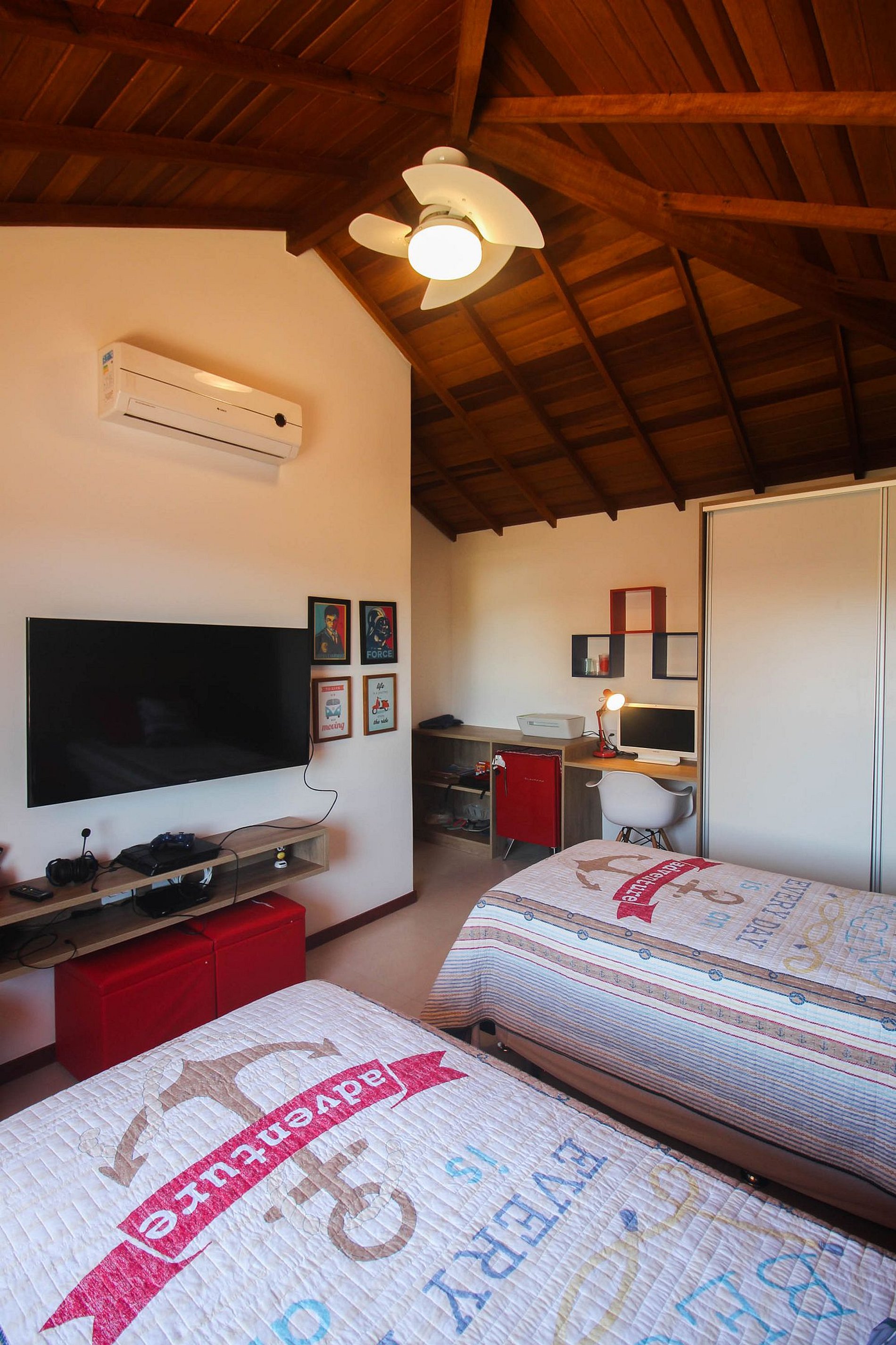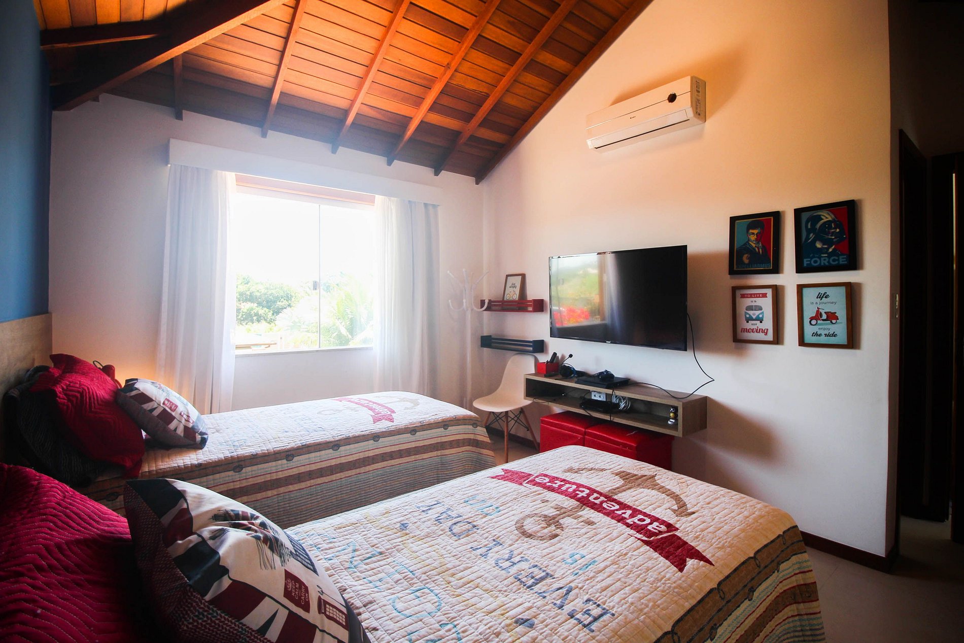 Suíte 4: duas camas de solteiro, tv e ar condicionado split