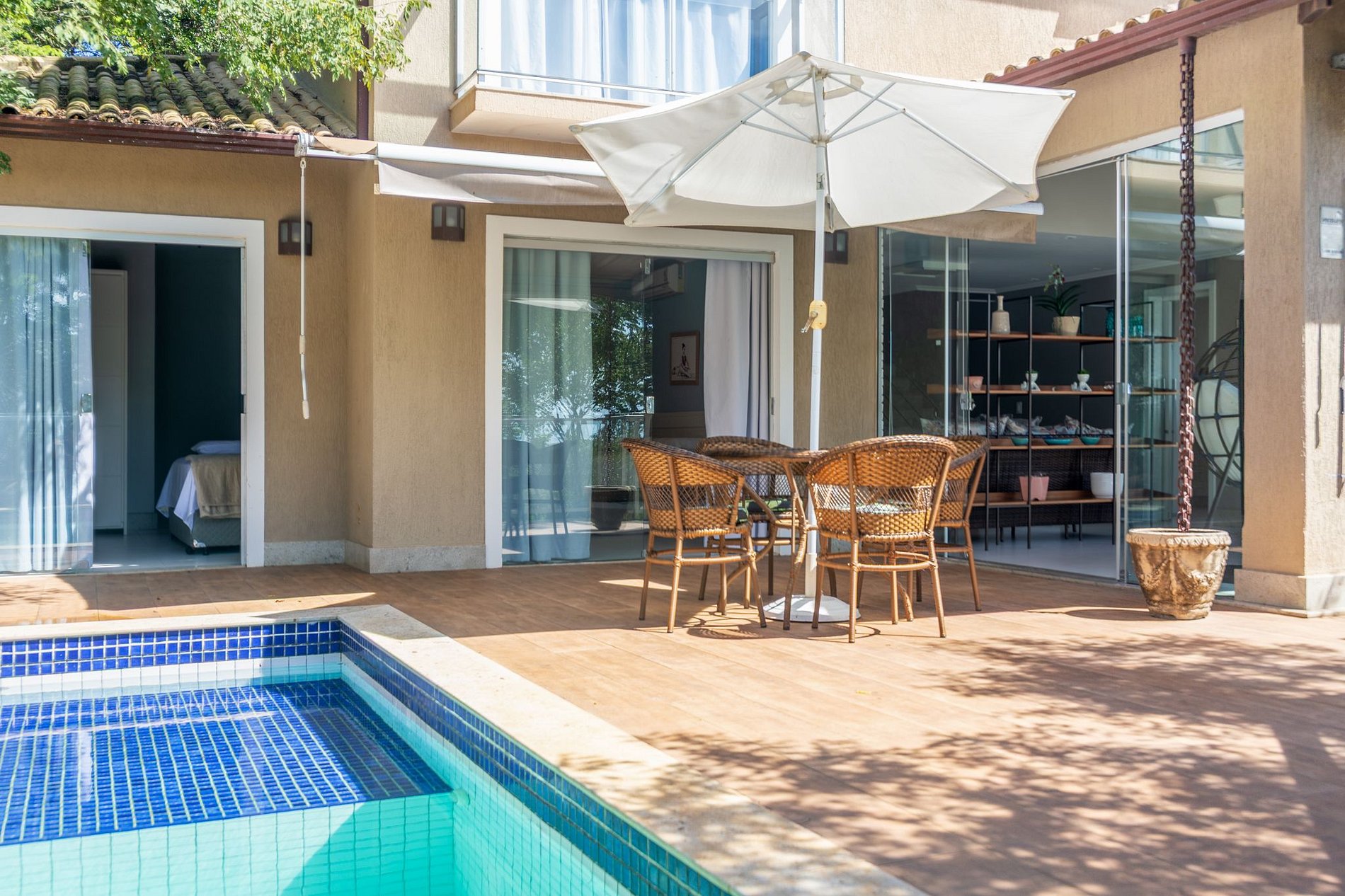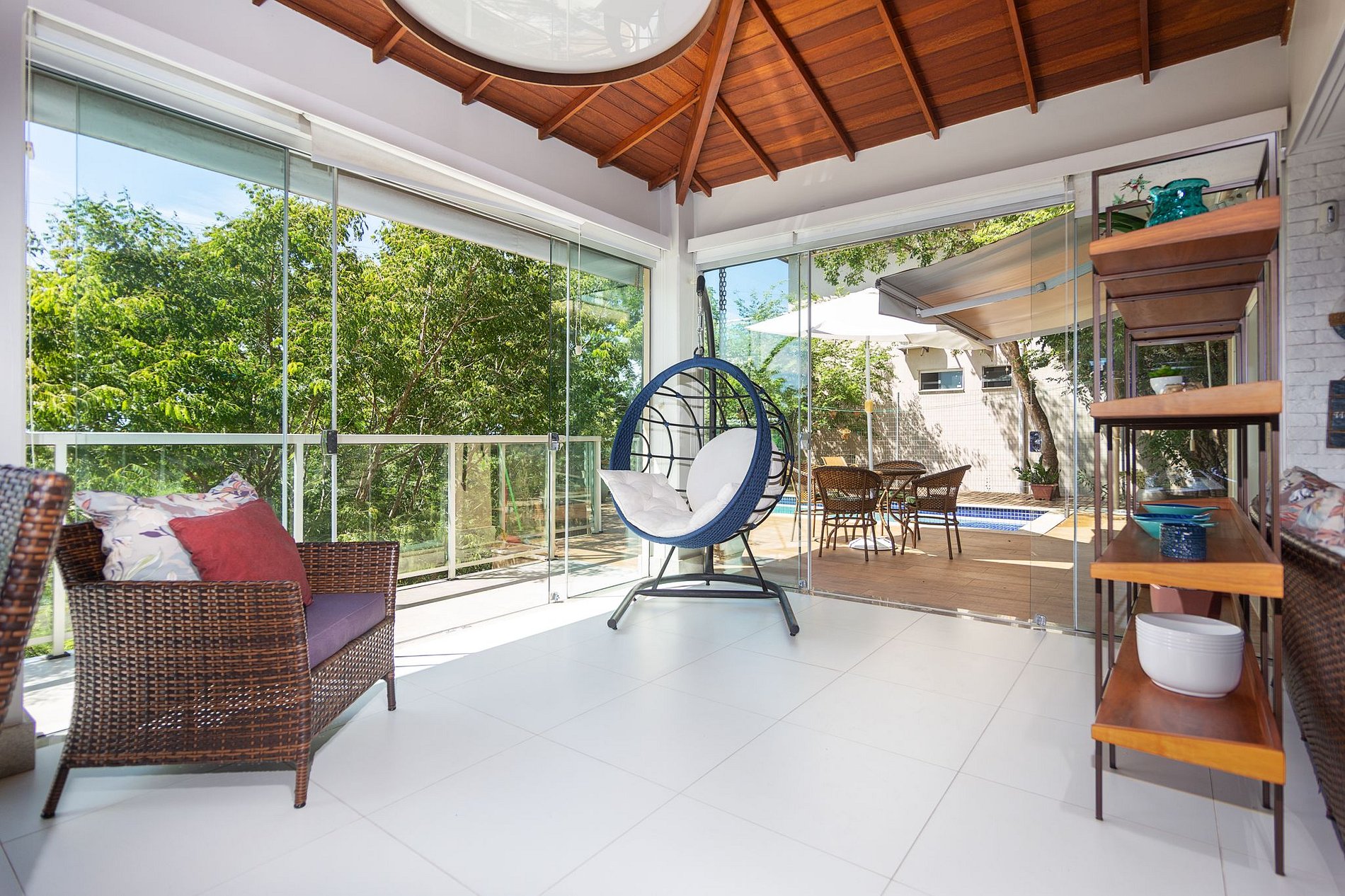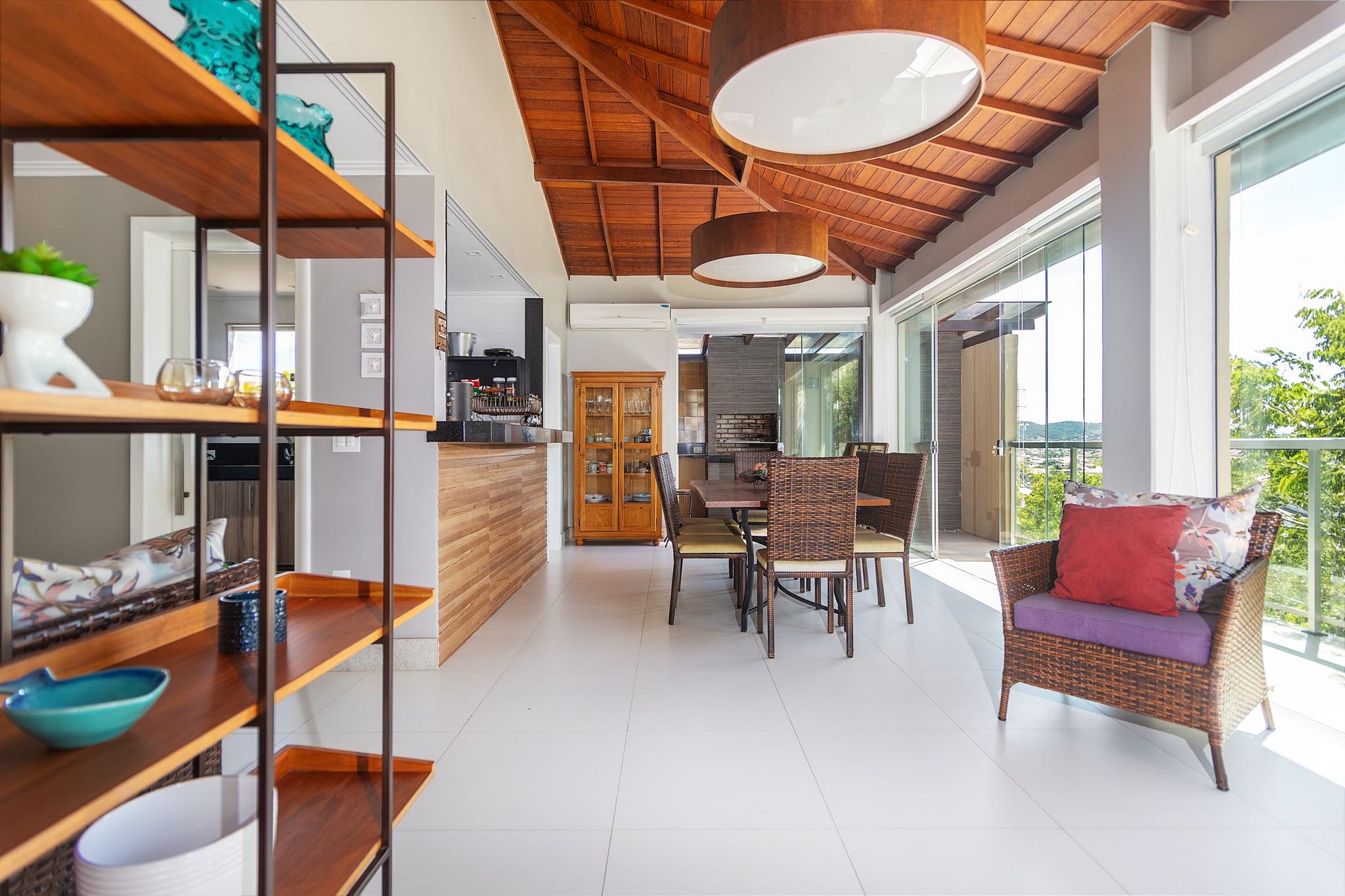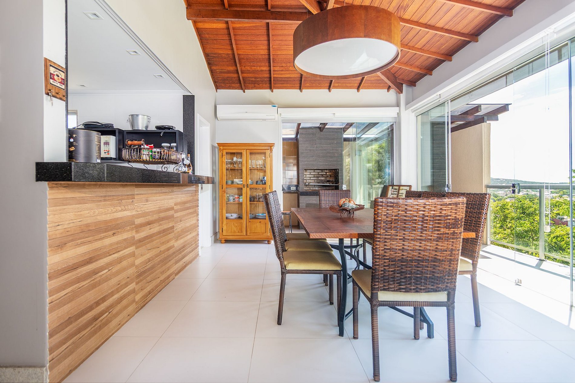 No área externa temos uma linda área gourmet com churrasqueira, forno à lenha e piscina privativa.