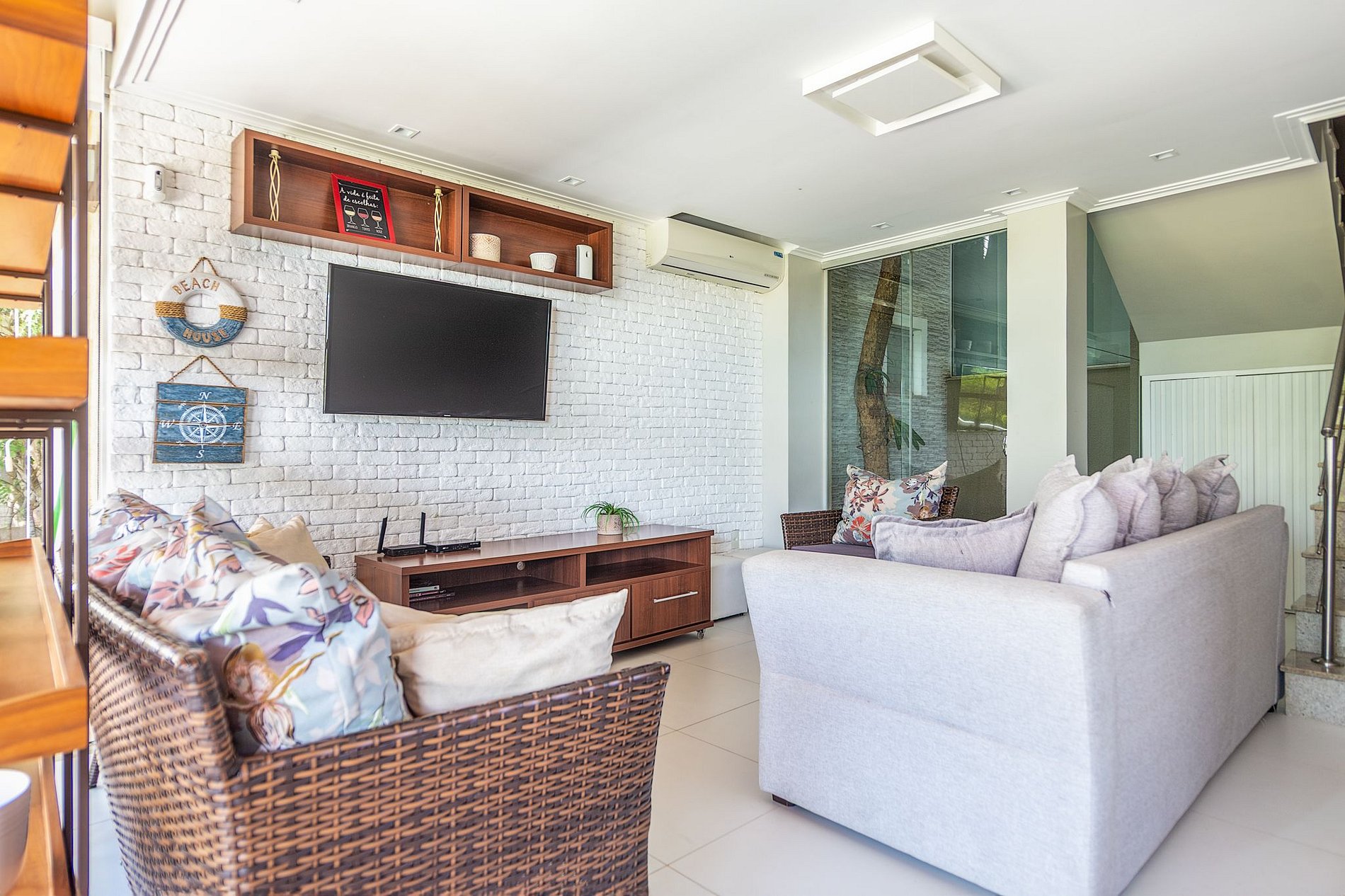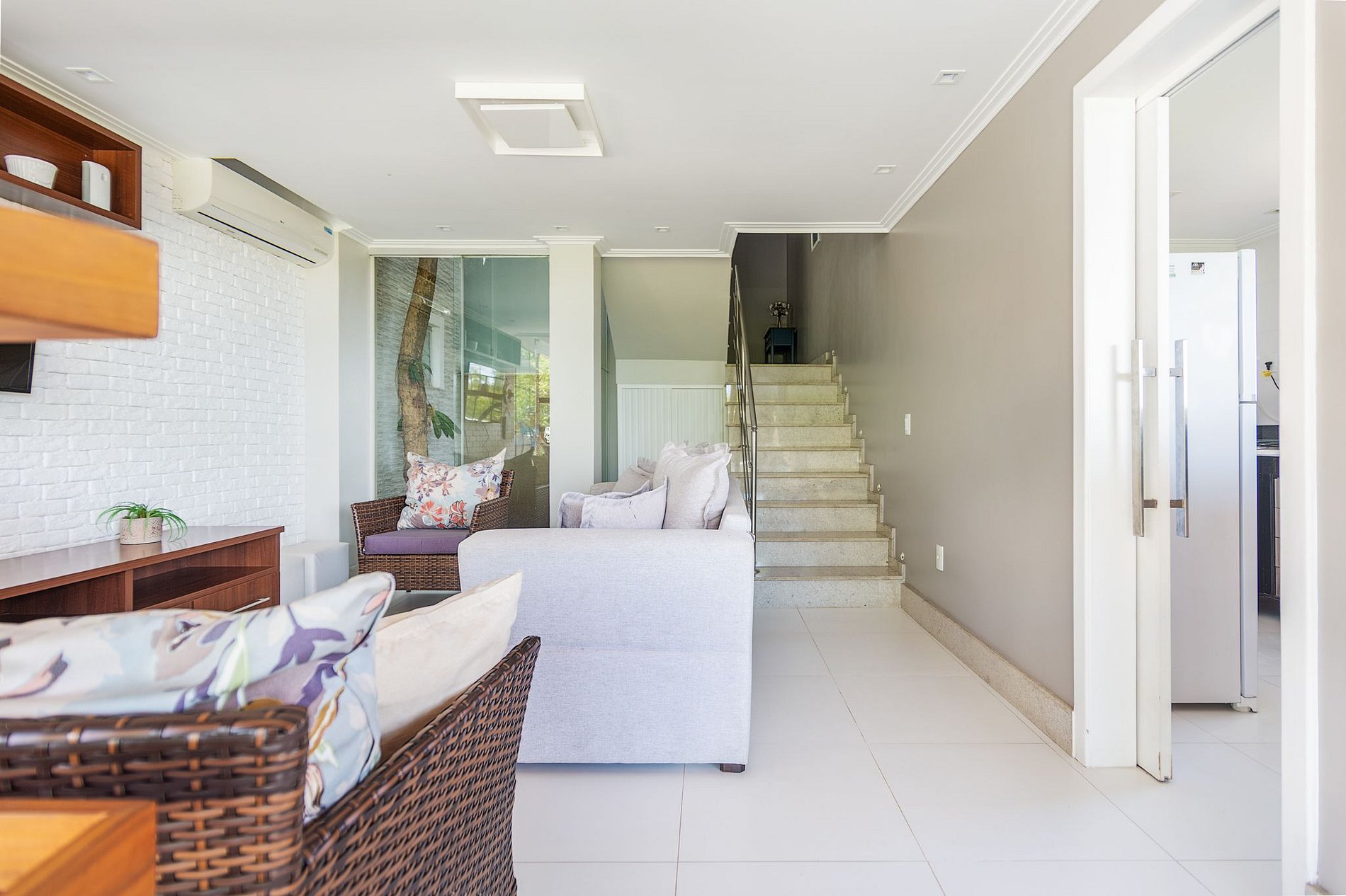 A casa é composta por sala com tv, sofá, ar condicionado e mesa. A cozinha é totalmente equipada com todos os utensílios necessários. Temos 3 quartos acomodando 6 pessoas confortavelmente.