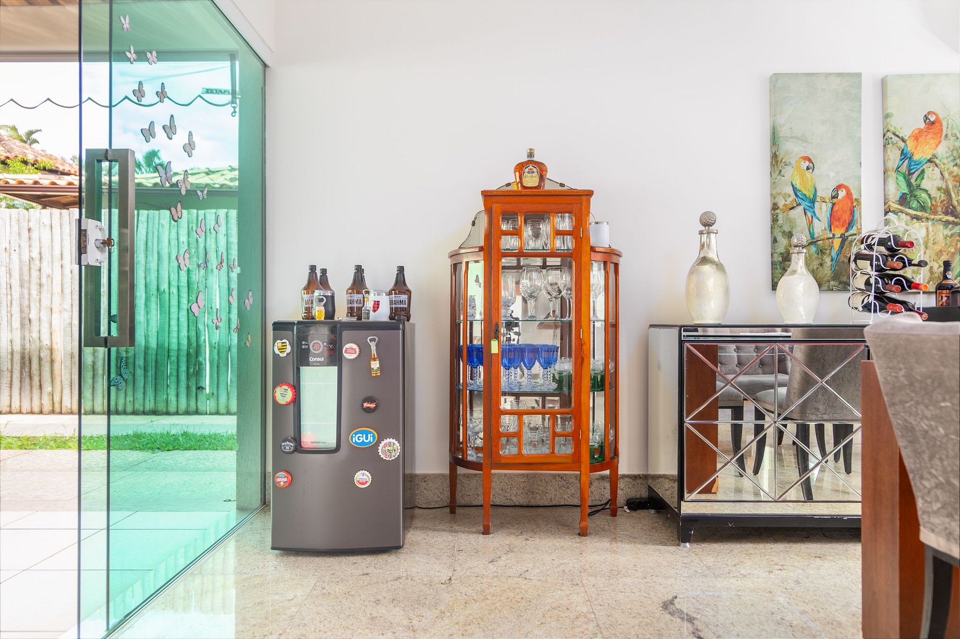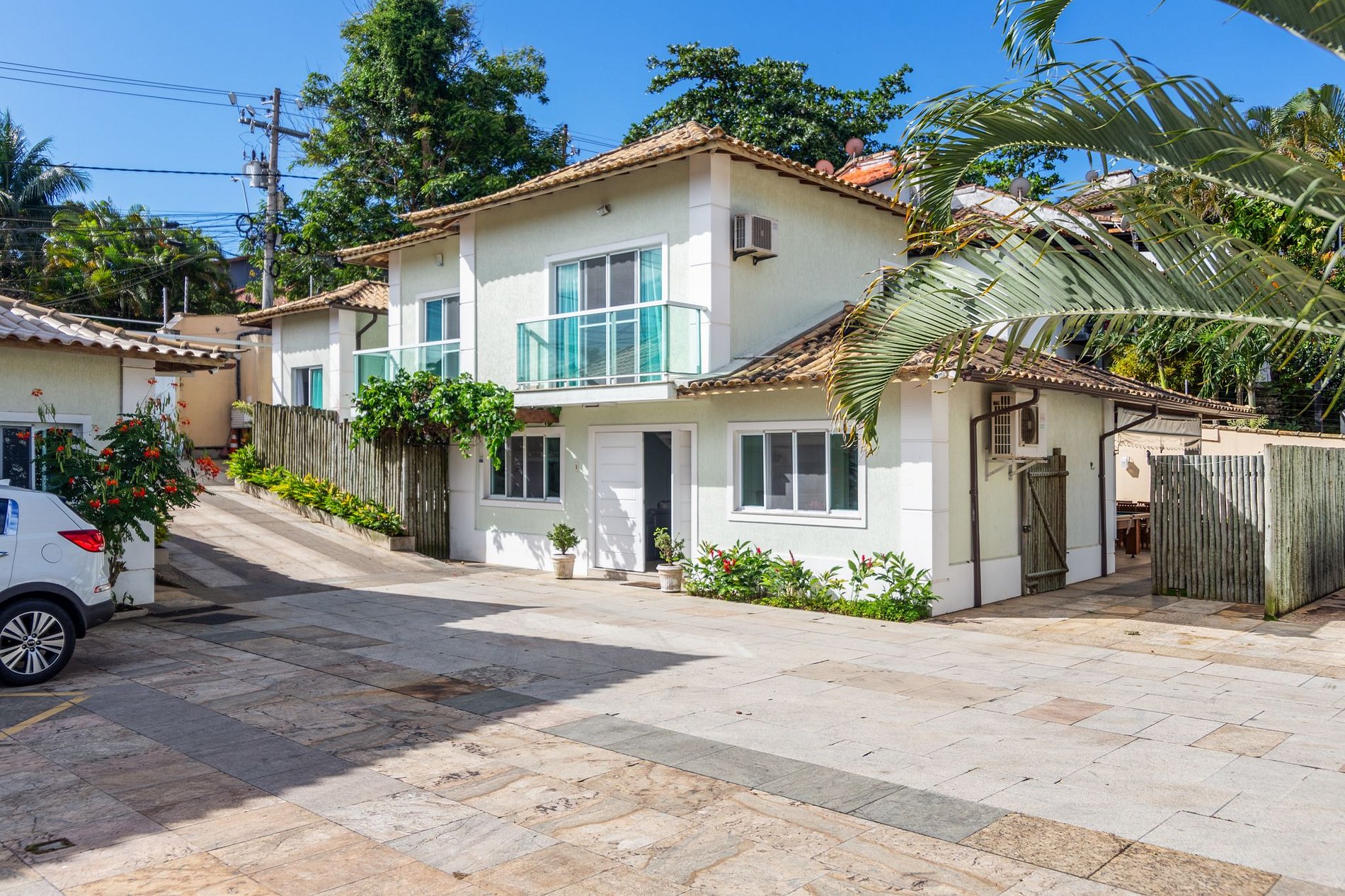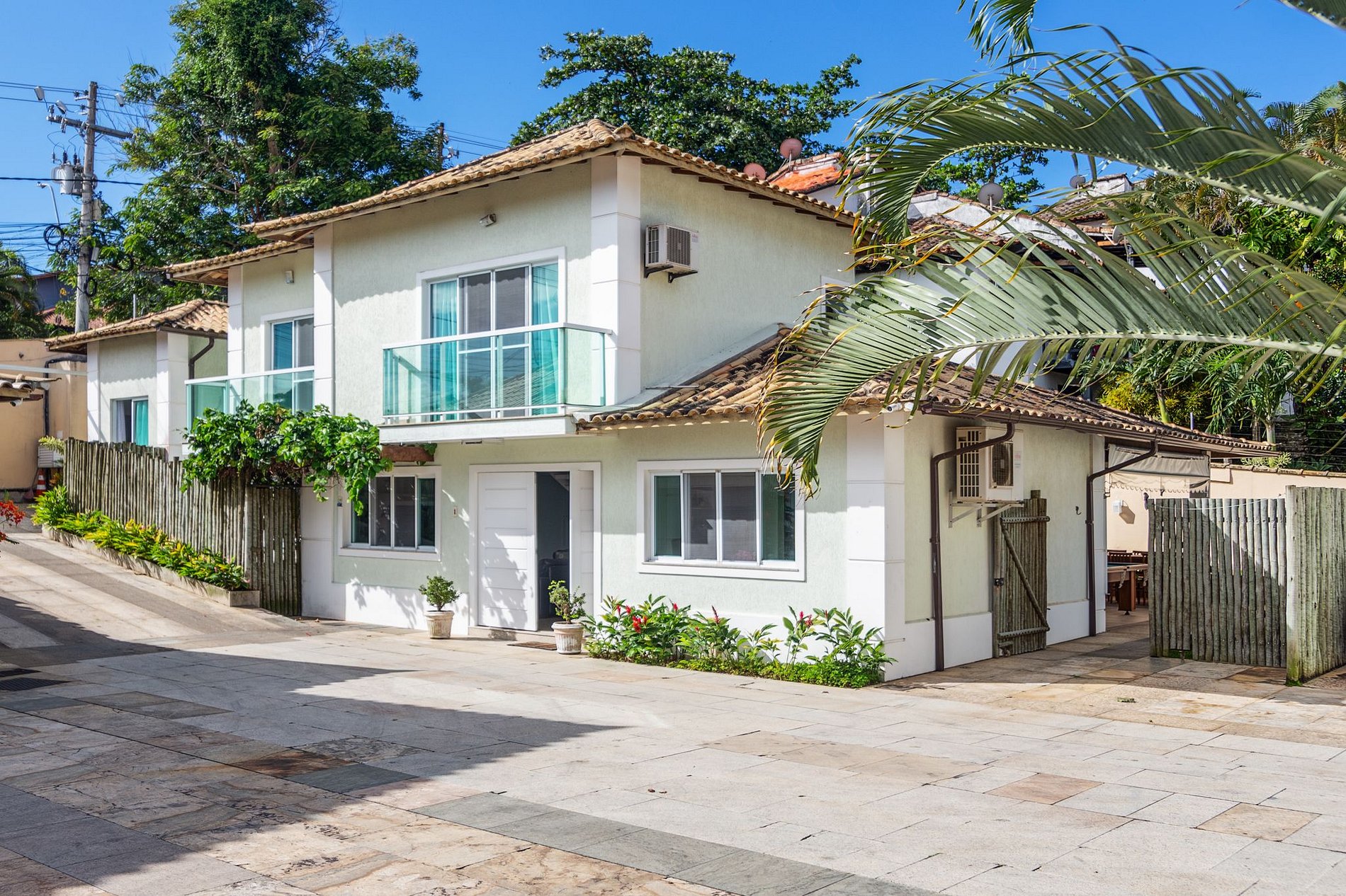 A casa está situada em uma localização privilegiada, a poucos metros da avenida principal de Búzios, onde se encontram padaria, mercado e outros comércios. Ao mesmo tempo, está a apenas 500 metros da Praia de Geribá, 2km da praia da Ferradura e 3km do centro da cidade.