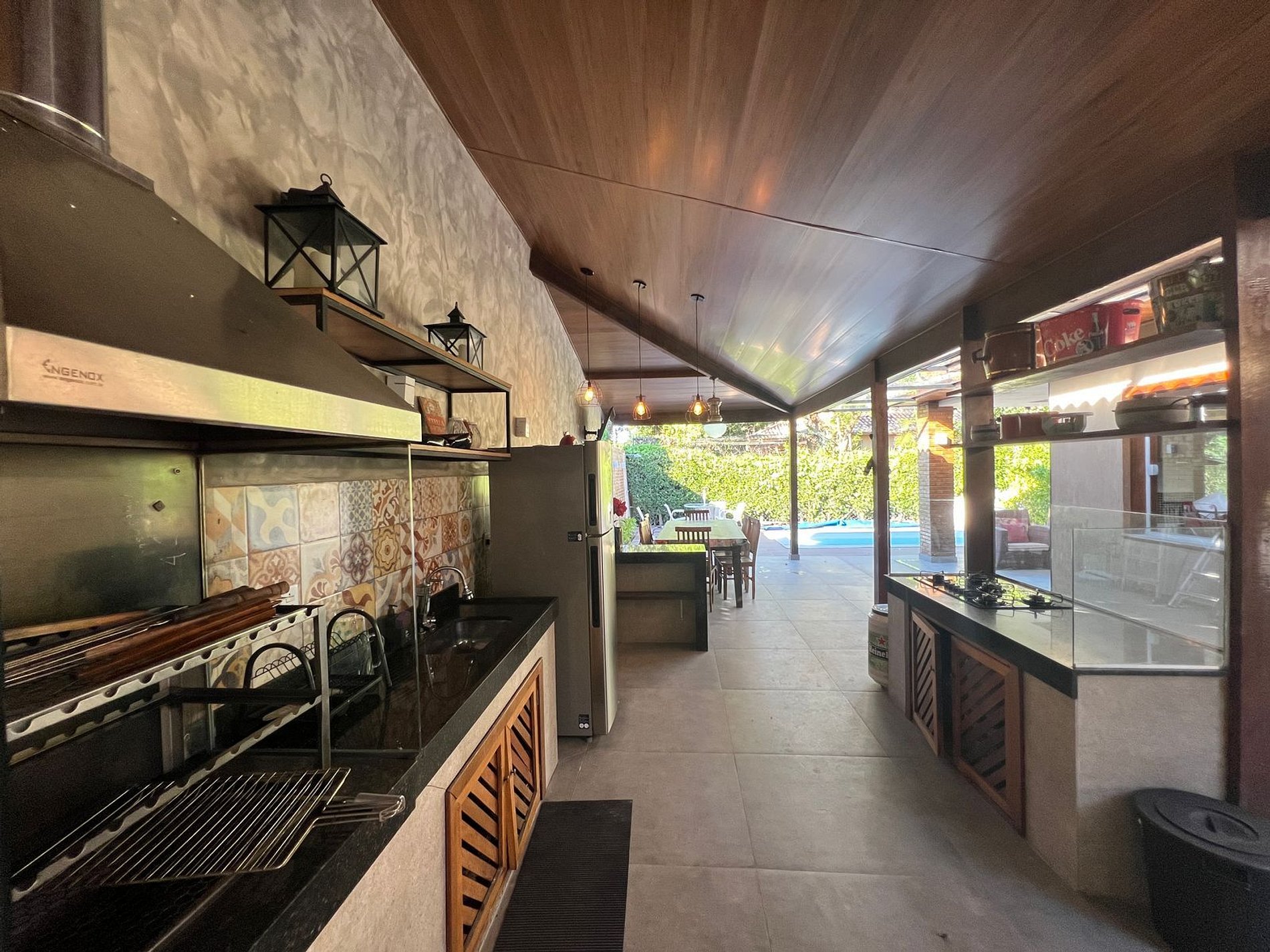 Desfrute de uma estadia incrível nesta casa super aconchegante e equipada! São 4 suítes confortáveis, área gourmet completa com churrasqueira, forno a lenha e cooktop, além de uma bela piscina com cascata. A cozinha é totalmente equipada e integrada à sala de jantar e estar, proporcionando momentos únicos com a família ou amigos.