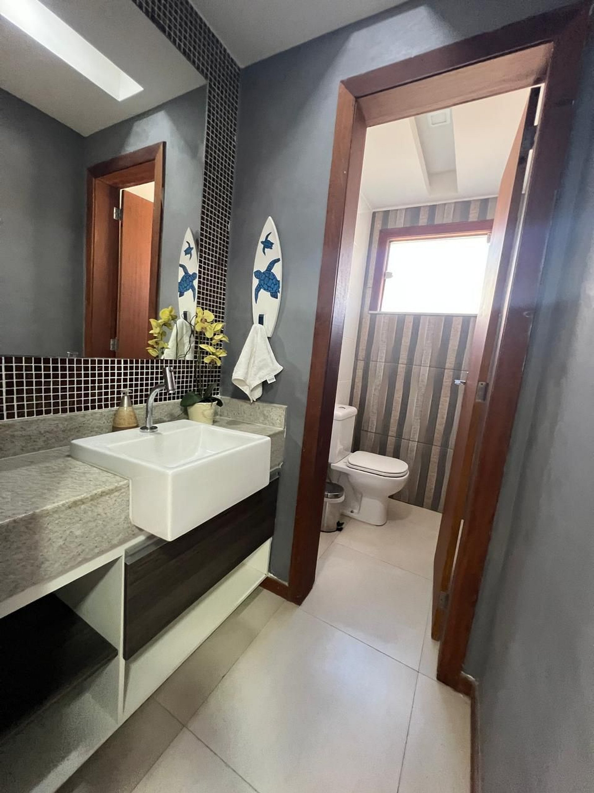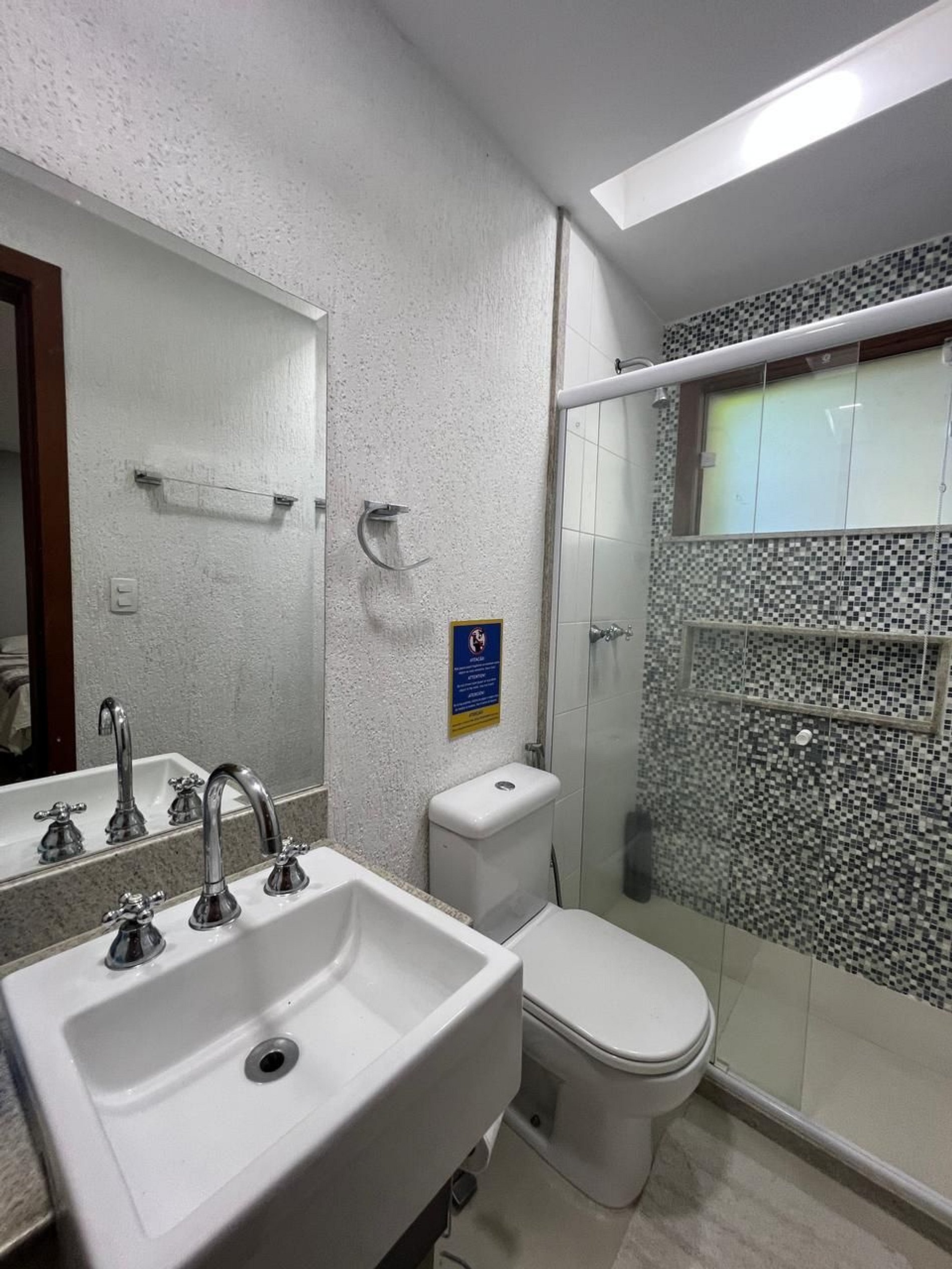 Suíte 2: 1 bicama (solteiro + auxiliar), 1 cama de solteiro, TV e ar-condicionado split (opção de virar cama de casal).