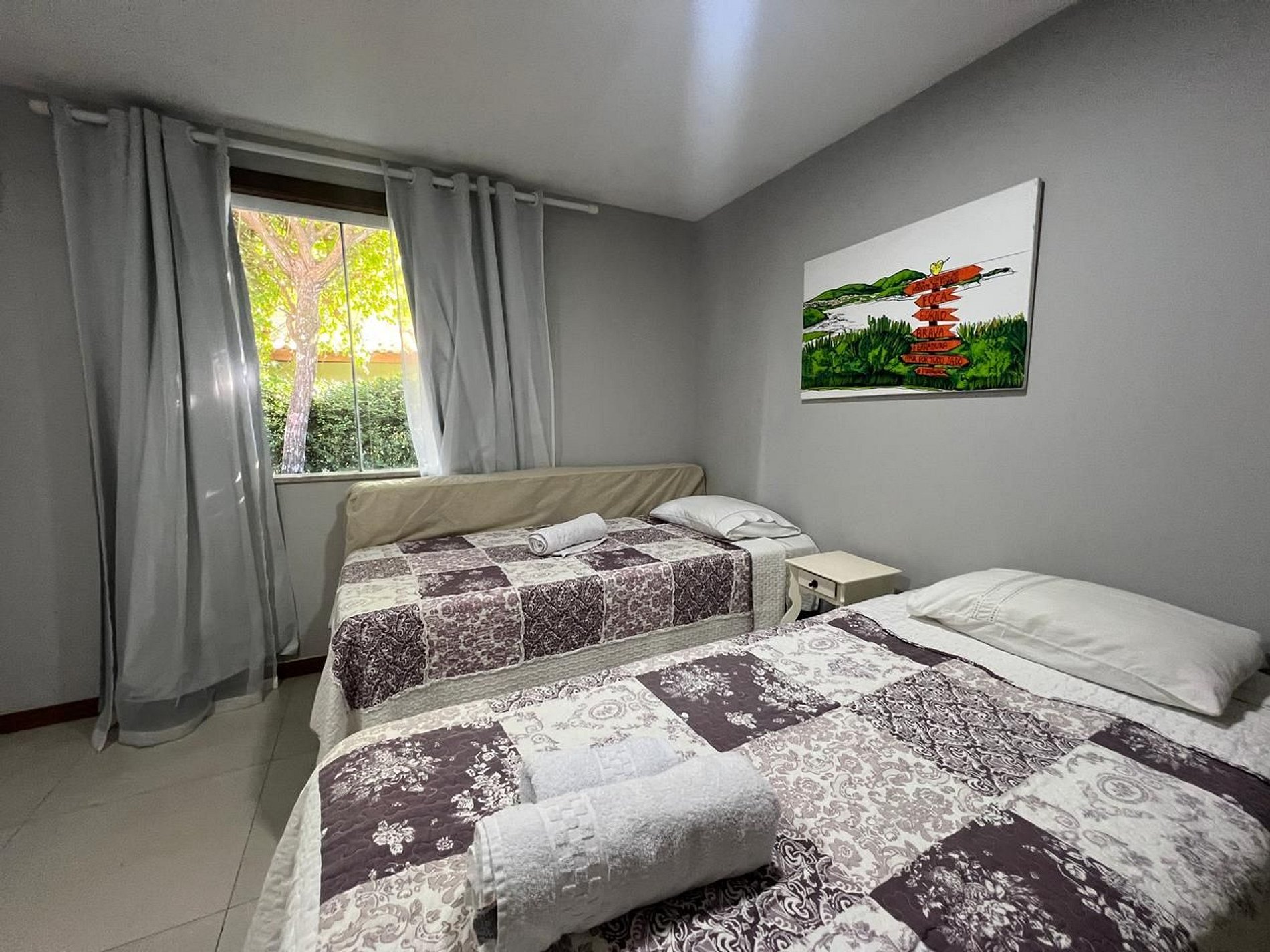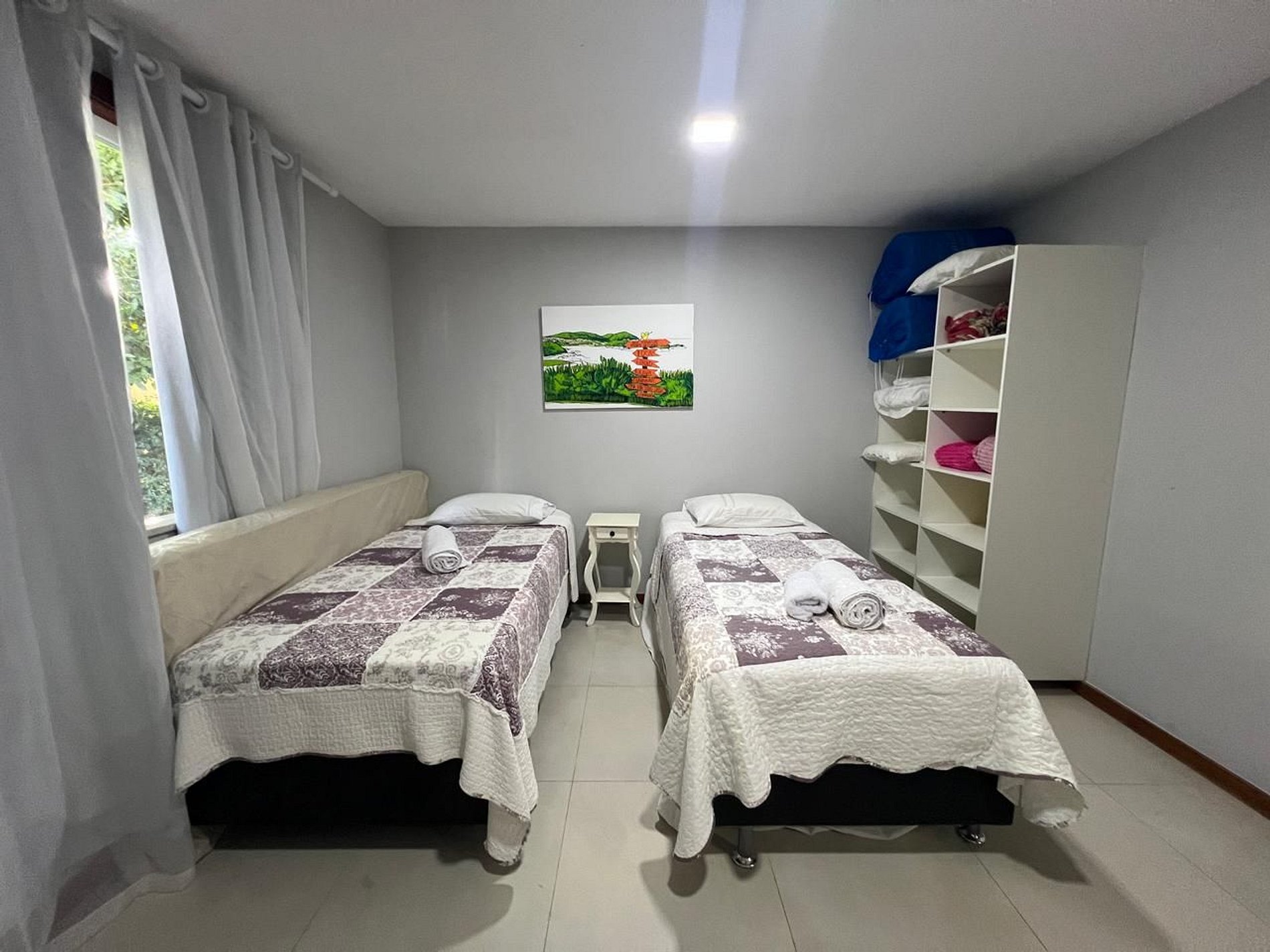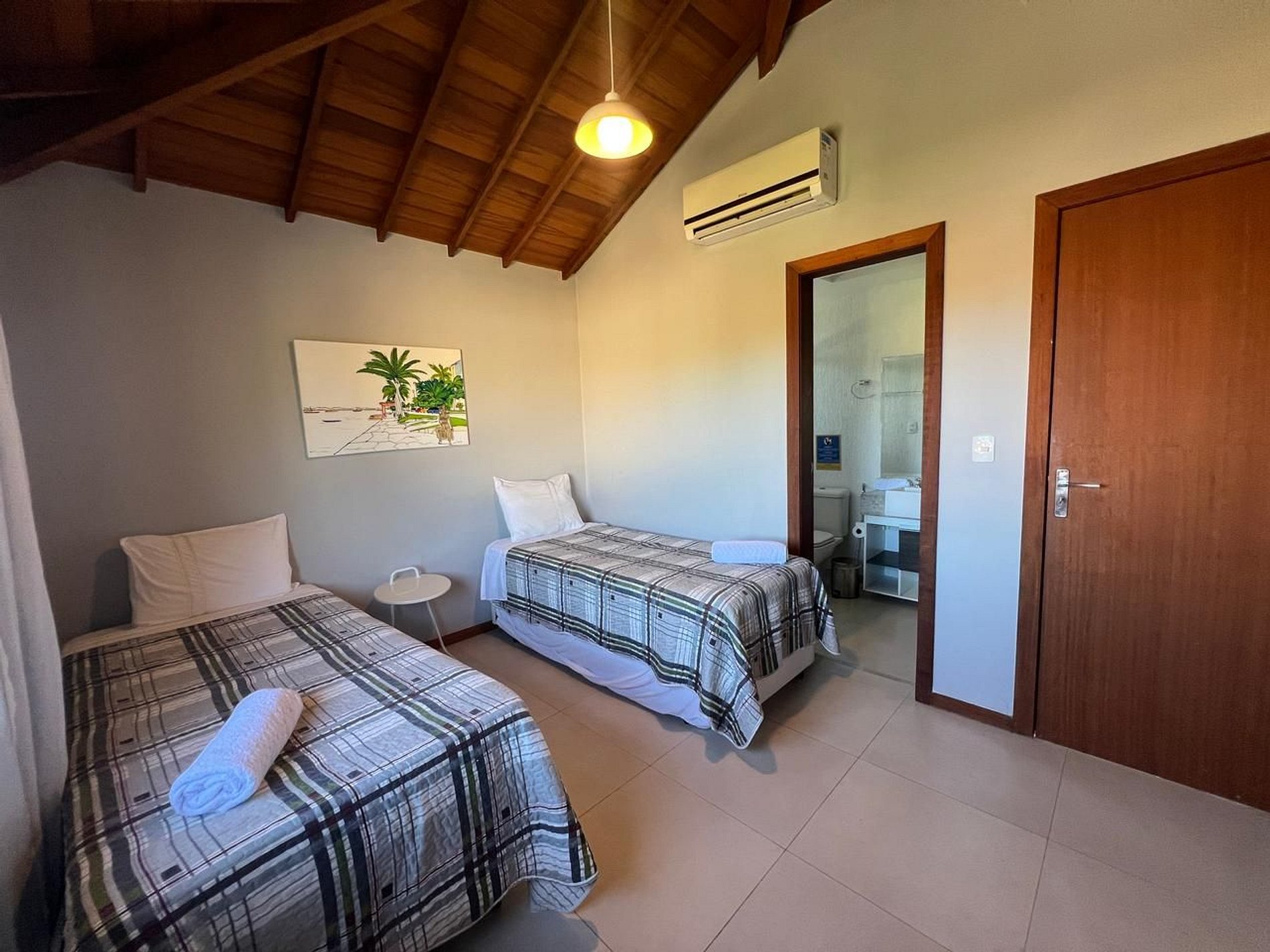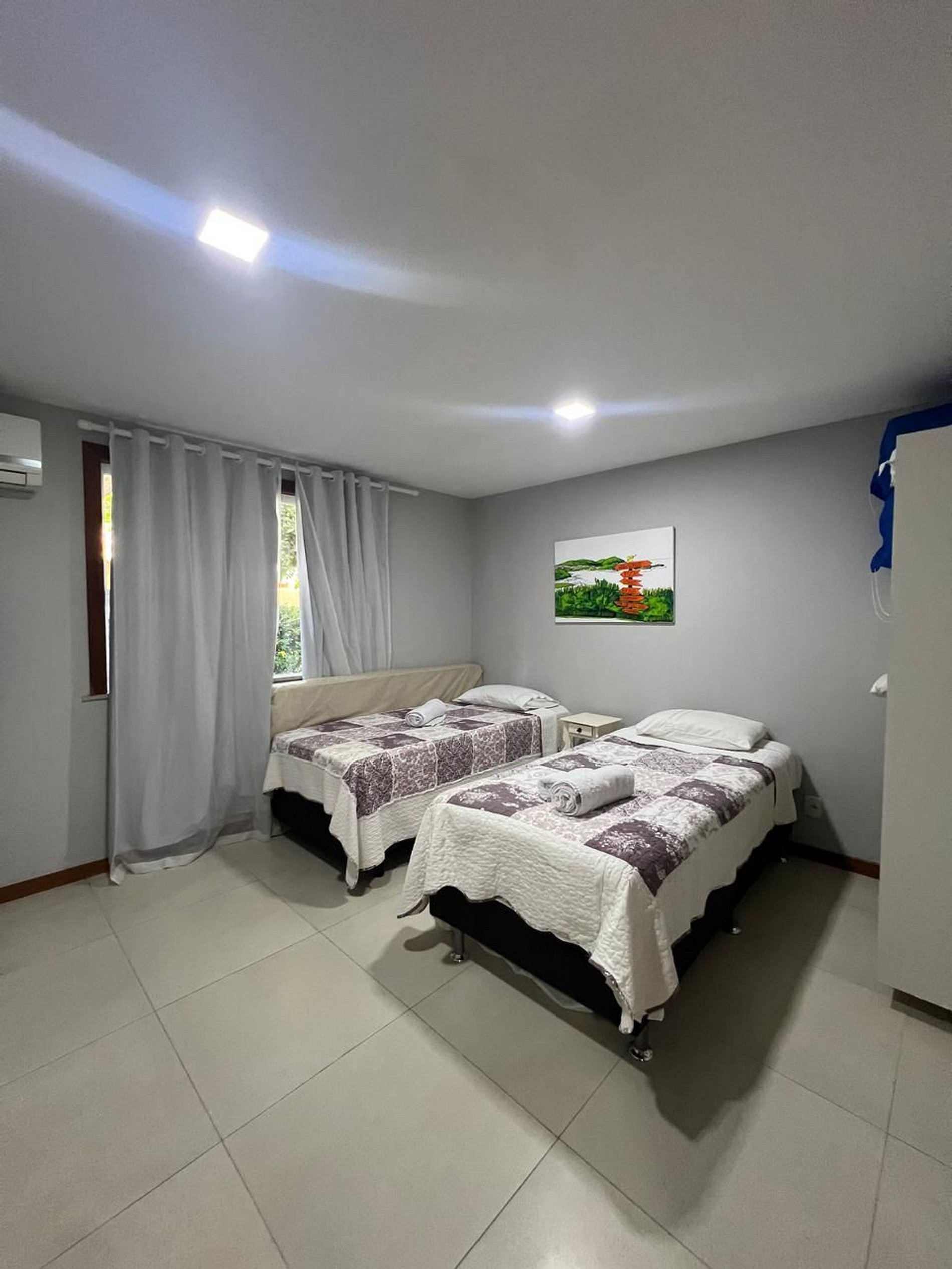 Suíte 1: 1 bicama (solteiro + auxiliar), 1 cama de solteiro extra, 1 cama auxiliar, ar-condicionado split.