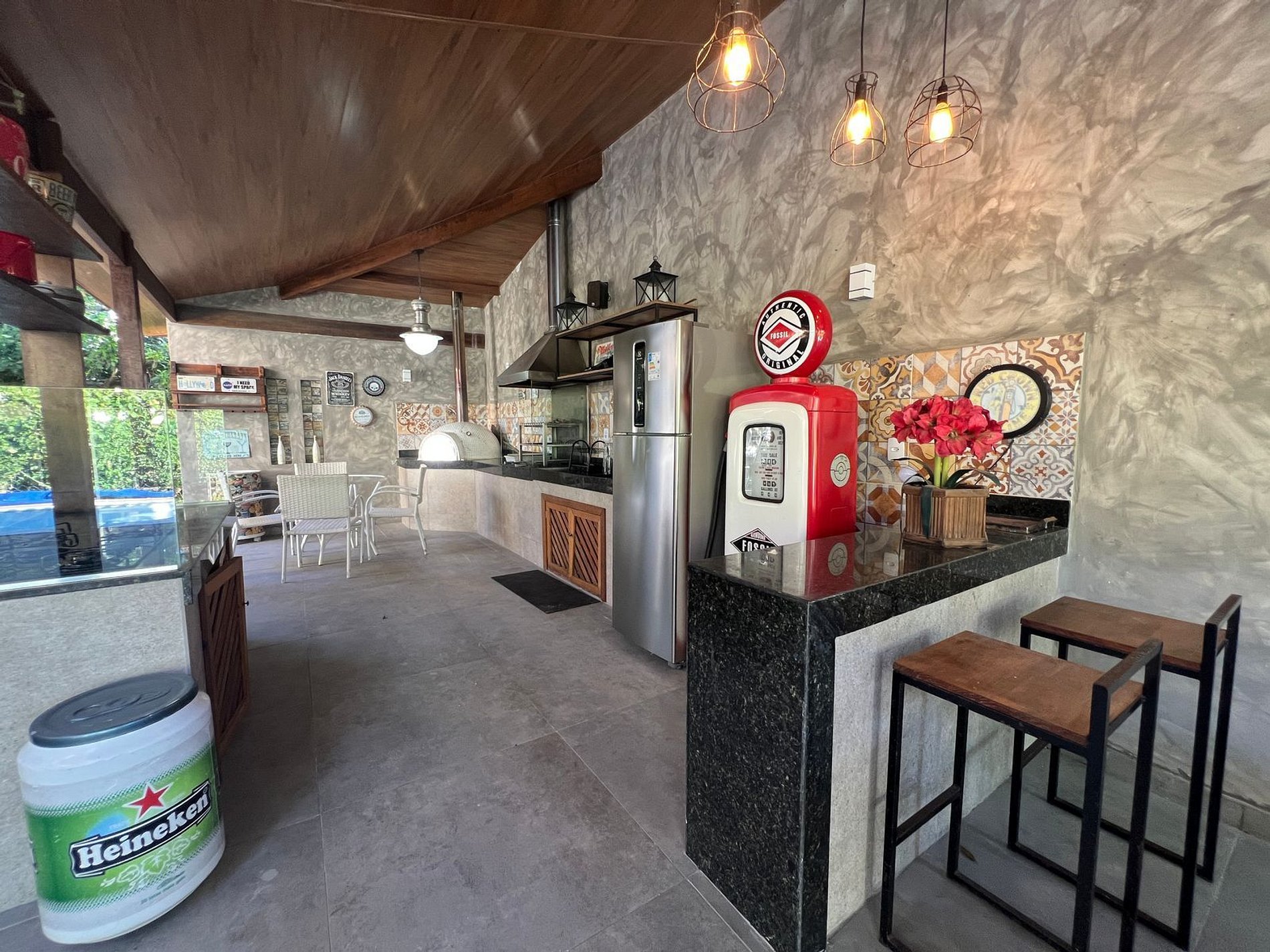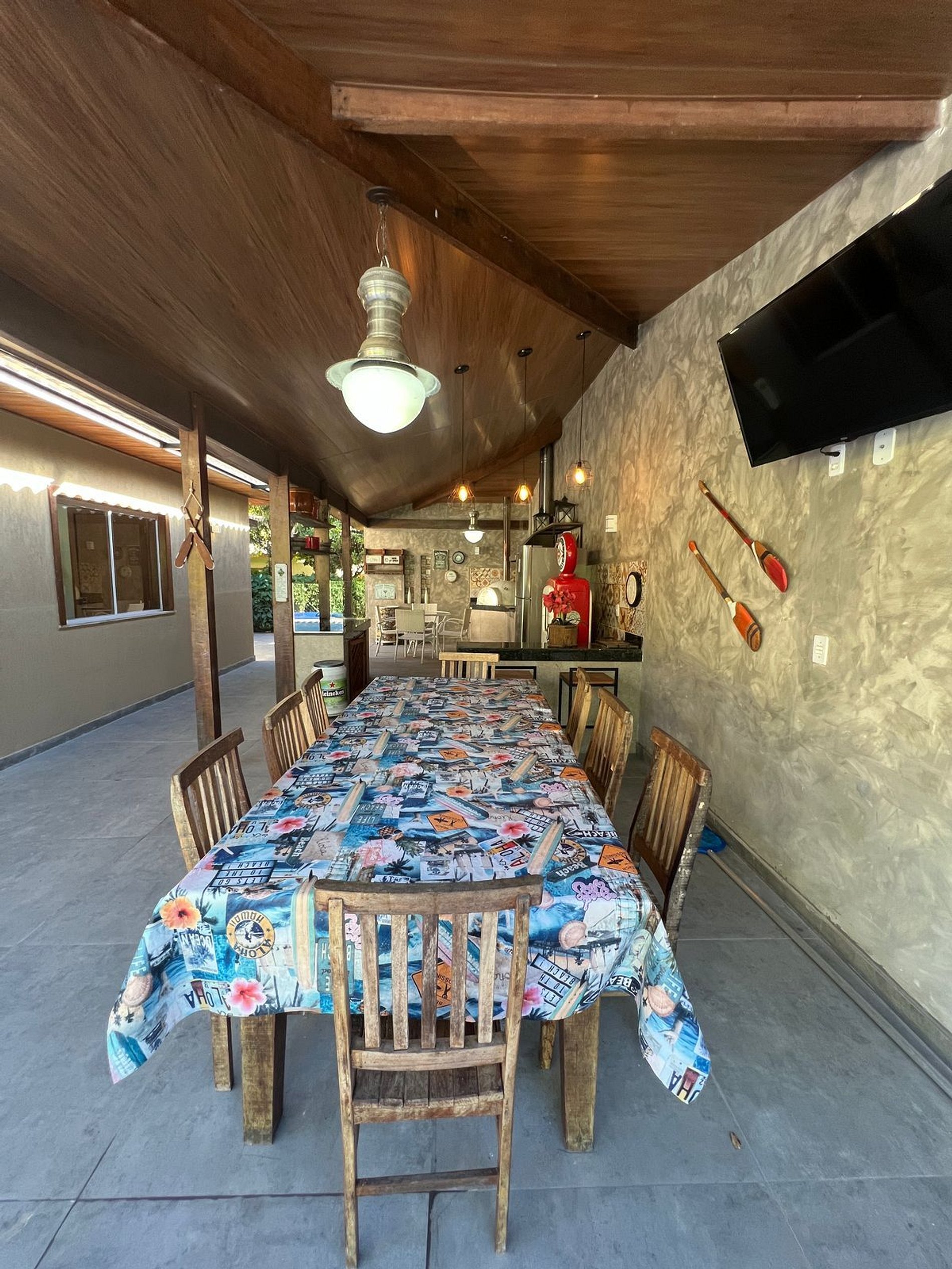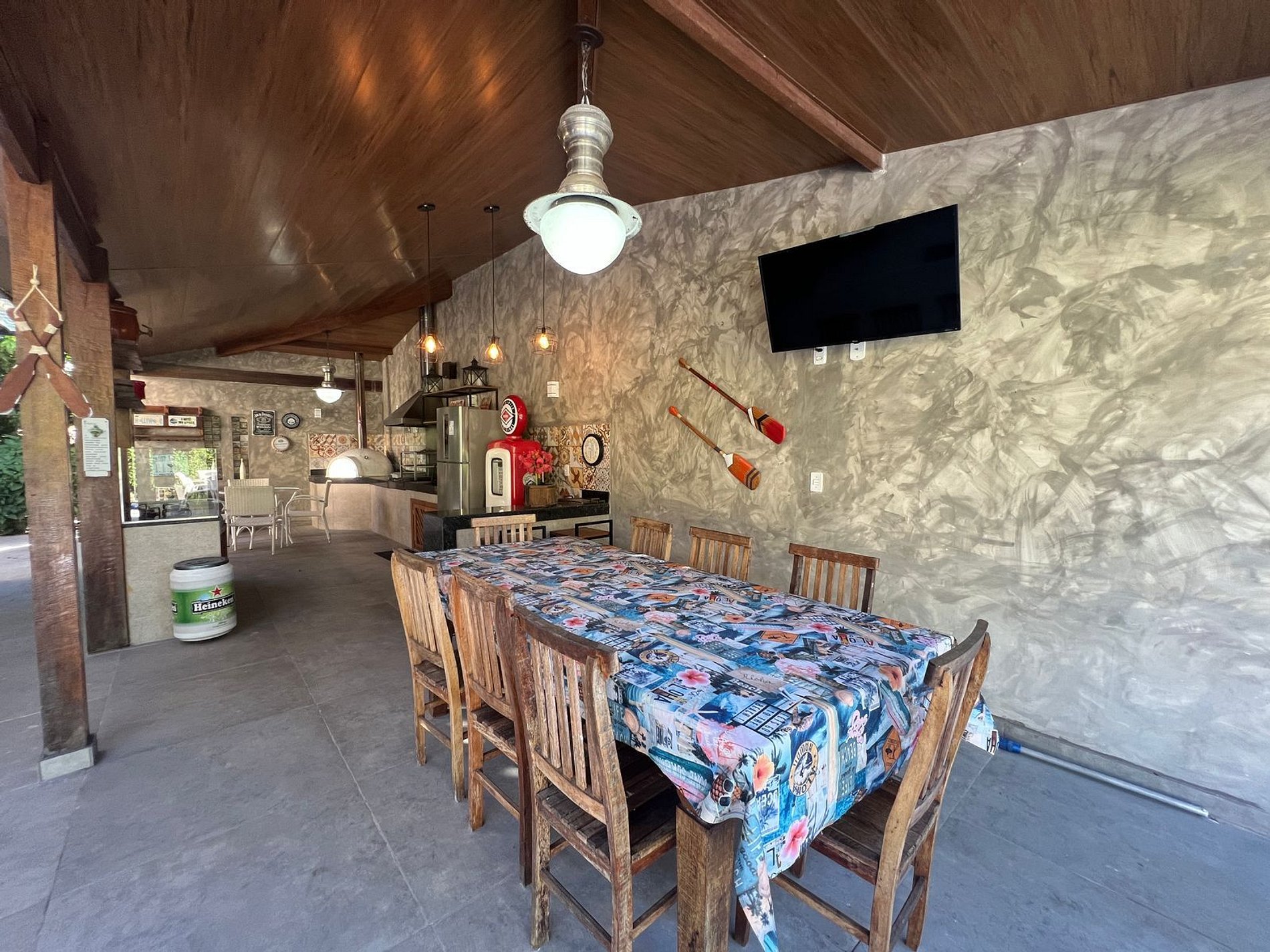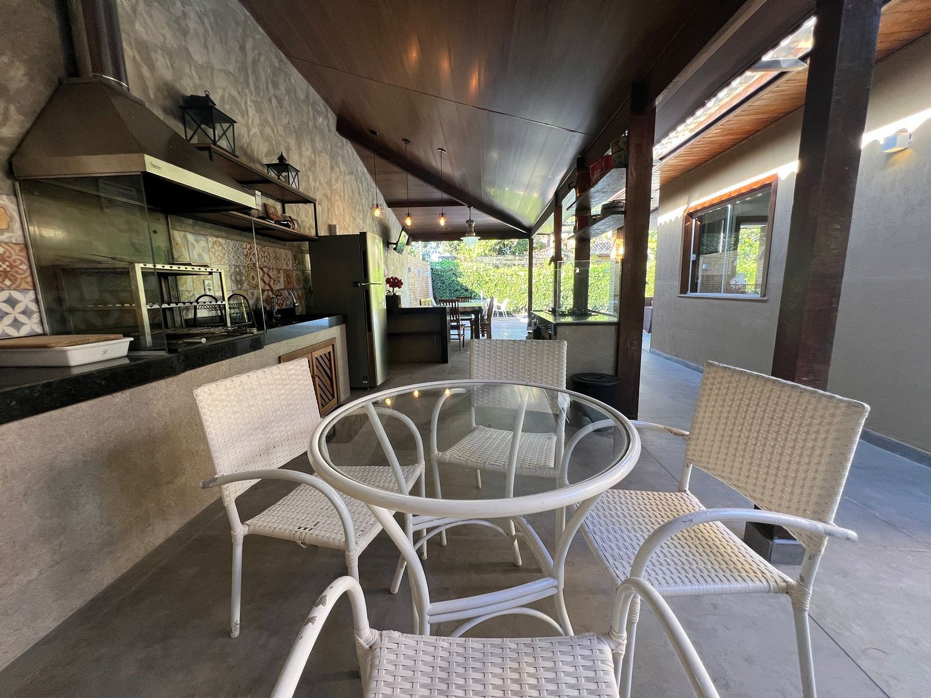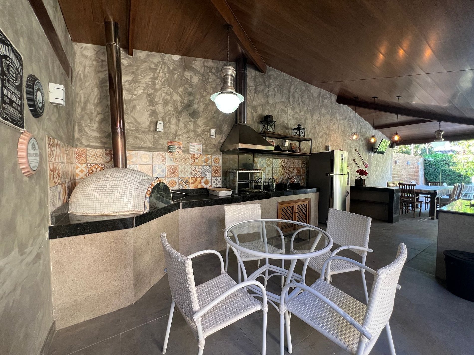 Desfrute de uma estadia incrível nesta casa super aconchegante e equipada! São 4 suítes confortáveis, área gourmet completa com churrasqueira, forno a lenha e cooktop, além de uma bela piscina com cascata. A cozinha é totalmente equipada e integrada à sala de jantar e estar, proporcionando momentos únicos com a família ou amigos.