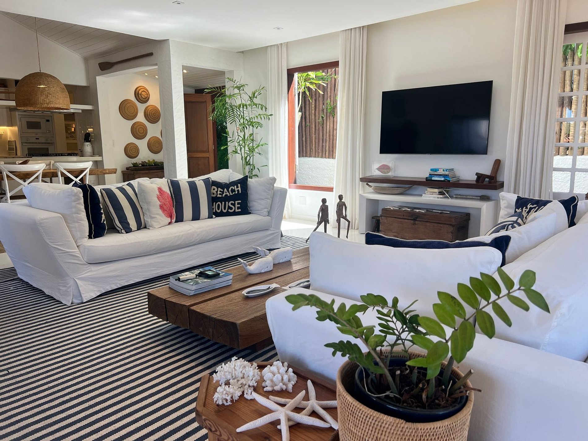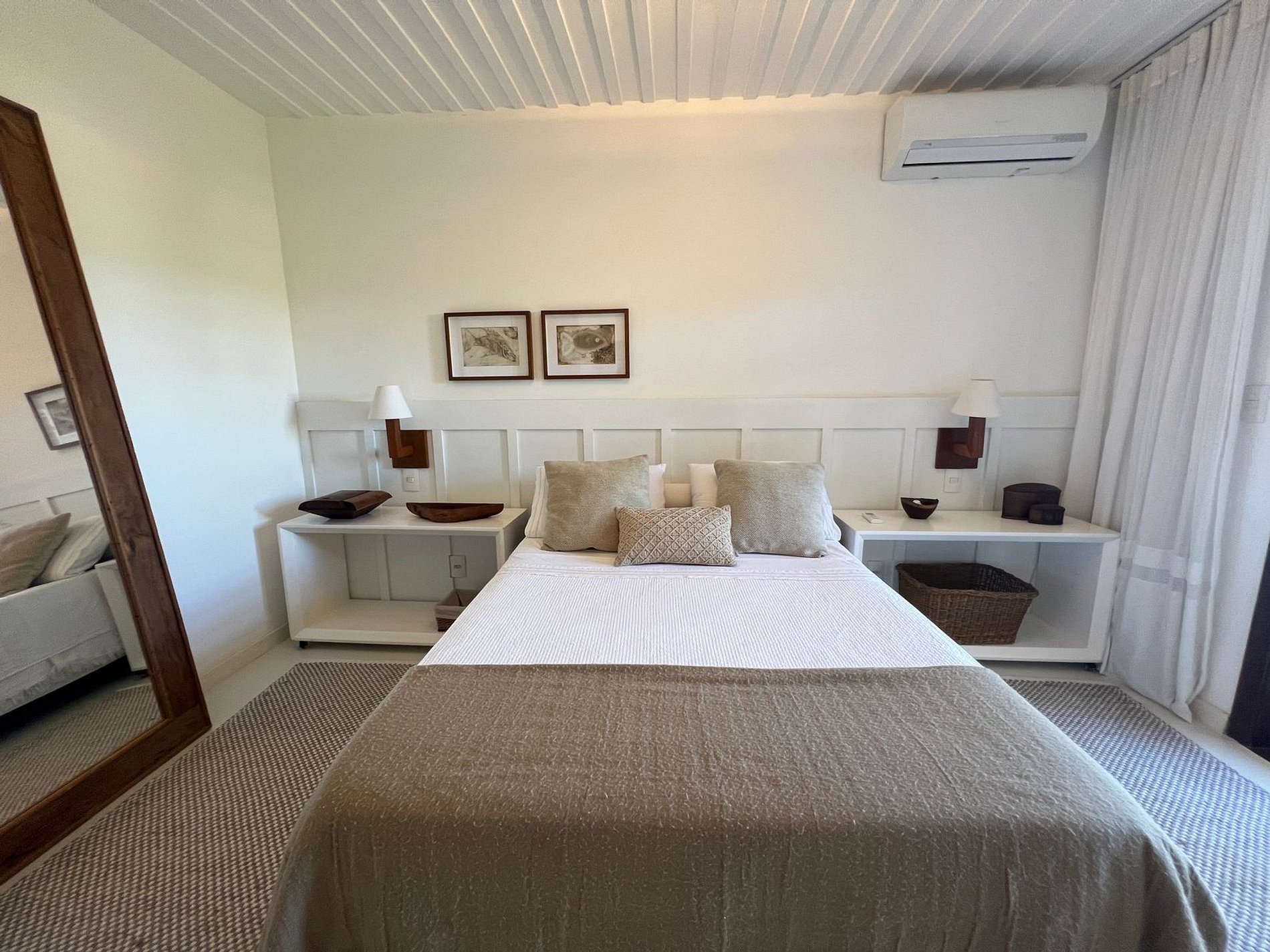 A casa está localizada no Condomínio Amarras, próximo ao canto esquerdo de Geribá. O Condomínio Amarras está situado à beira-mar, e para acessar a praia, você só precisa caminhar cerca de 100 metros dentro do condomínio.