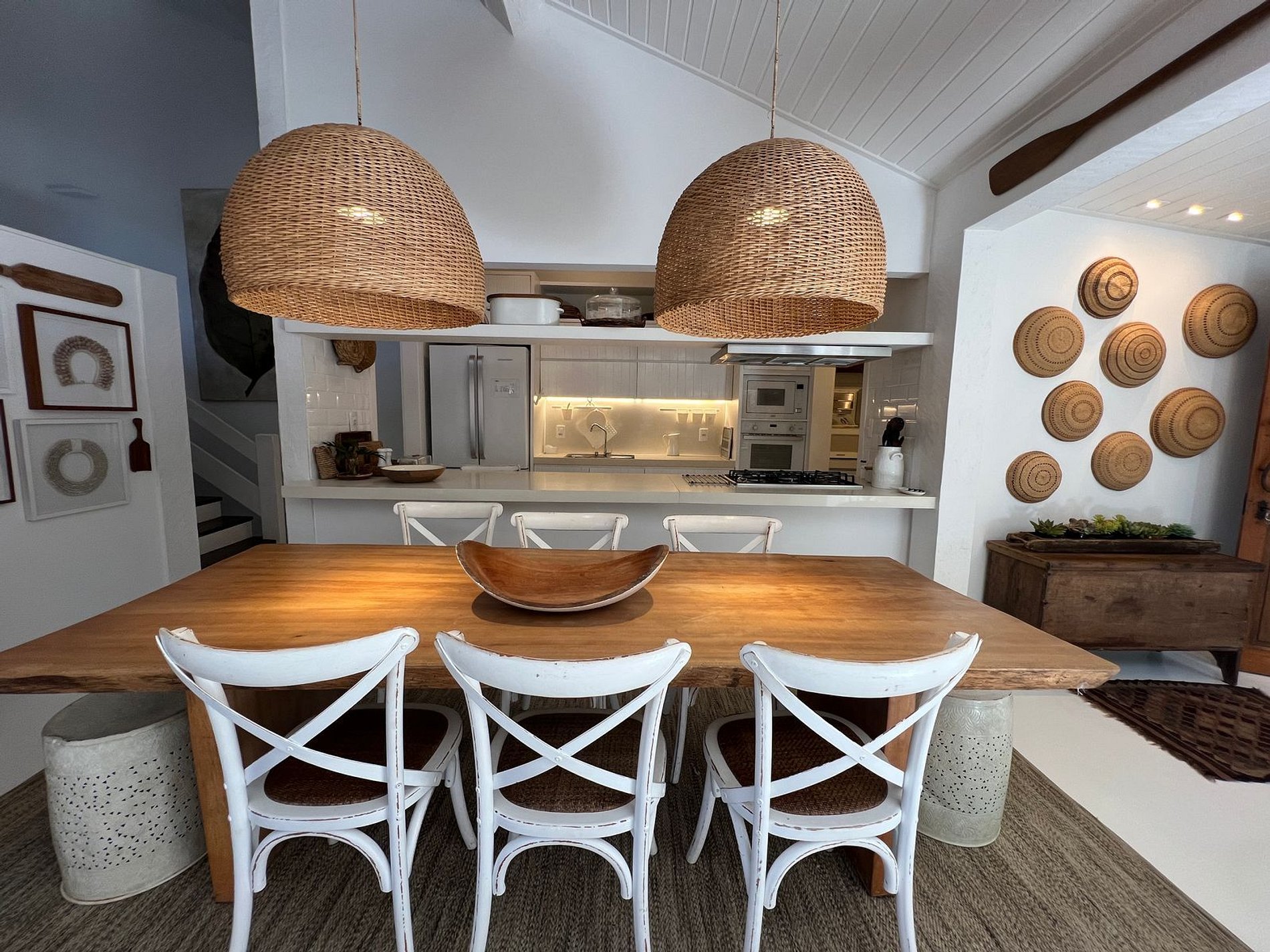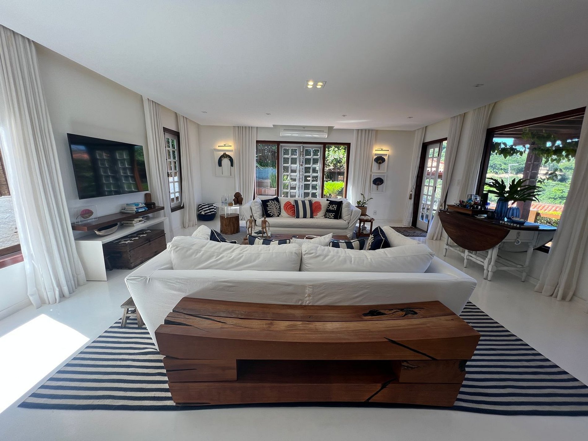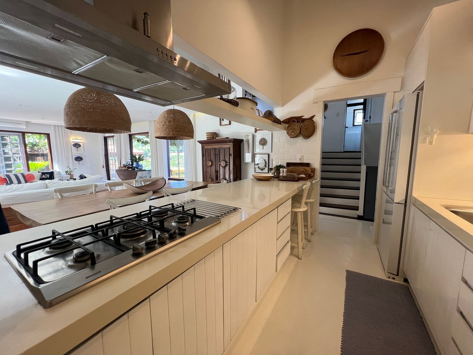 A casa possui 5 quartos, sendo 3 suítes e 2 quartos.