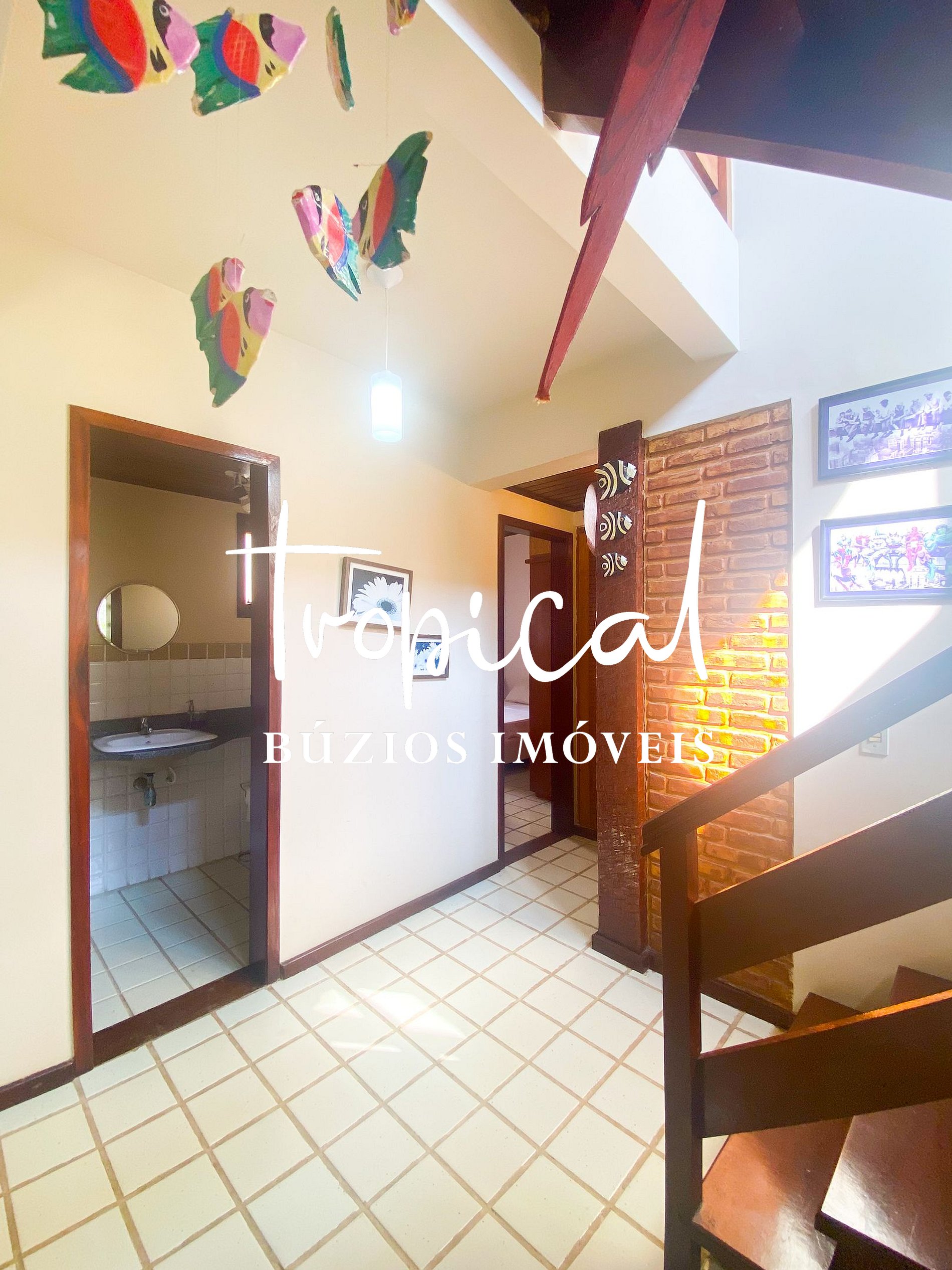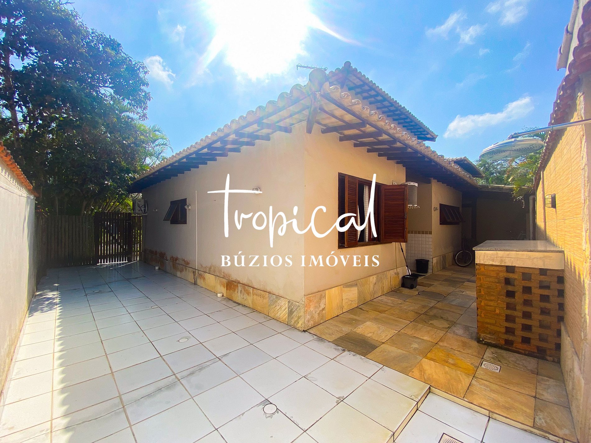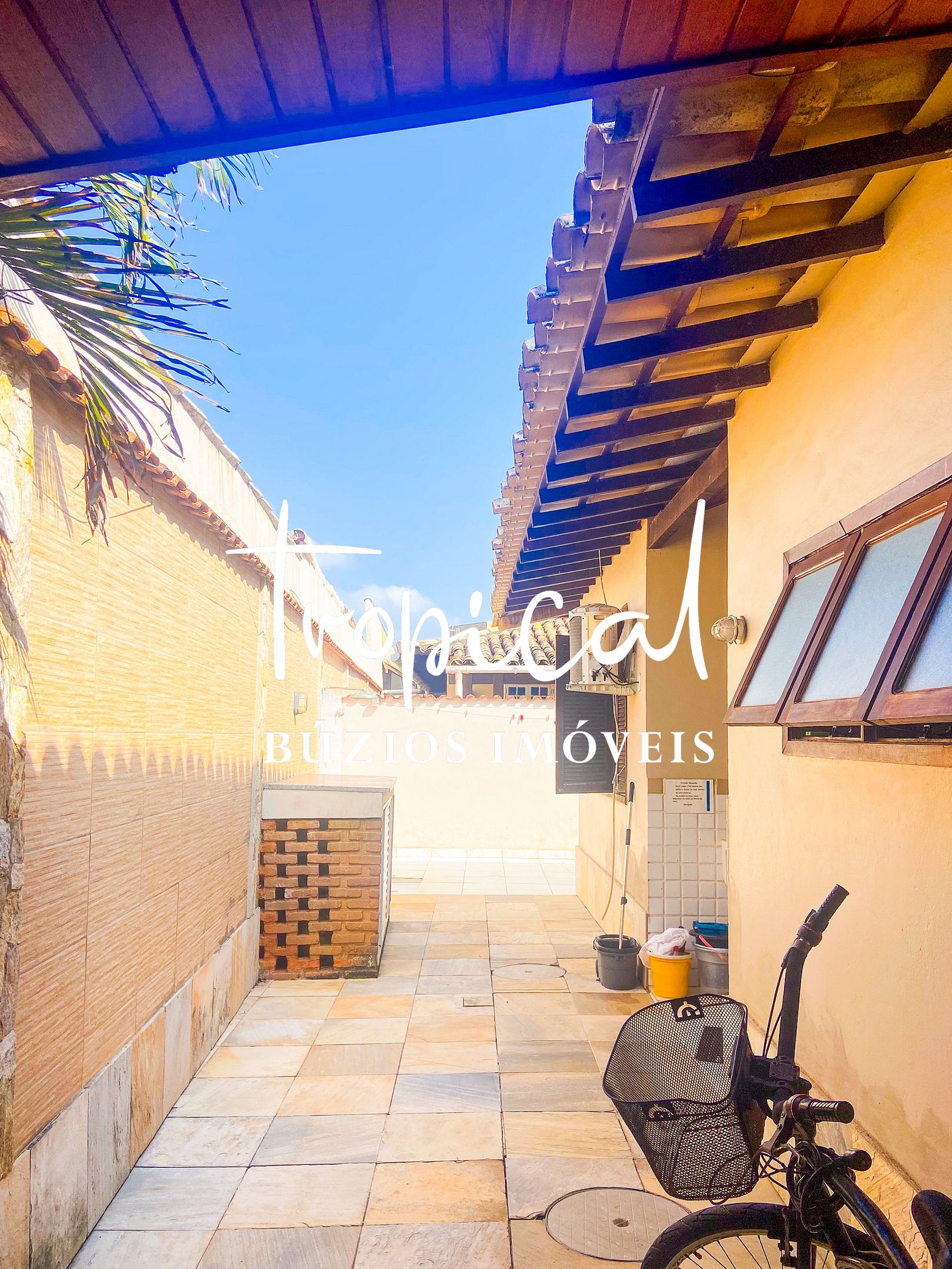 A casa está situada a apenas 200 metros da Praia de Manguinhos, em Búzios — cerca de 1 quadra de distância, com acesso fácil e seguro, sem necessidade de atravessar ruas.