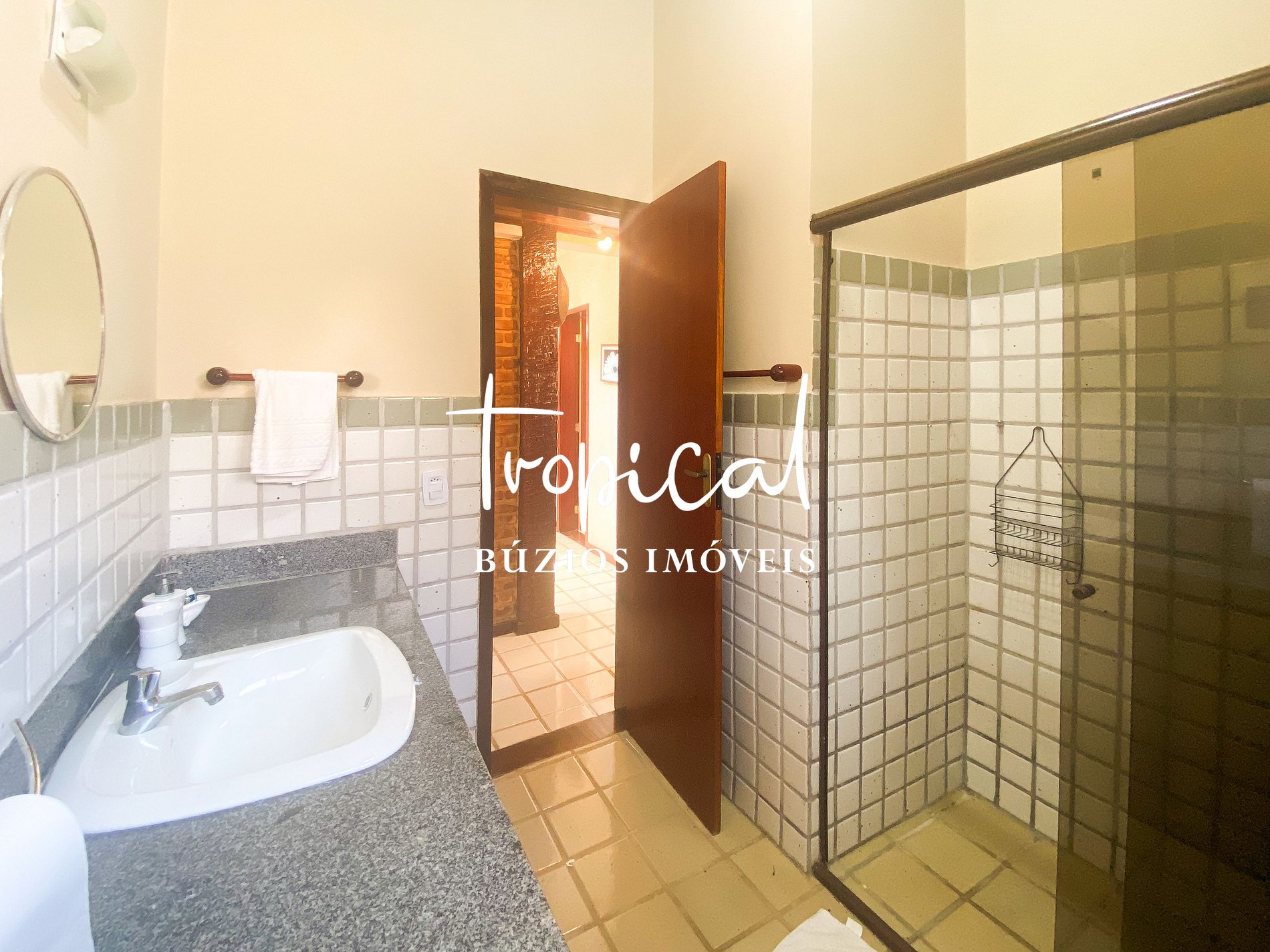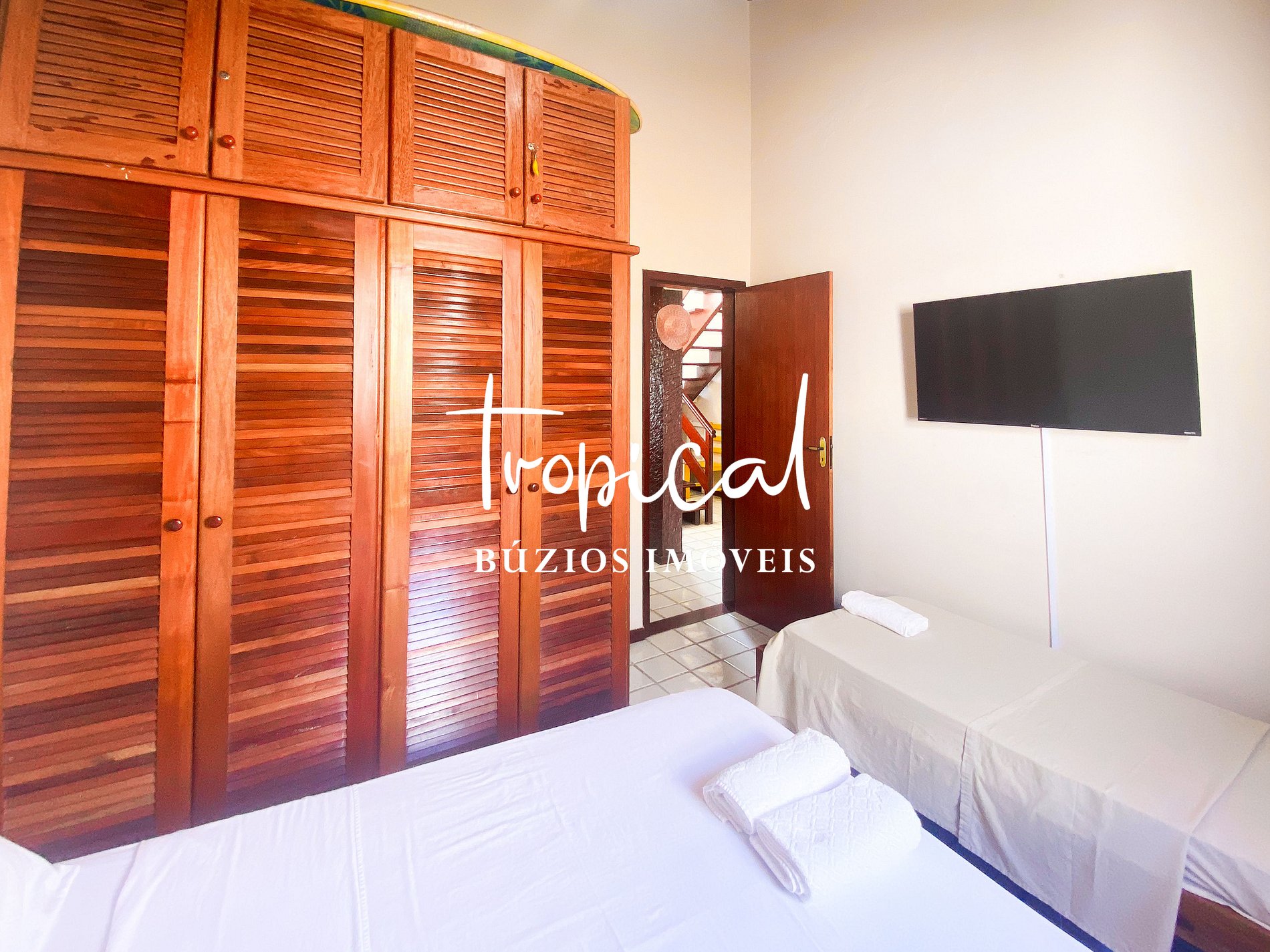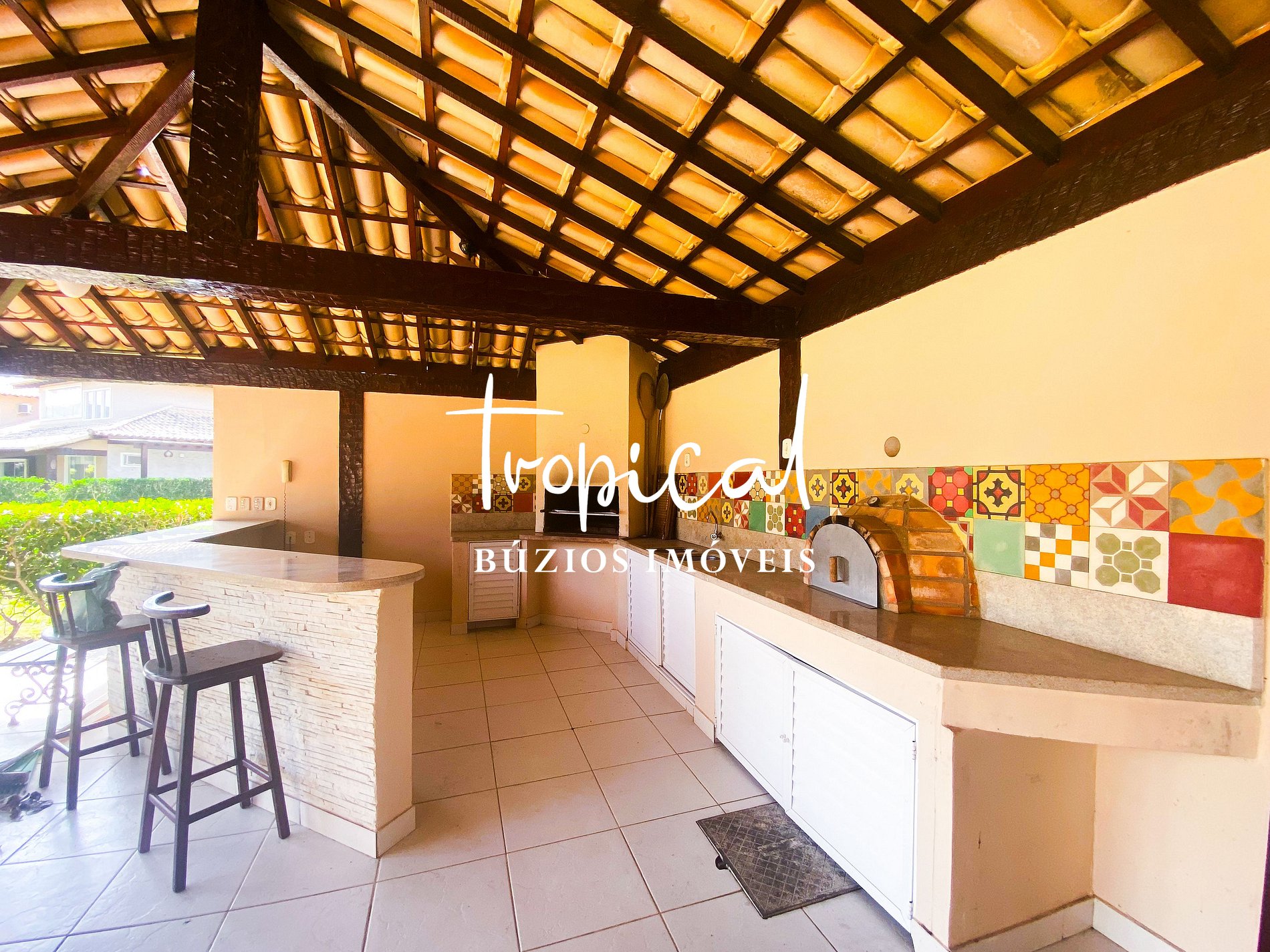 A casa está situada a apenas 200 metros da Praia de Manguinhos, em Búzios — cerca de 1 quadra de distância, com acesso fácil e seguro, sem necessidade de atravessar ruas.