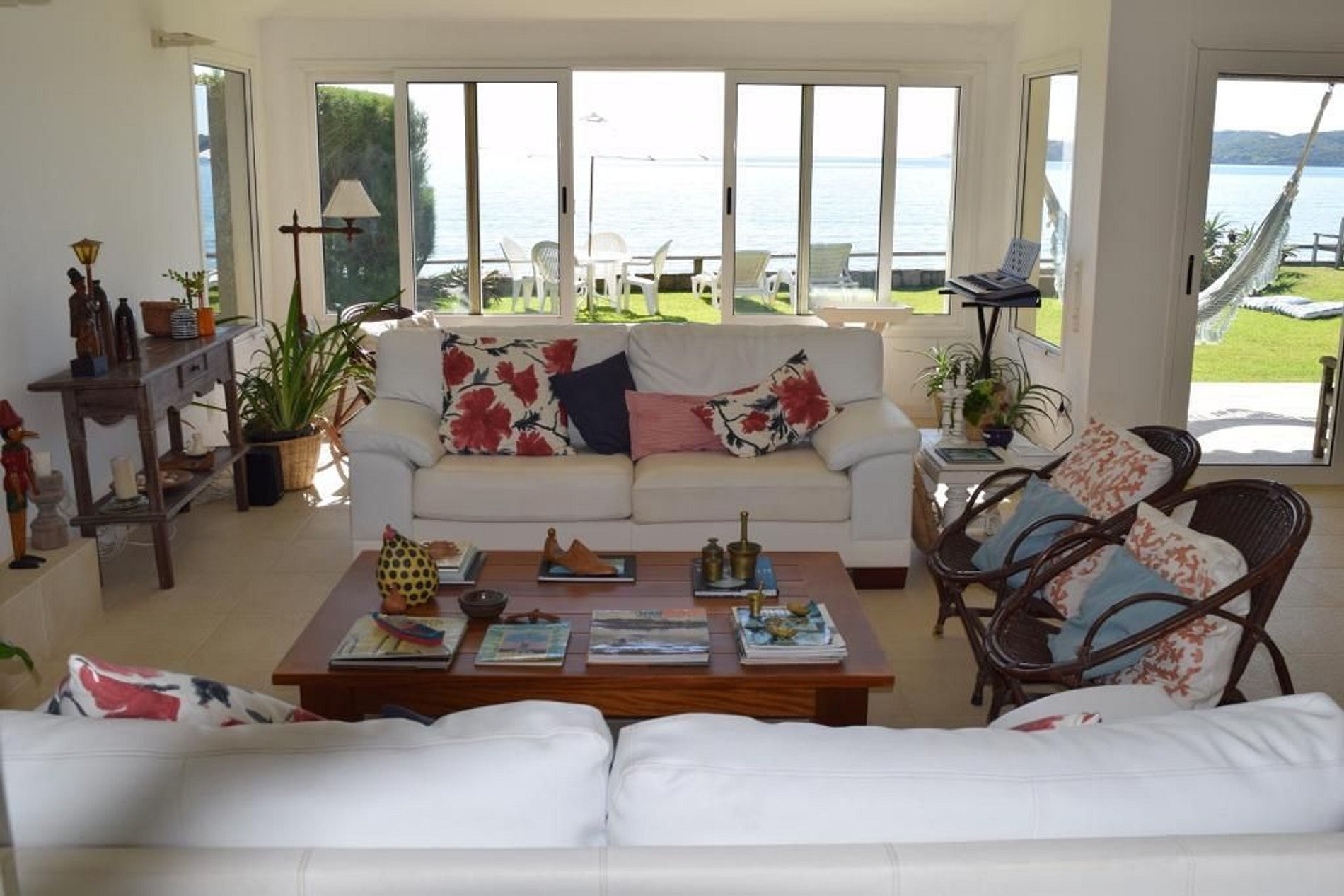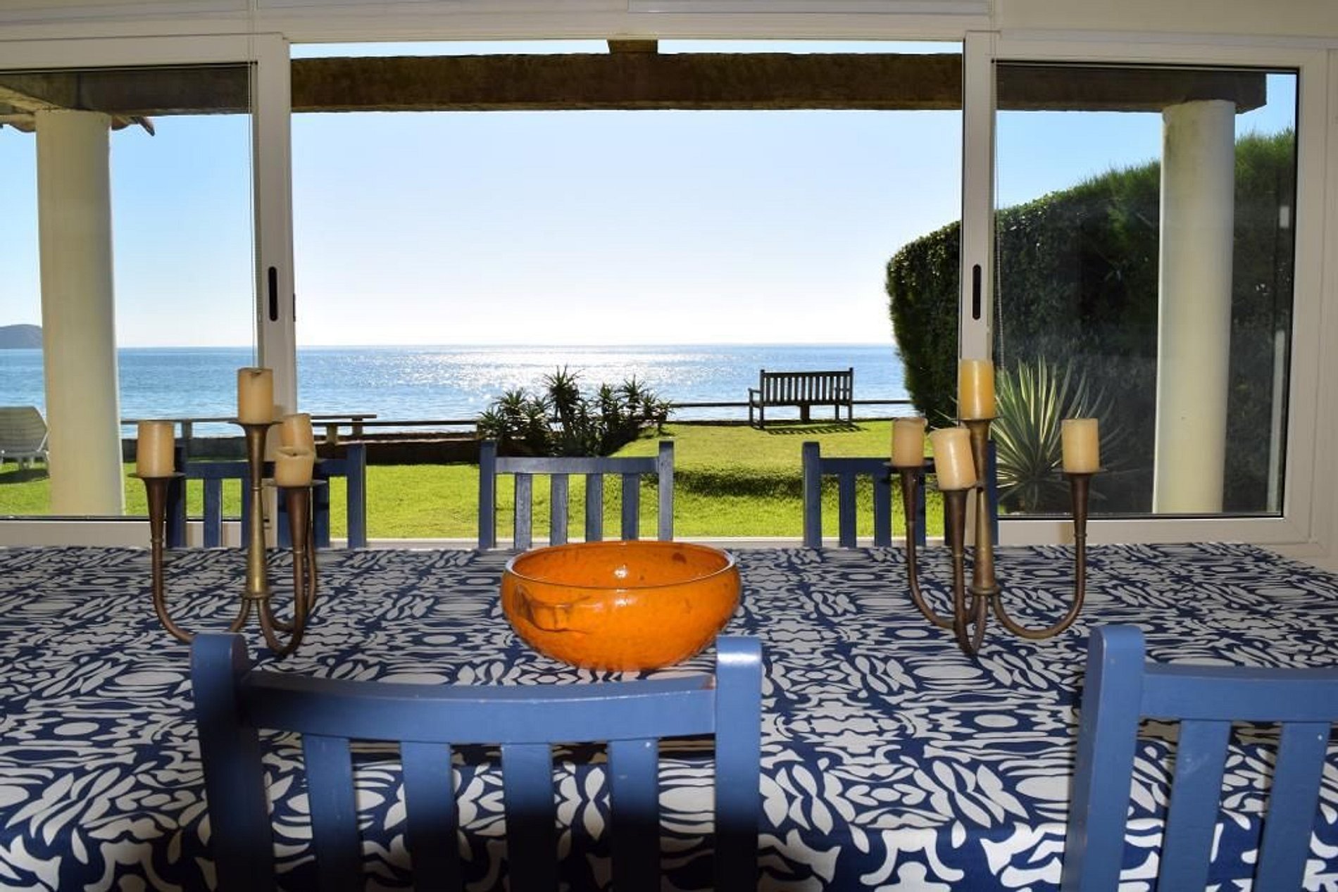 Sala de jantar forma e sala de estar com vista linda do mar. Cozinha completa e bem equipada.