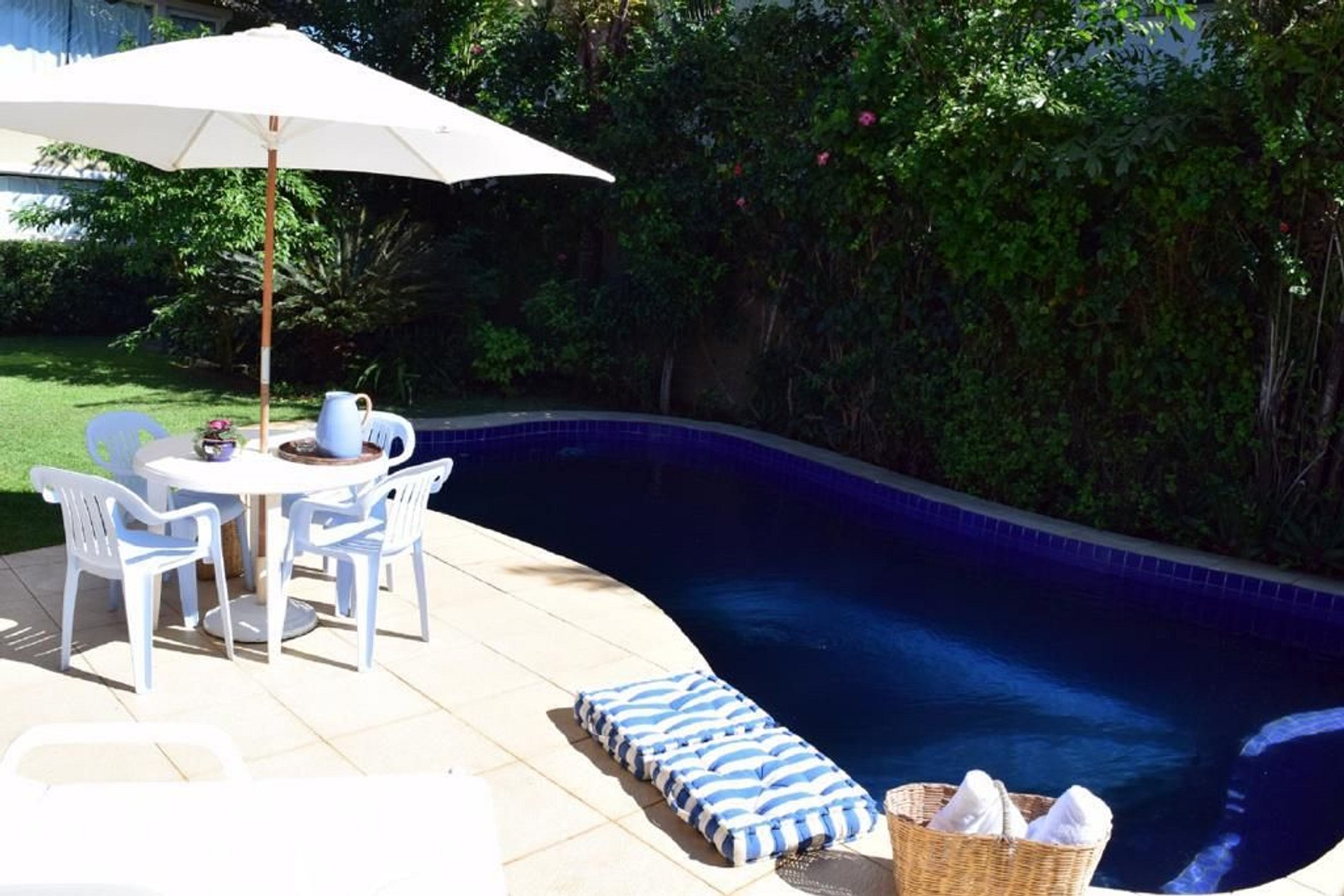 A luz e água consumidas durante a estadia serão cobradas ao final da locação. O valor é calculado mediante a leitura dos relógios na entrada e na saída dos hóspedes.