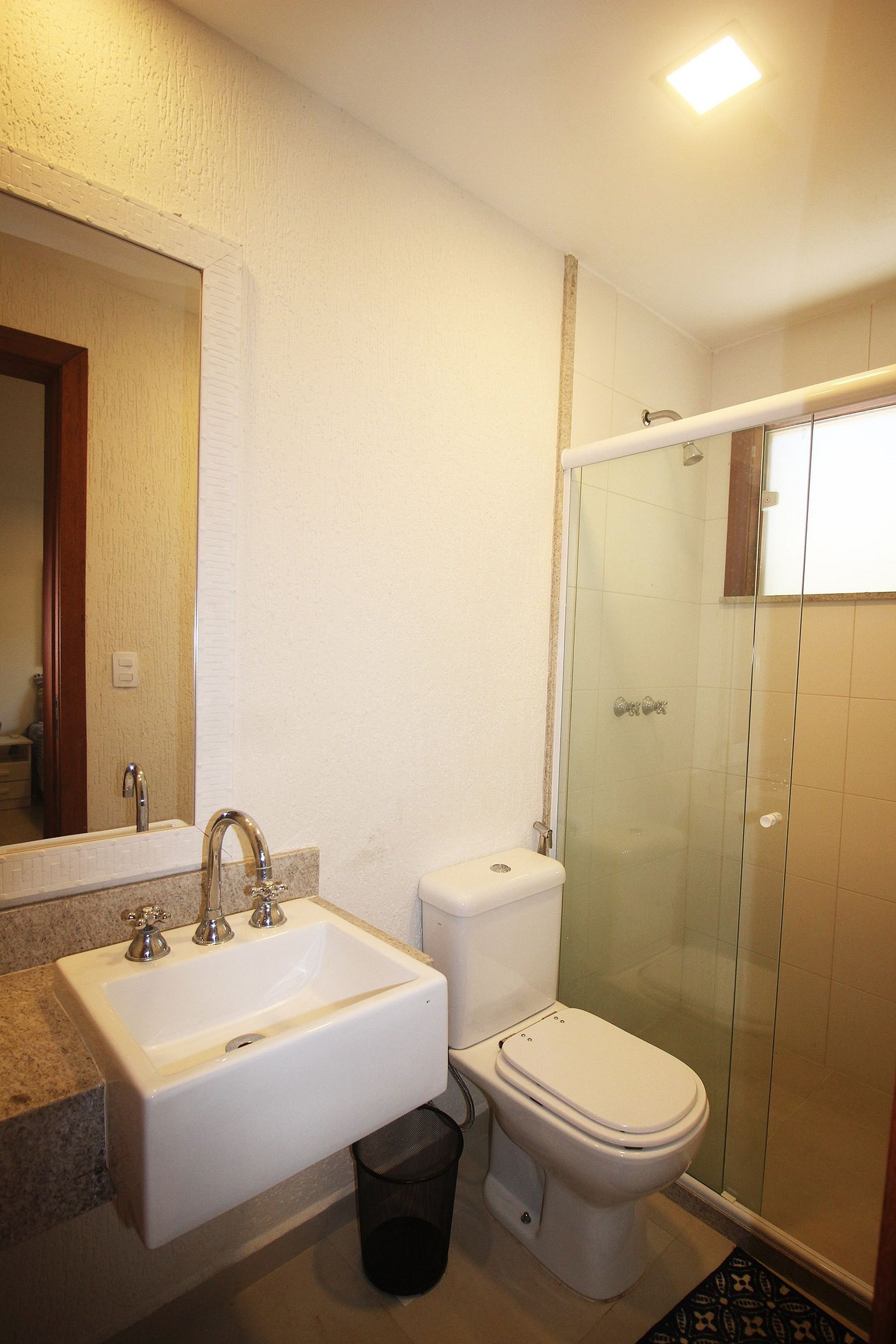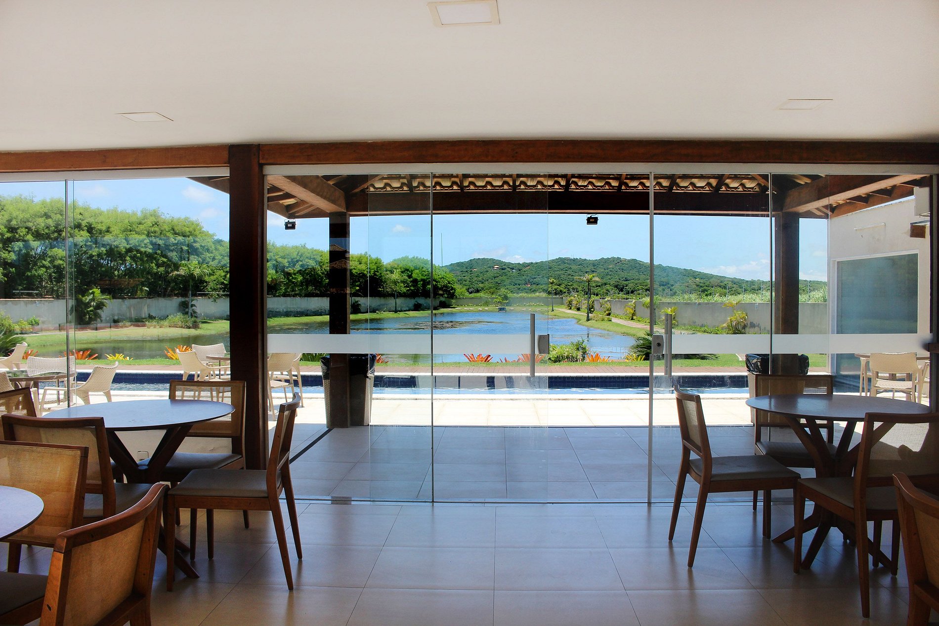 A área comum é uma sala agradável, cozinha totalmente equipada com geladeira, fogão, microondas e utensilios. e é aberta para sala de jantar e estar. Área de lazer do condomínio: - piscina com raia de 25m - sauna - quadra de futebol de salão - parquinho infantil - pista de cooper em volta do lago
