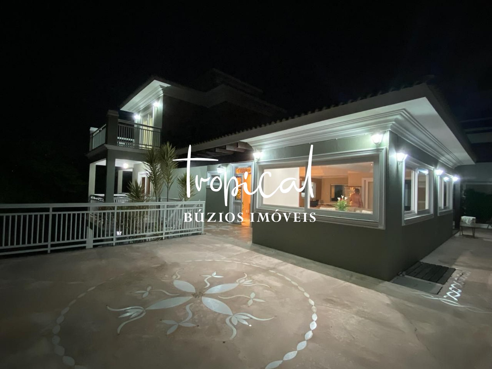 A casa está situada em uma área elevada do condomínio, o que garante vista panorâmica para o mar, Ilha Feia e parte da península, com direito a um pôr do sol de cinema todos os dias, visto da varanda com piso de mosaico assinado pelo arquiteto e artista Hélio Pelegrino.